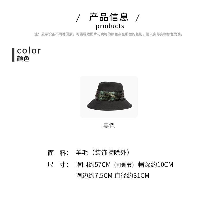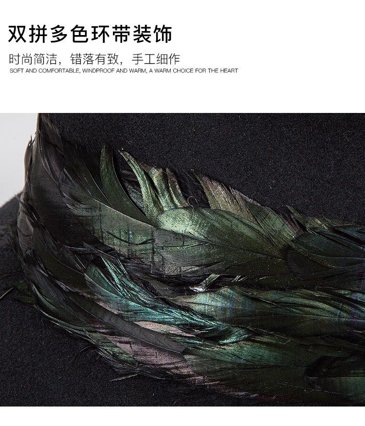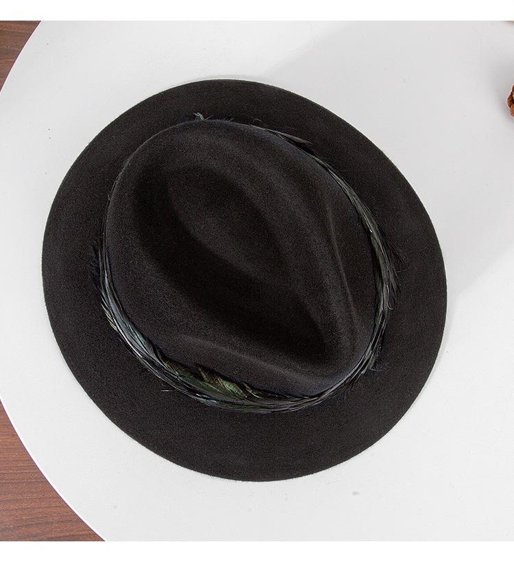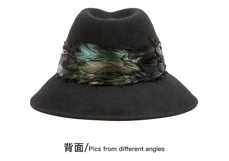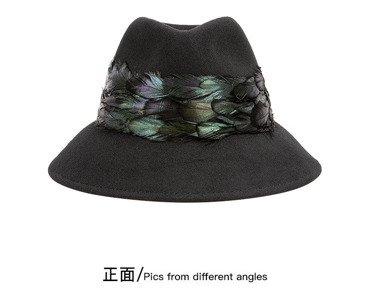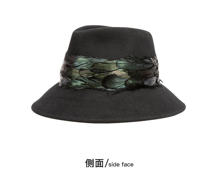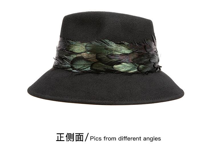 2025 Rongmei Otoño e Invierno Nuevo Sombrero de Pescador Decorado con Plumas Sombrero Elegante Retro de Fieltro de Lana Sombrero Elegante para Mujer