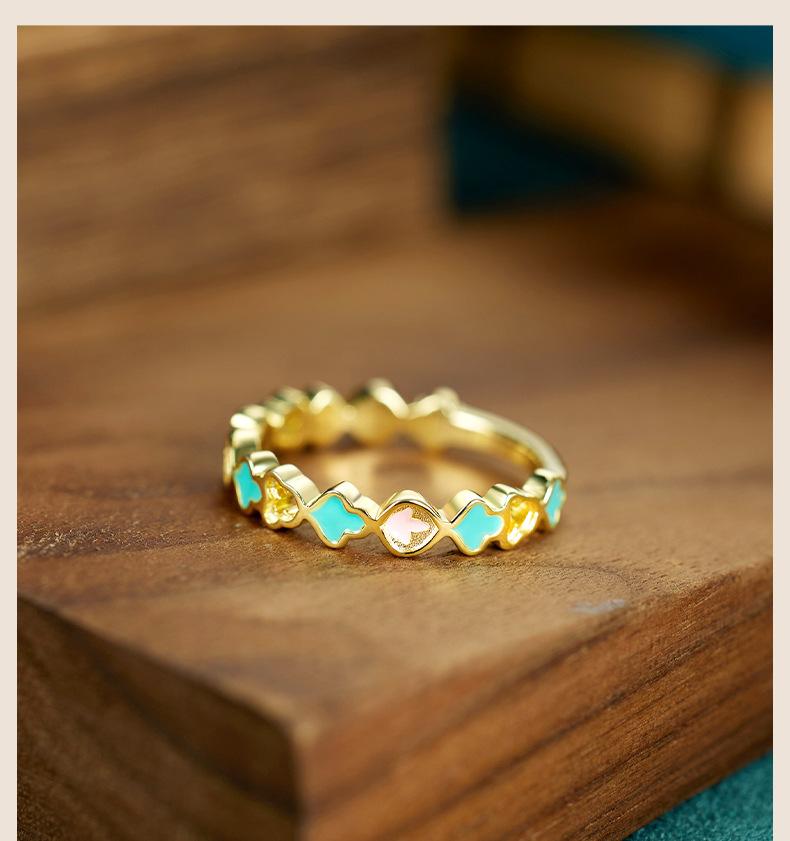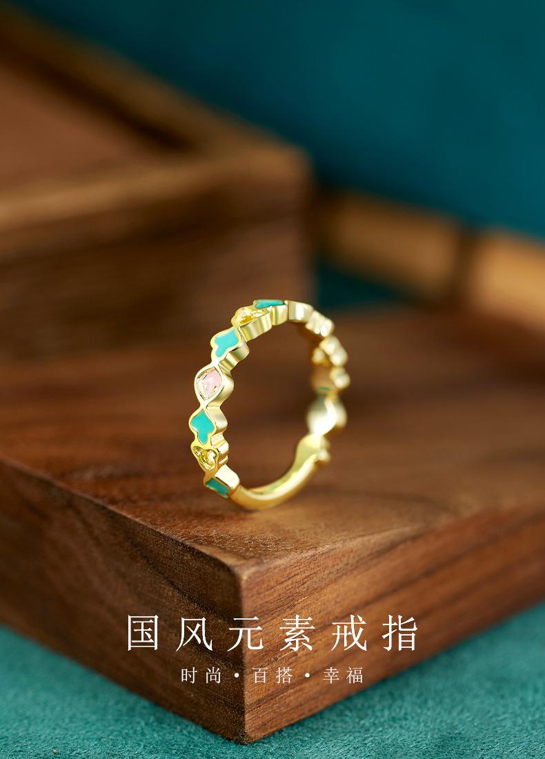Nuevo anillo de plata 925 estilo Dunhuang, nicho femenino de alta moda, temperamento antiguo, esmalte frío, anillo chino al por mayor