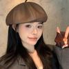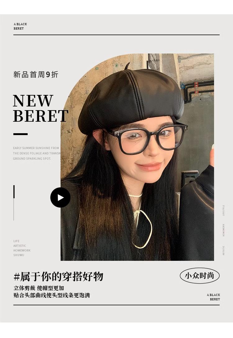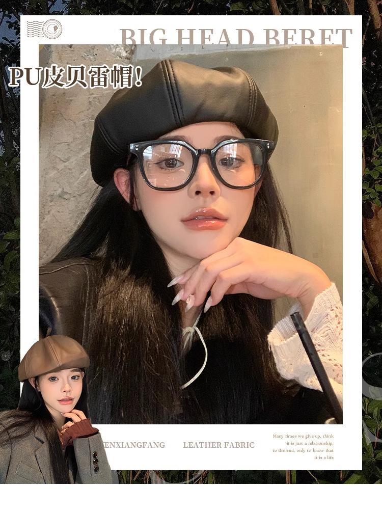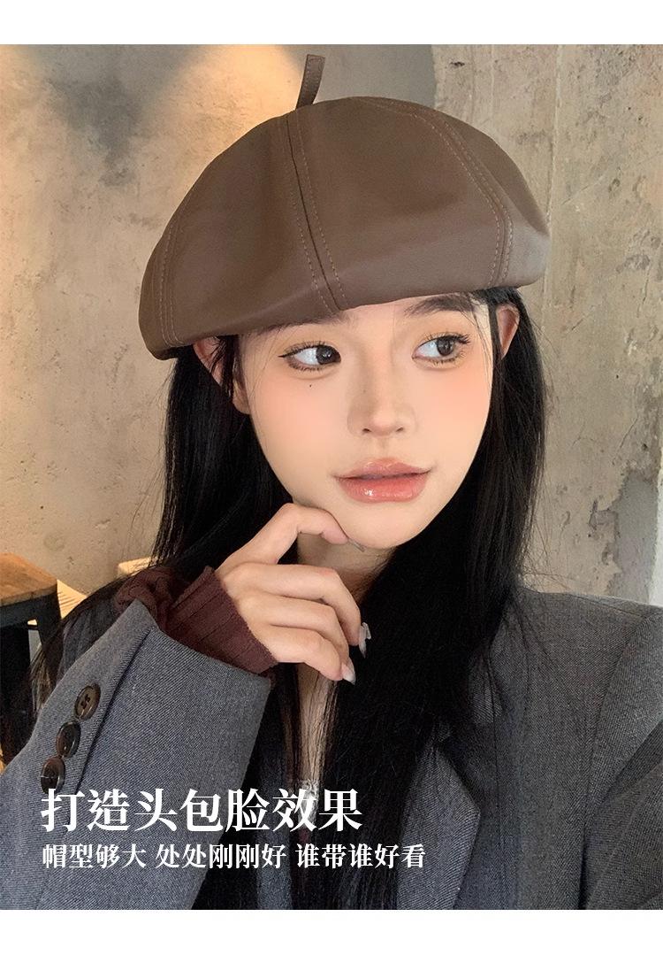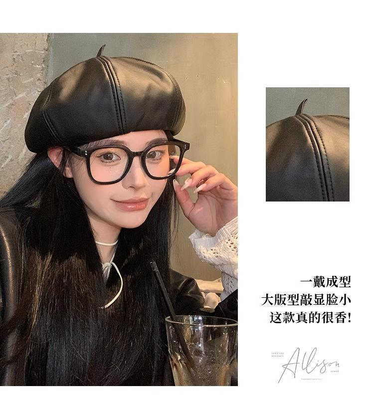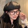 Boina negra de cuero sintético estilo coreano para mujer, gorro octogonal retro para primavera y otoño, con cabeza grande y cara visible, pequeño y moderno.