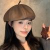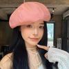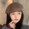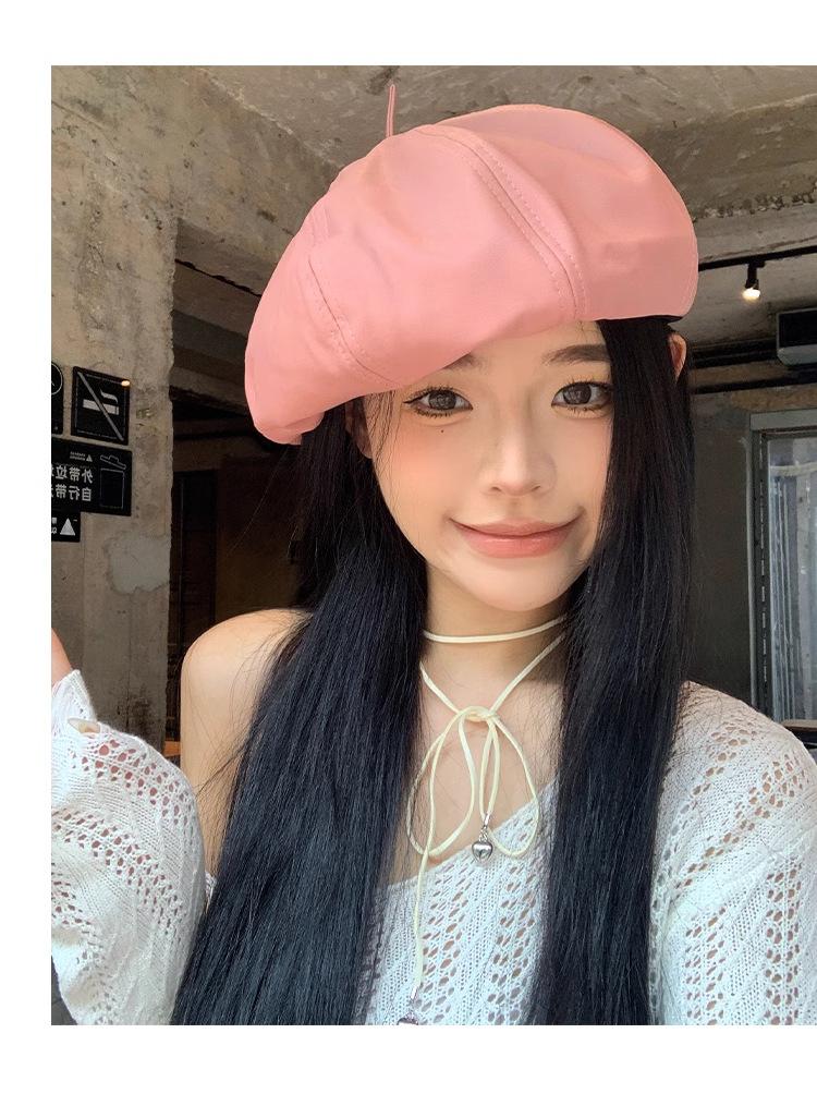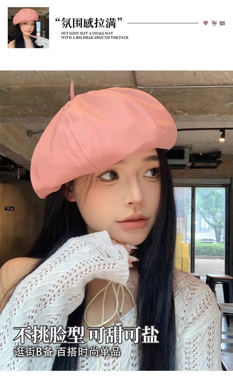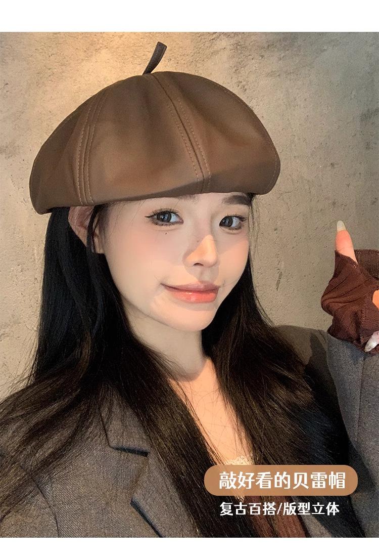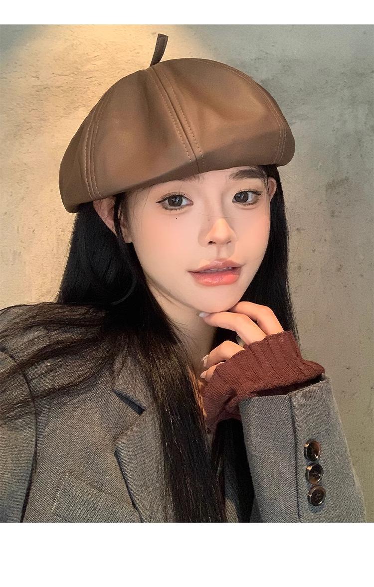 Boina negra de cuero sintético estilo coreano para mujer, gorro octogonal retro para primavera y otoño, con cabeza grande y cara visible, pequeño y moderno.