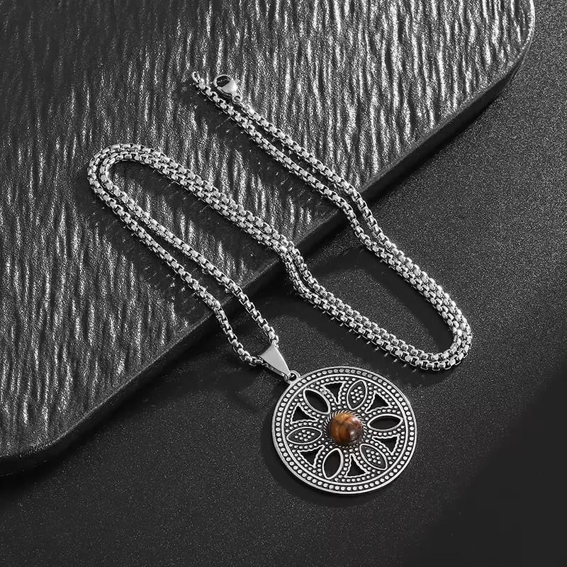 Venta caliente transfronteriza, colgante de anillo redondo hueco simple, flor de la vida, collar de cadena de clavícula geométrica sagrada, joyería