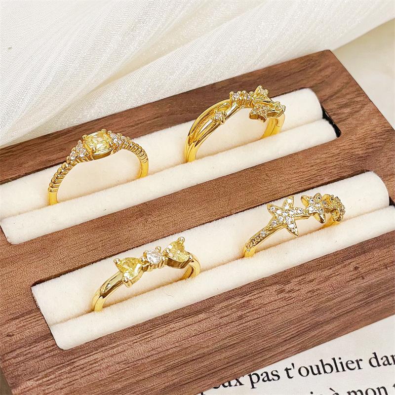 Nuevo Anillo Abierto Retro Oro Antiguo Medio Chino Diamante Amarillo Pequeño Zircón Moda Combinable Simple Distintivo Anillo de Dedo