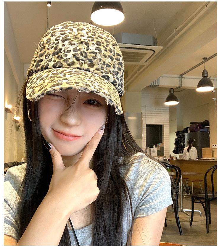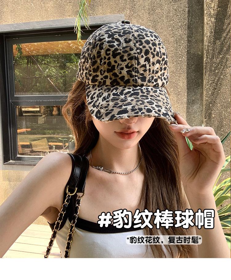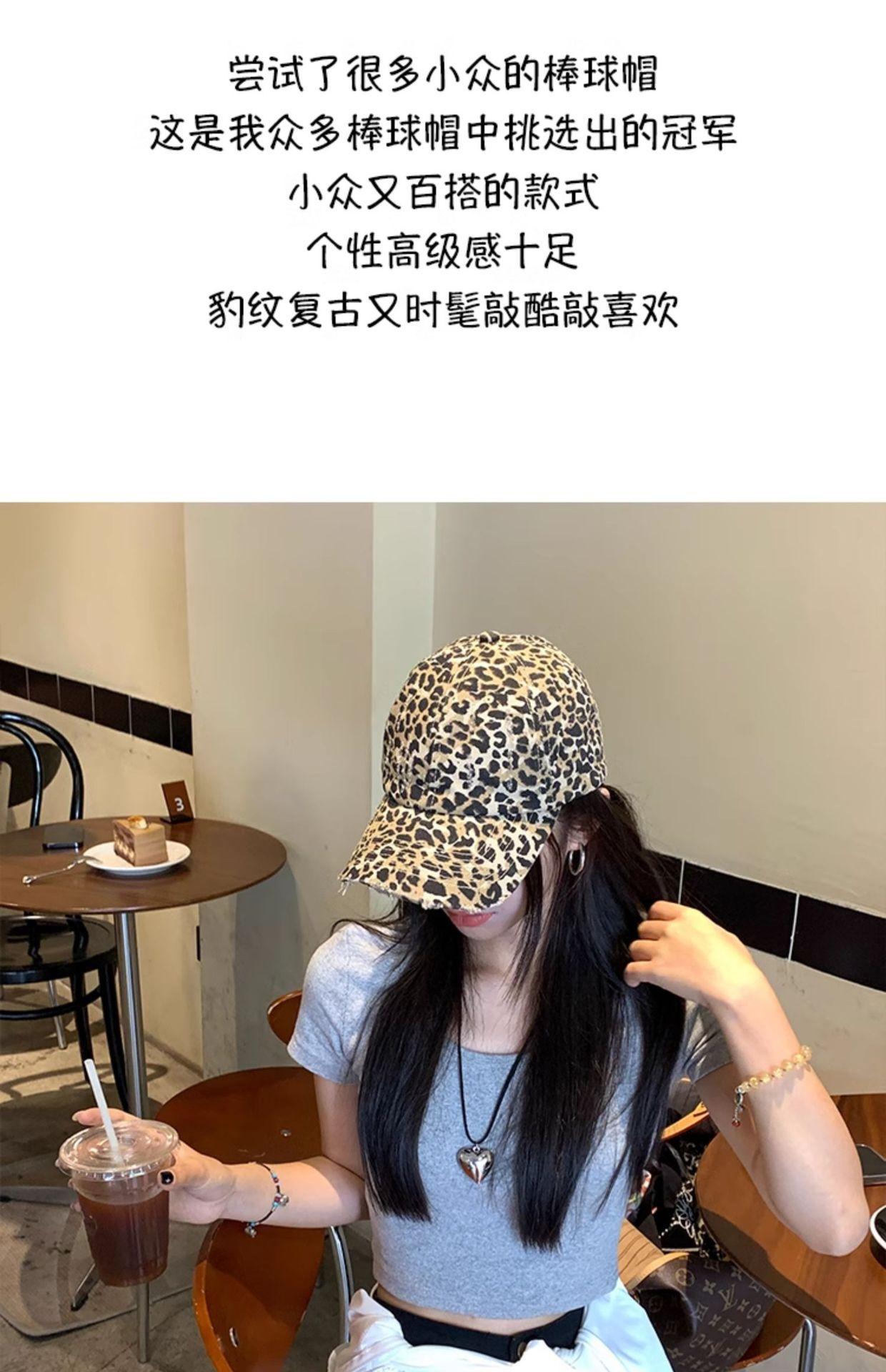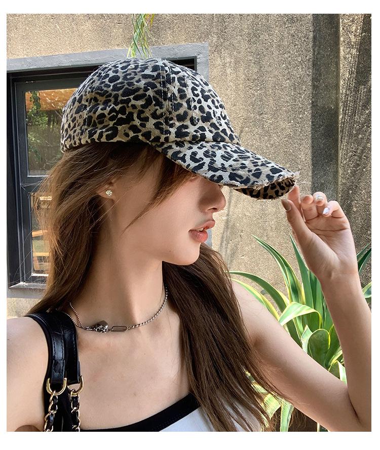 Gorra de Béisbol Retro Americana con Estampado de Leopardo para Mujer, Gorra Sexy de Visera Envejecida Cepillada que Muestra el Rostro, Ala Ancha Pequeña, Sombrero de Copa Blanda