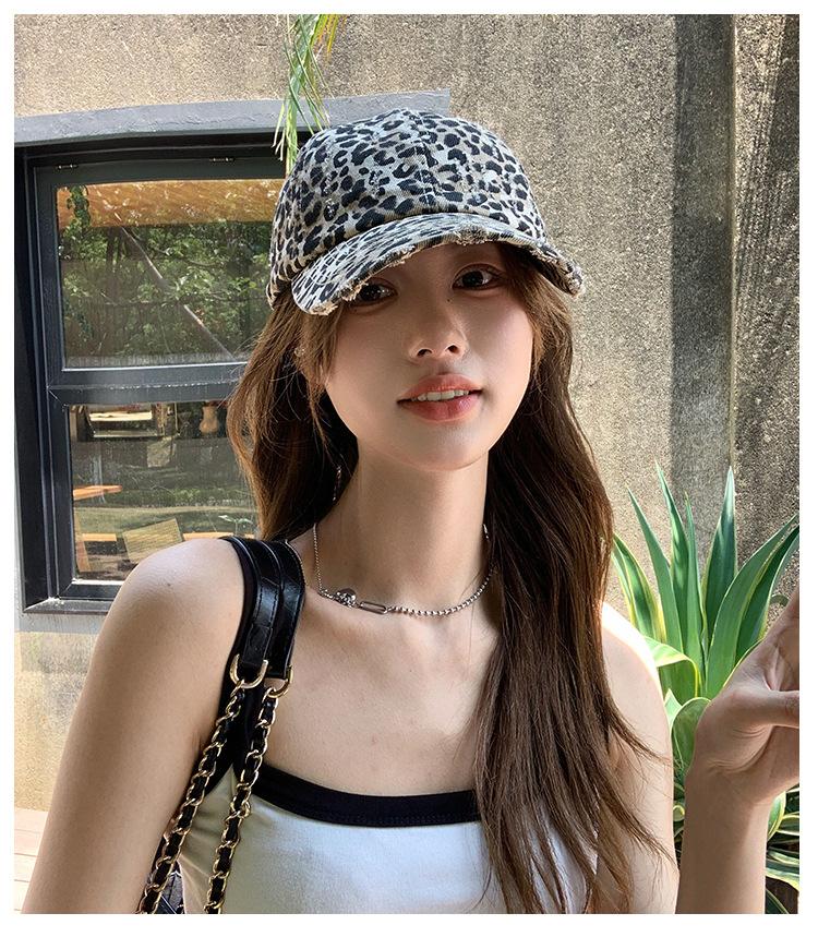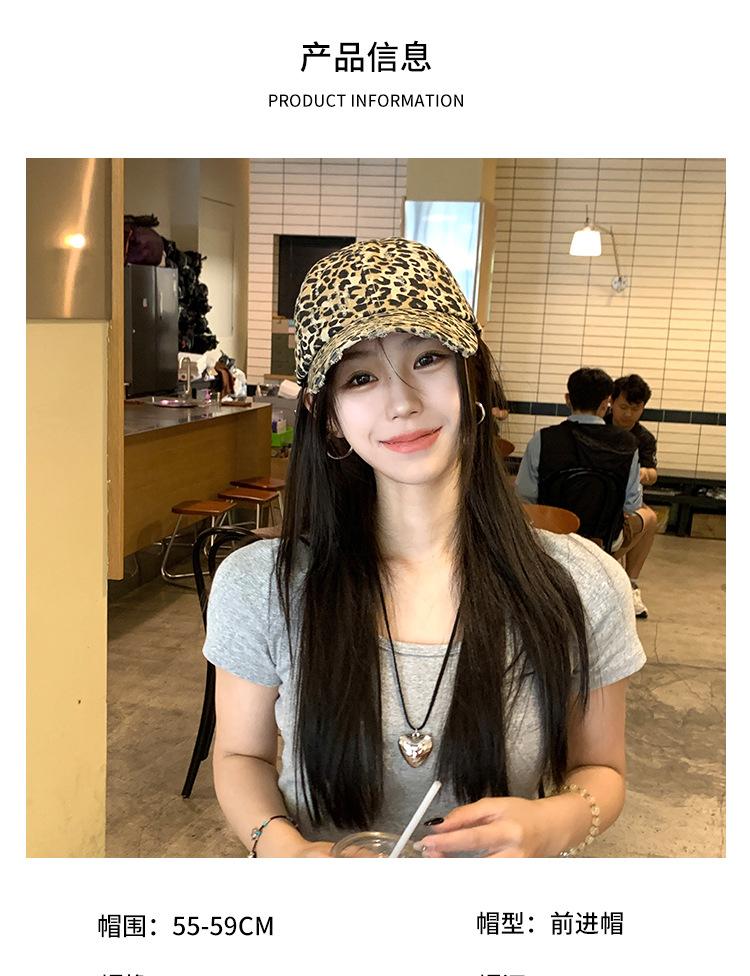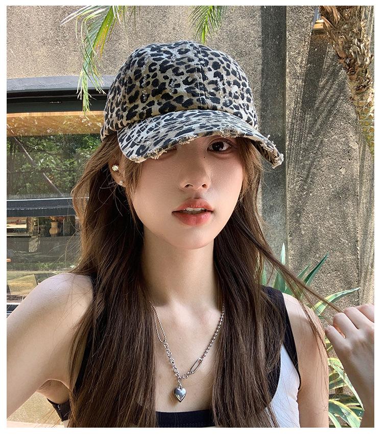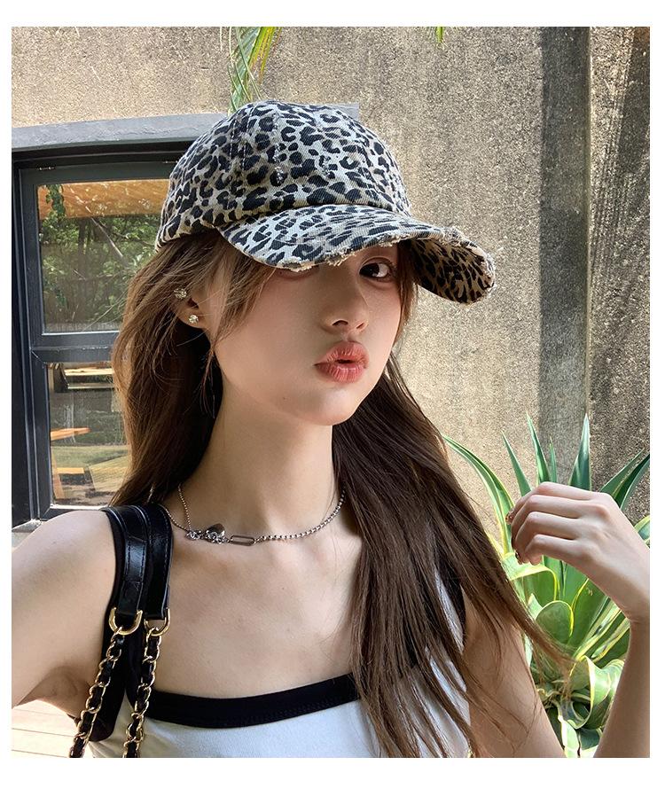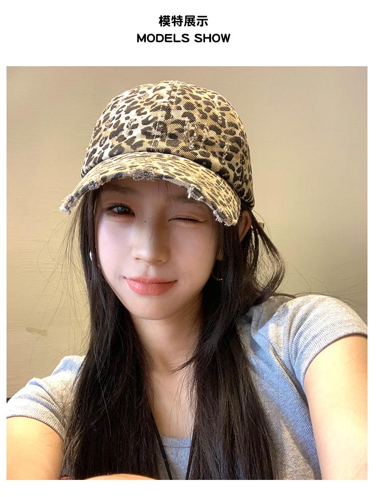 Gorra de Béisbol Retro Americana con Estampado de Leopardo para Mujer, Gorra Sexy de Visera Envejecida Cepillada que Muestra el Rostro, Ala Ancha Pequeña, Sombrero de Copa Blanda
