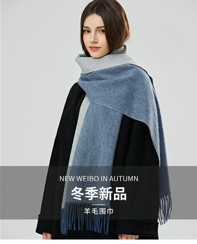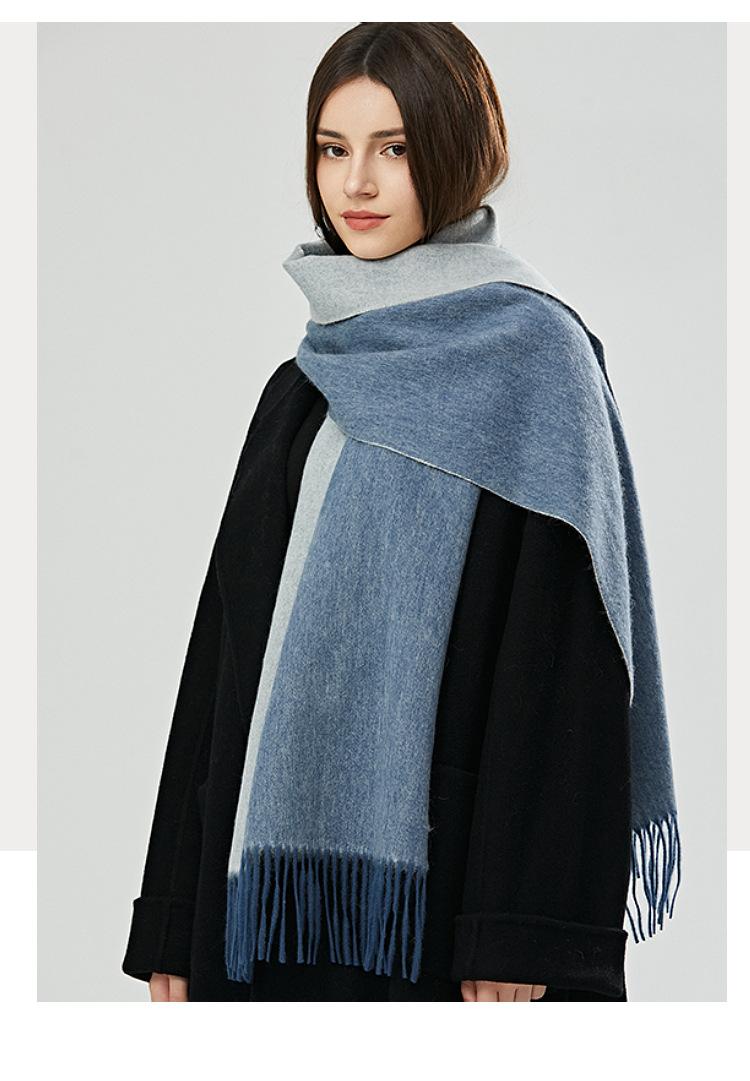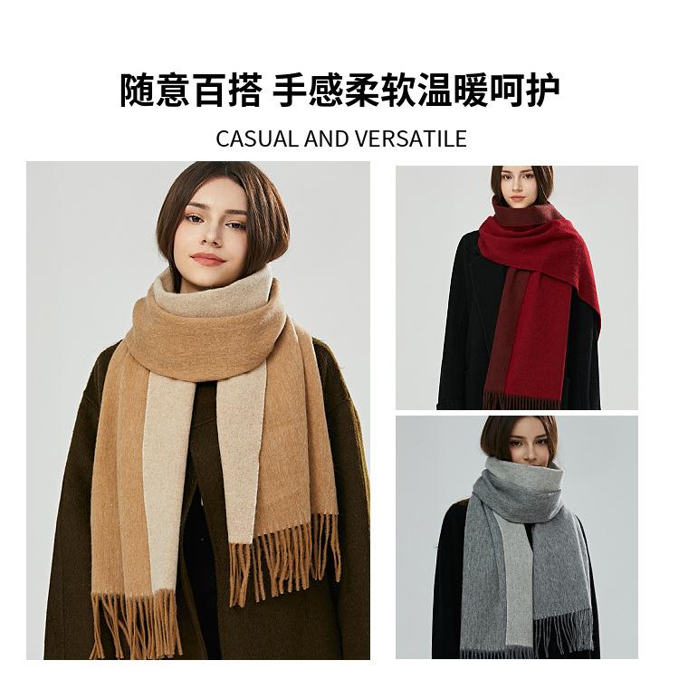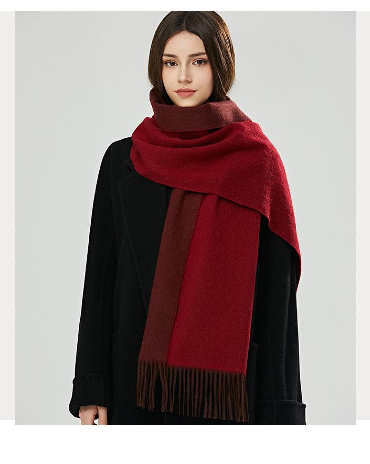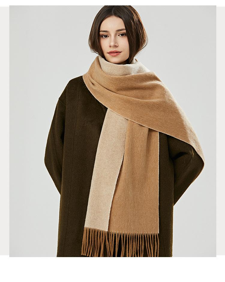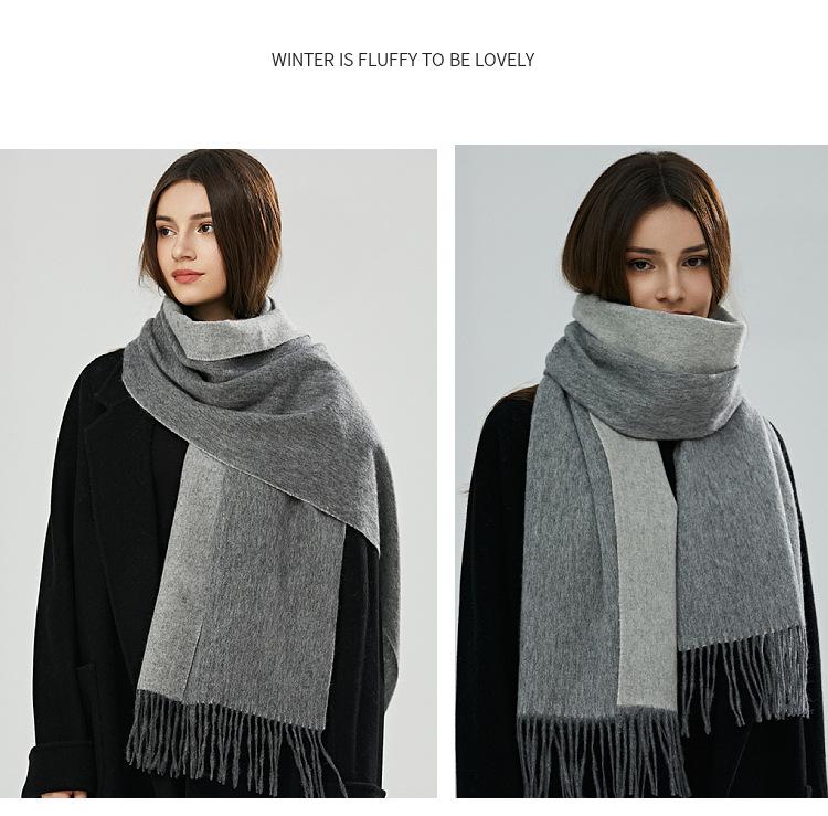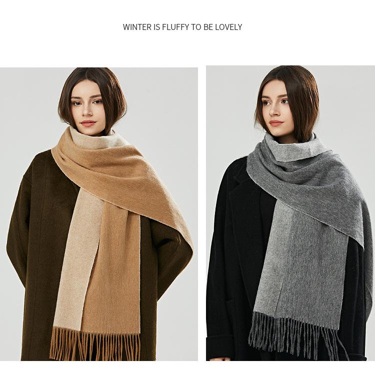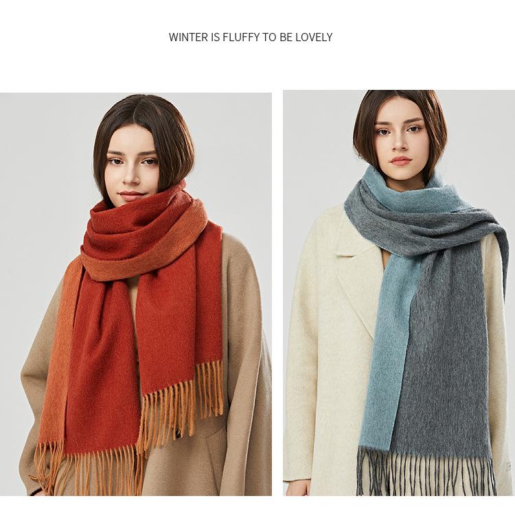 Bufanda de lana 100 % para mujer, nueva, de doble cara, de alta gama, para otoño e invierno, combinable, gruesa, cálida y con borlas.