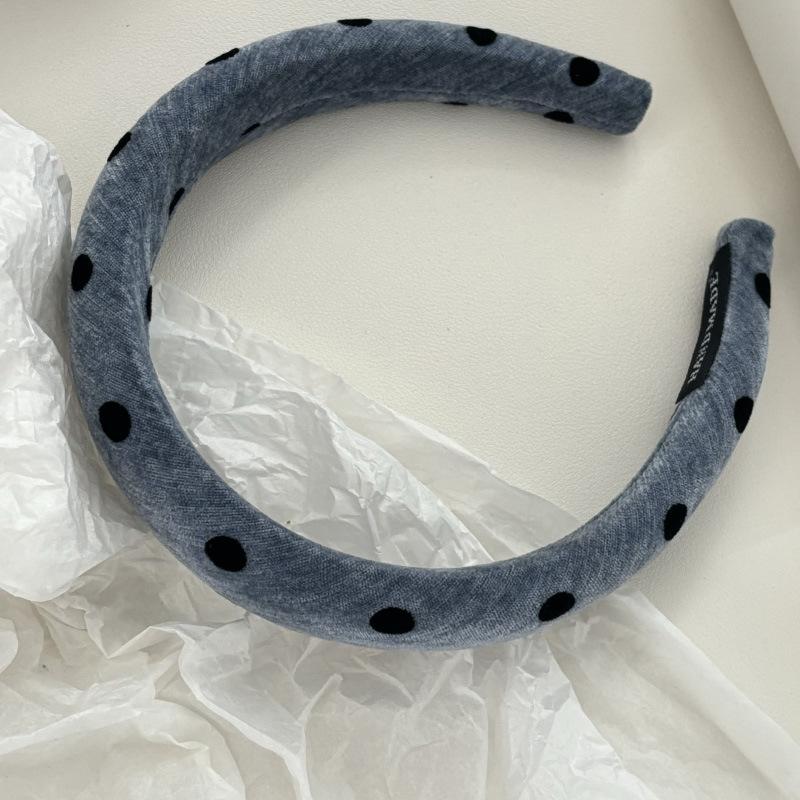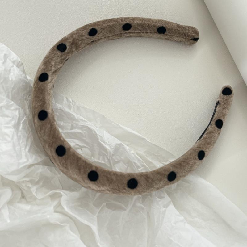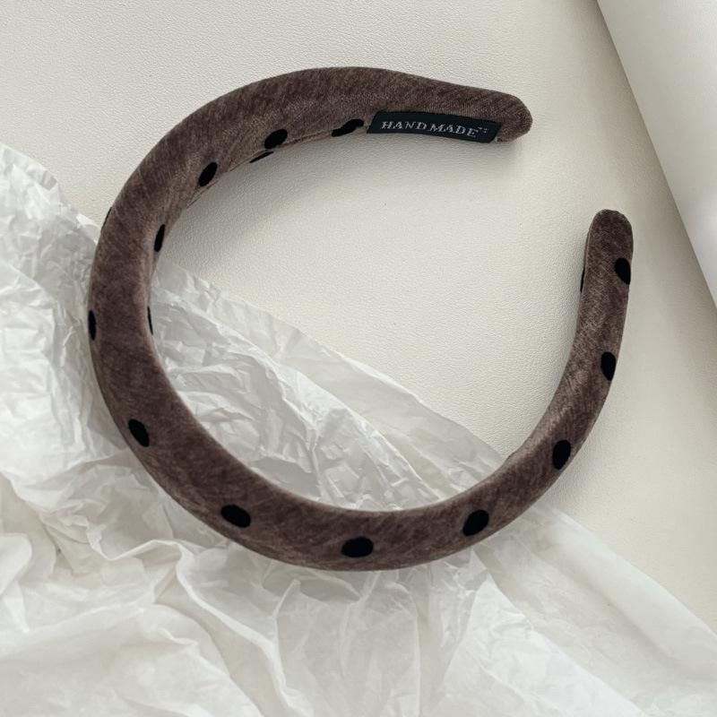 Diadema Retro Francesa de Terciopelo con Lunares de Onda Perezosa Simple Combinable Diadema Superior Craneal Alta Nuevo Elegante Estampado para el Cabello de Otoño e Invierno para Mujer