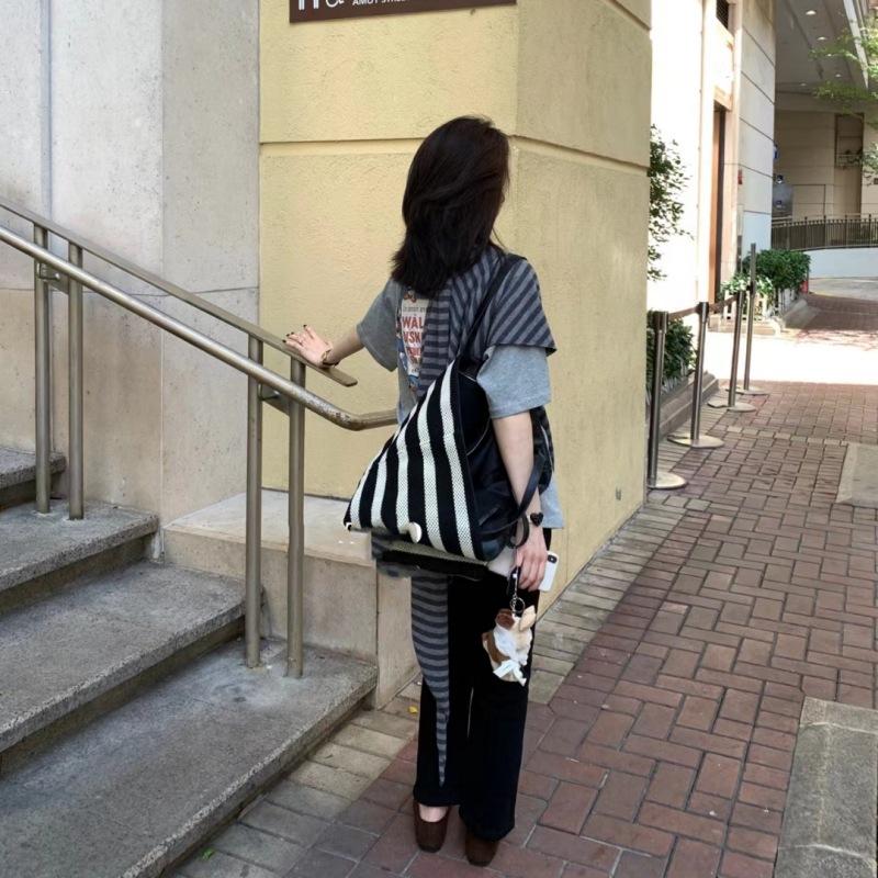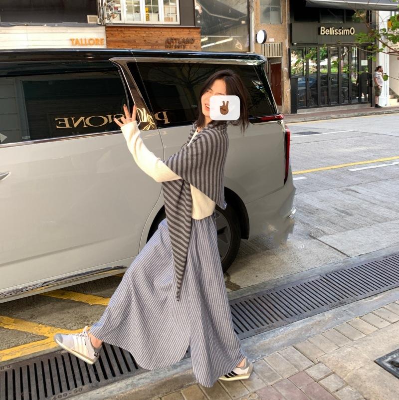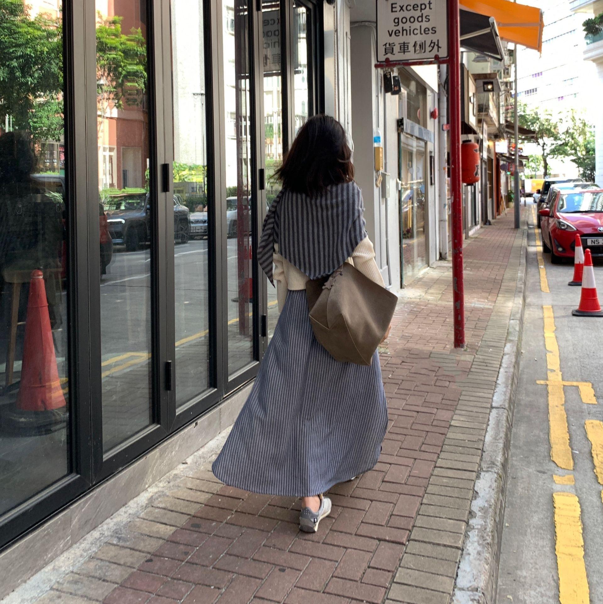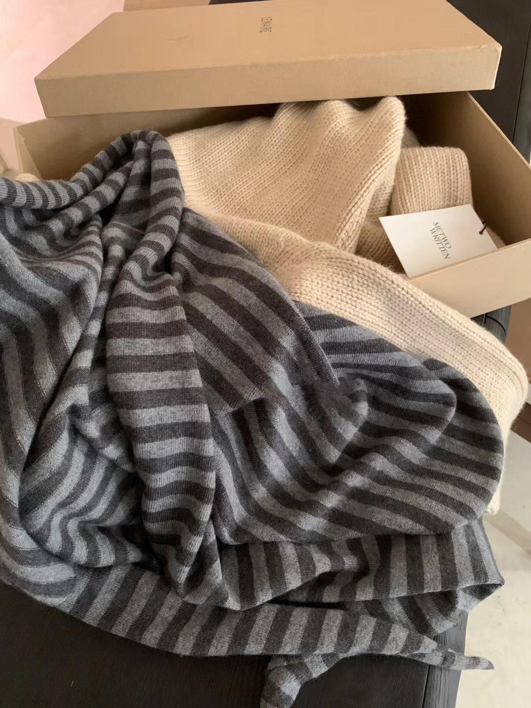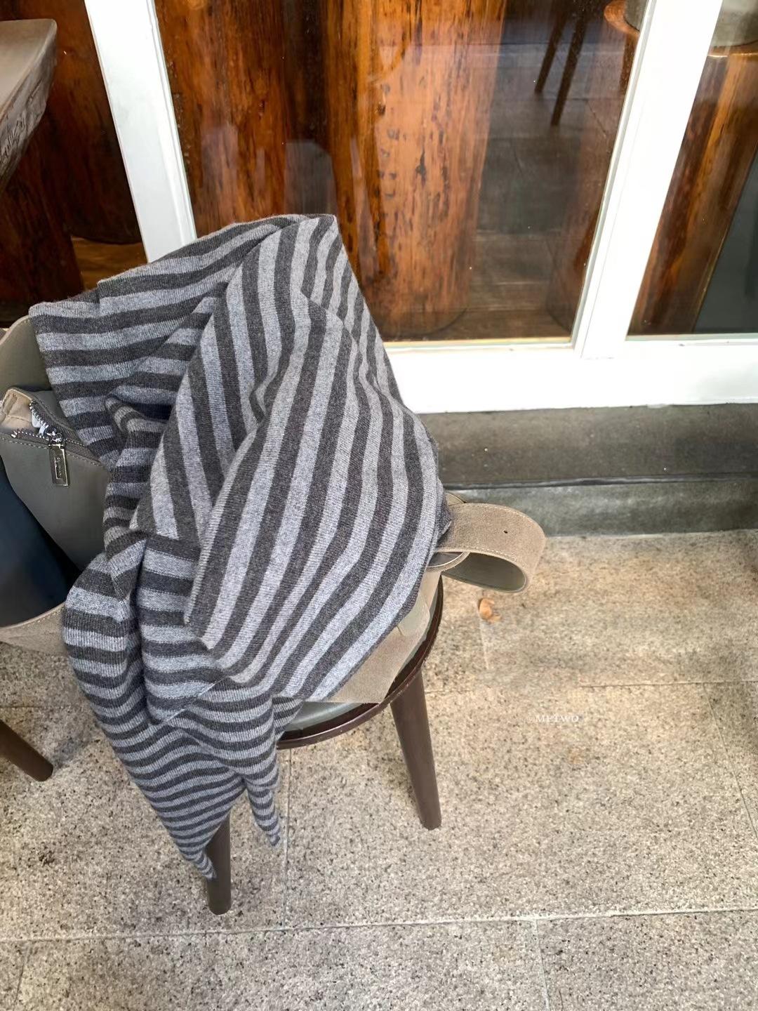 Capa de rayas grises de moda con hombros de lana tejida de lana fina capa triangular otoño e invierno nueva capa exterior fina