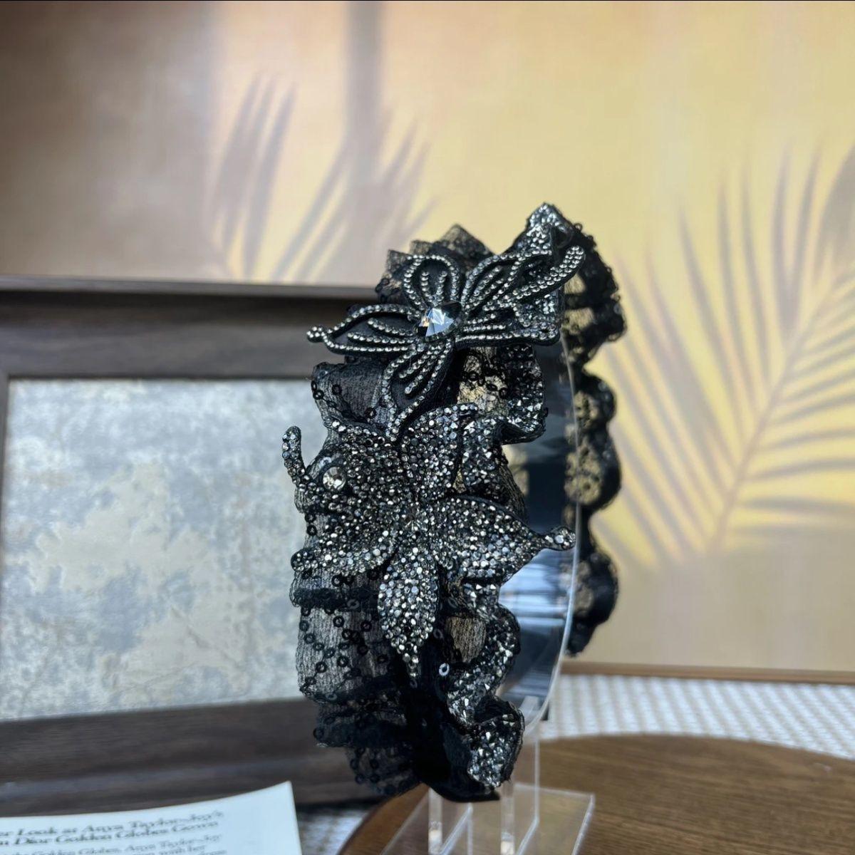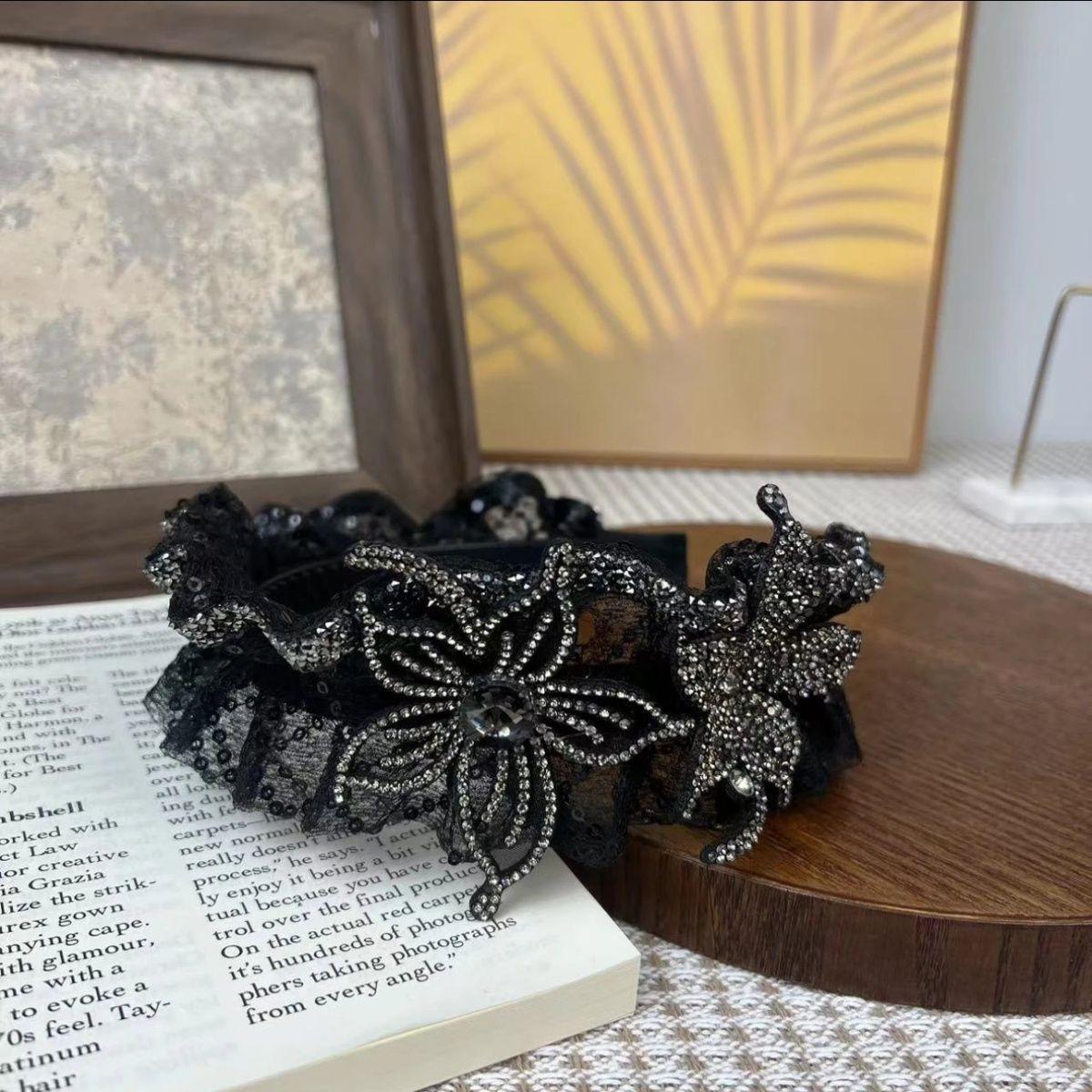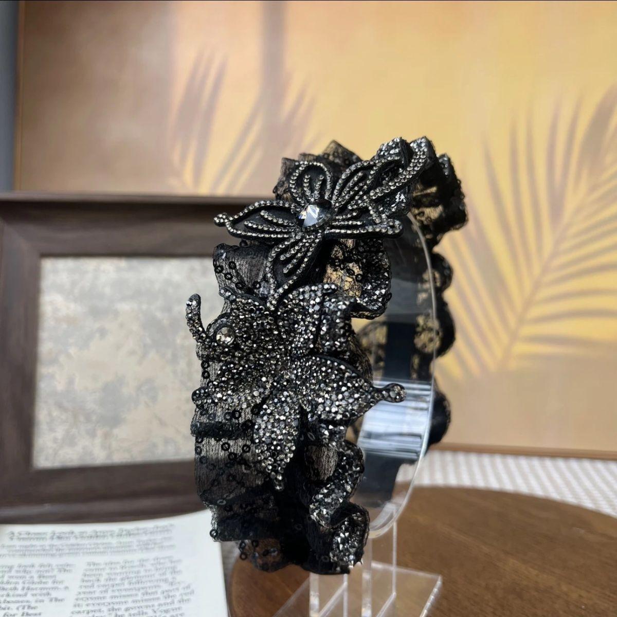 Diadema de mariposa con lentejuelas y diamantes de imitación hecha a mano, diadema plisada de ala ancha que combina con todo, accesorios para el cabello con parte superior de cráneo alto, diadema para la cabeza