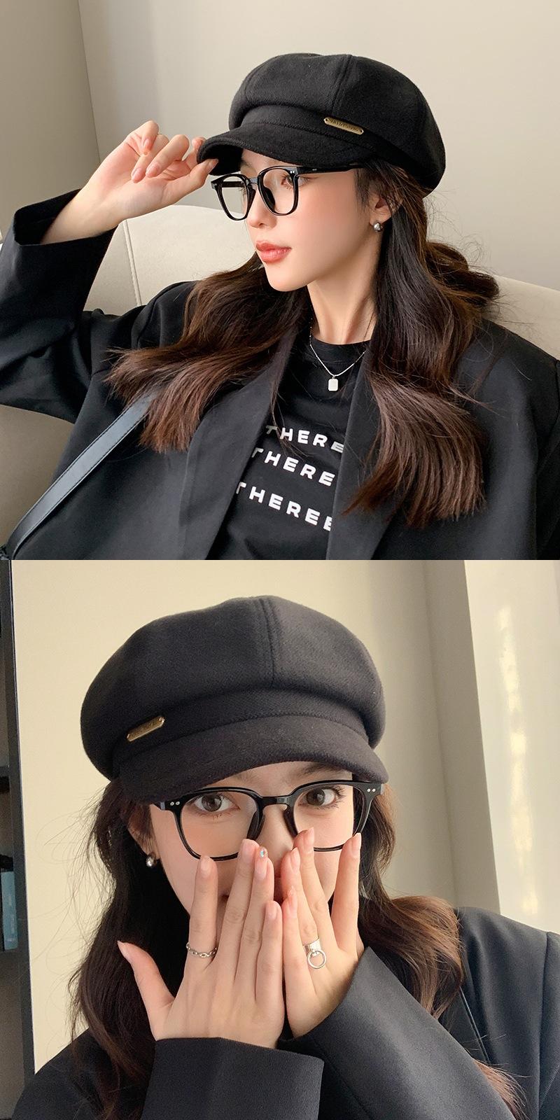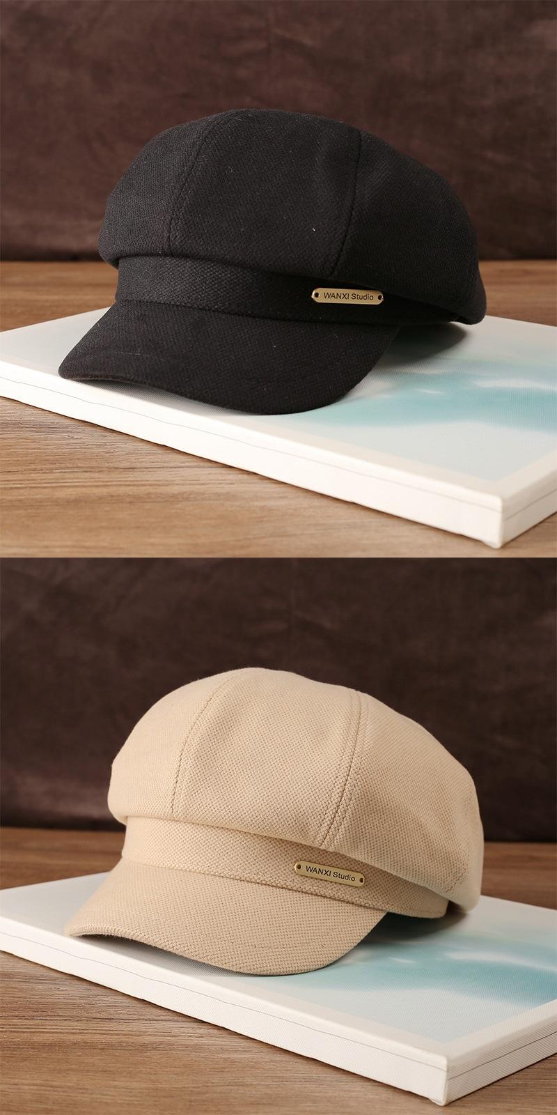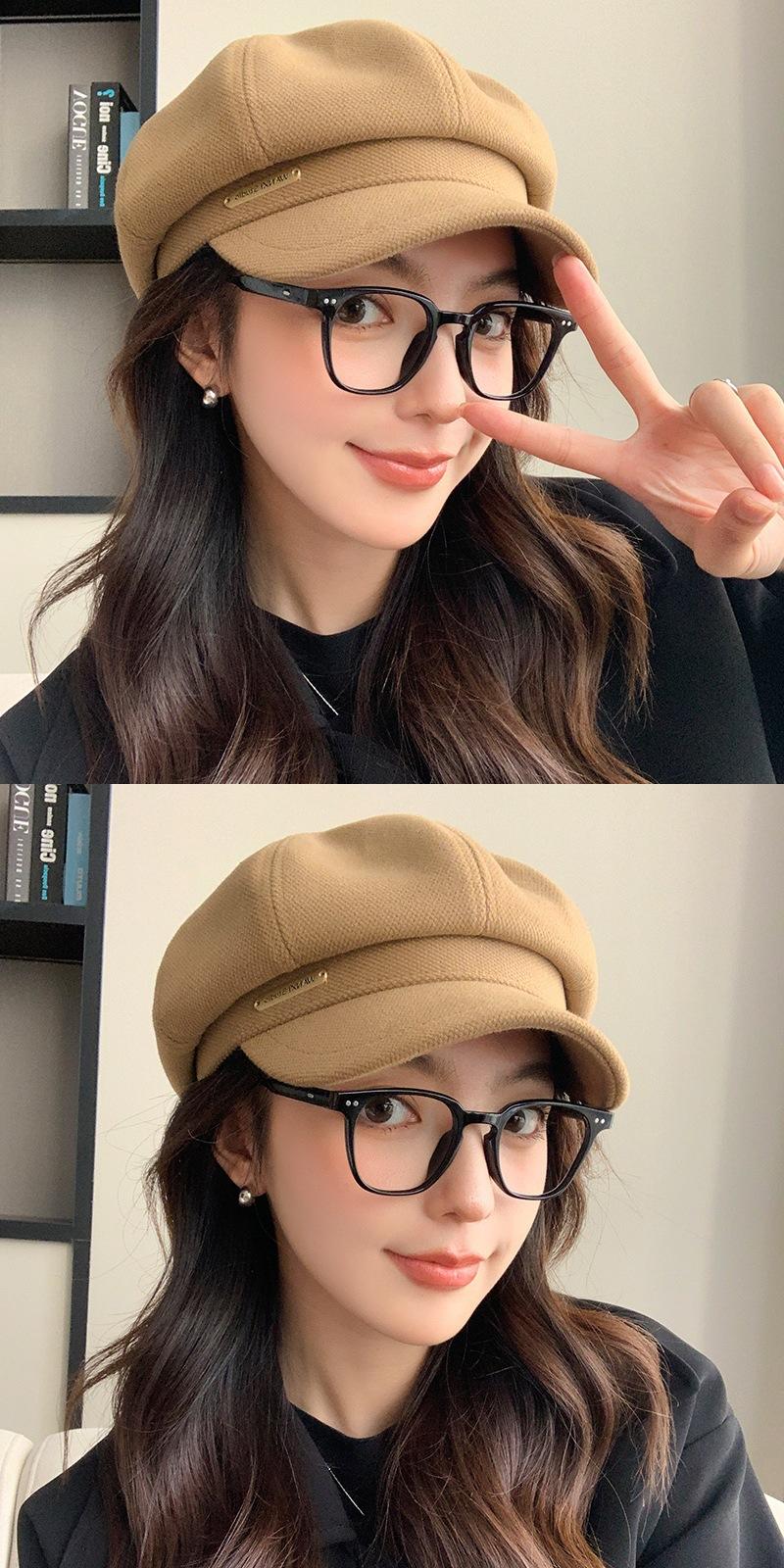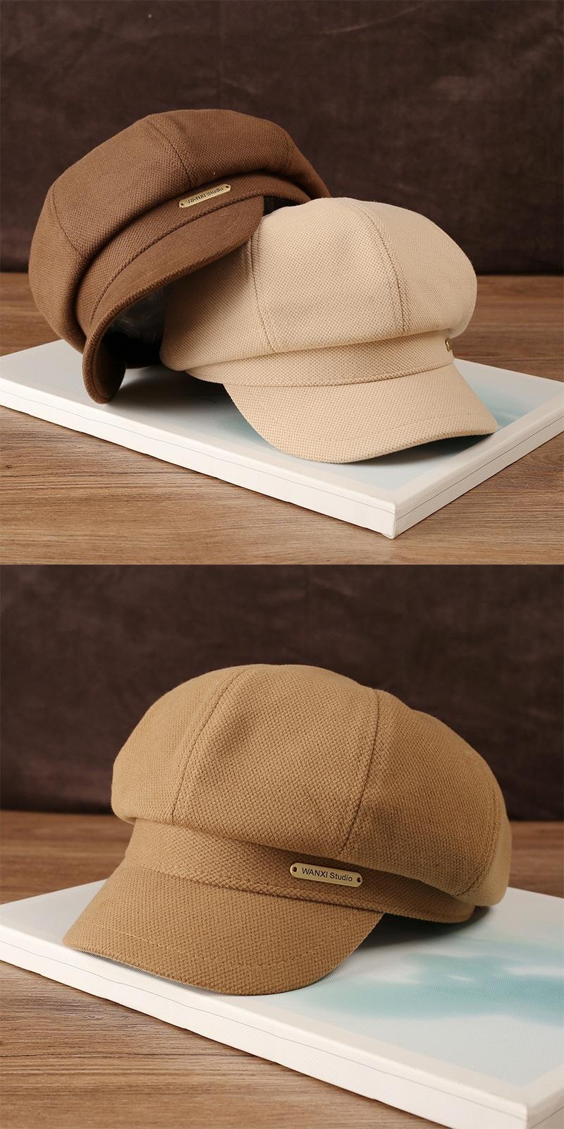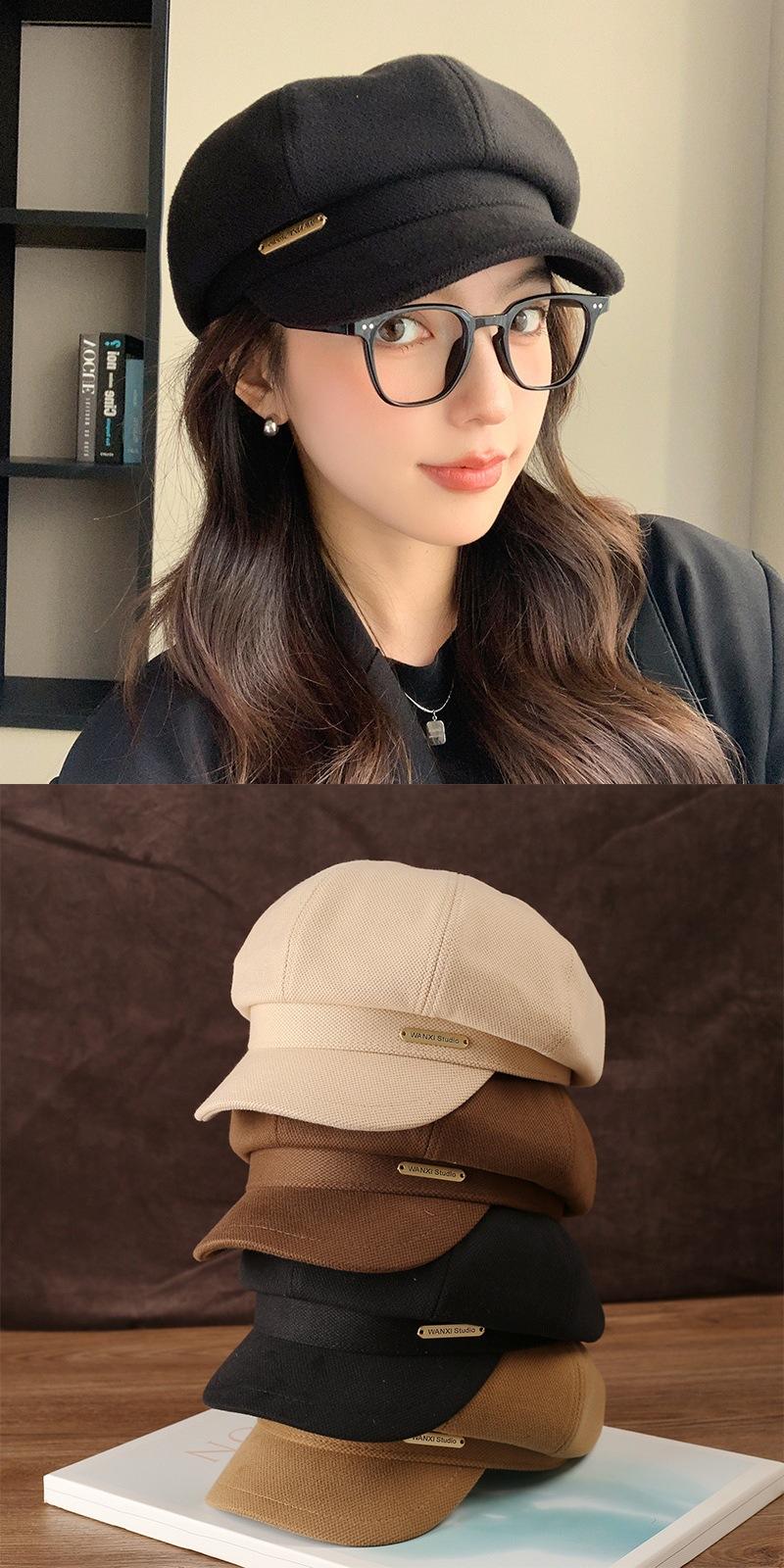 Otoño e invierno nuevo sombrero para mujer retro versátil letra sombrero octogonal invierno exterior circunferencia de cabeza grande cara pequeña boina marea