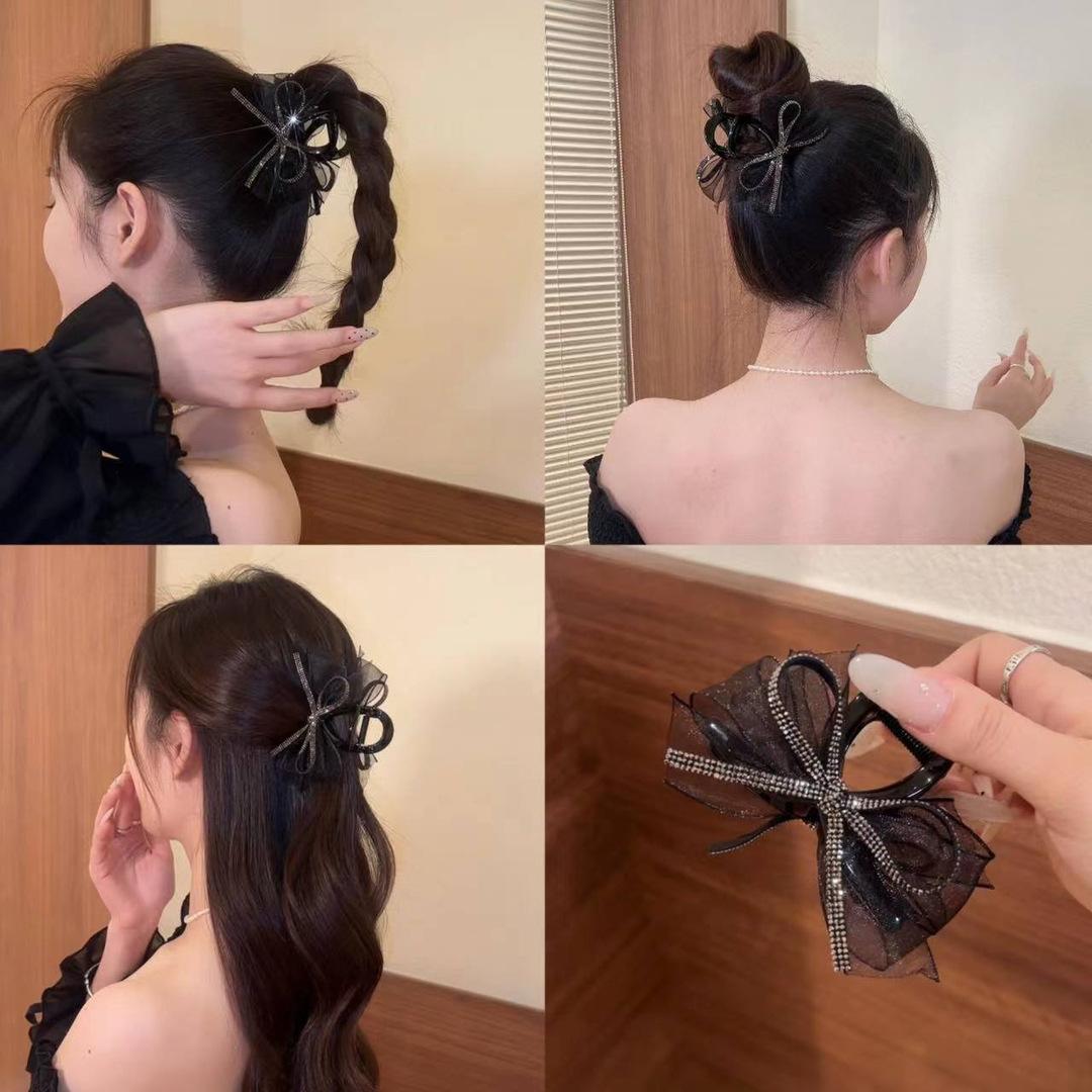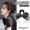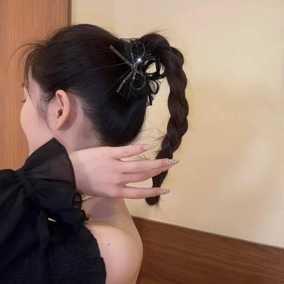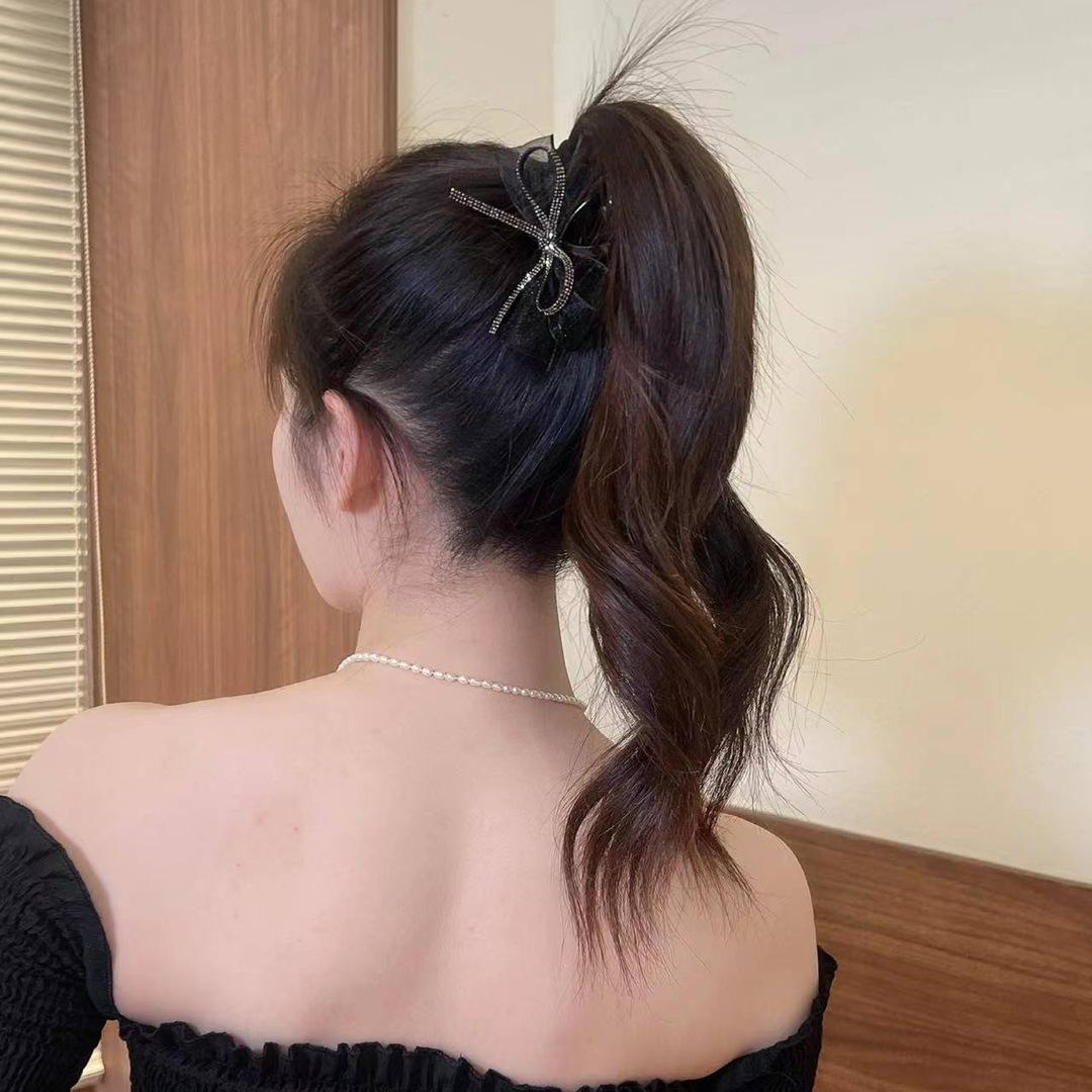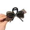 Horquilla de gasa con lazo de malla de hada con diamantes de imitación negros, pinza para el pelo con sensación avanzada, pinza para la cabeza trasera, pinza acrílica con forma de tiburón para mujer