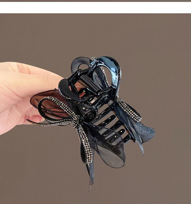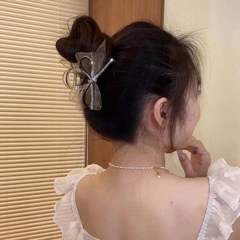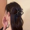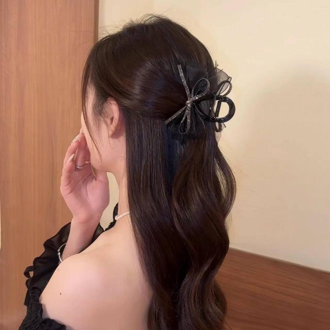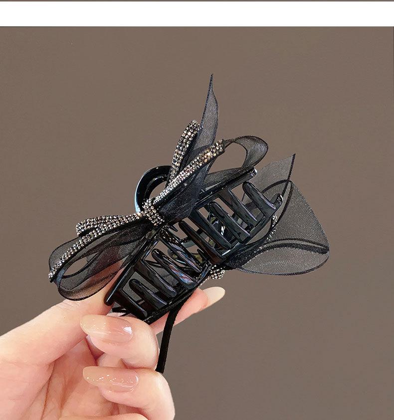 Horquilla de gasa con lazo de malla de hada con diamantes de imitación negros, pinza para el pelo con sensación avanzada, pinza para la cabeza trasera, pinza acrílica con forma de tiburón para mujer
