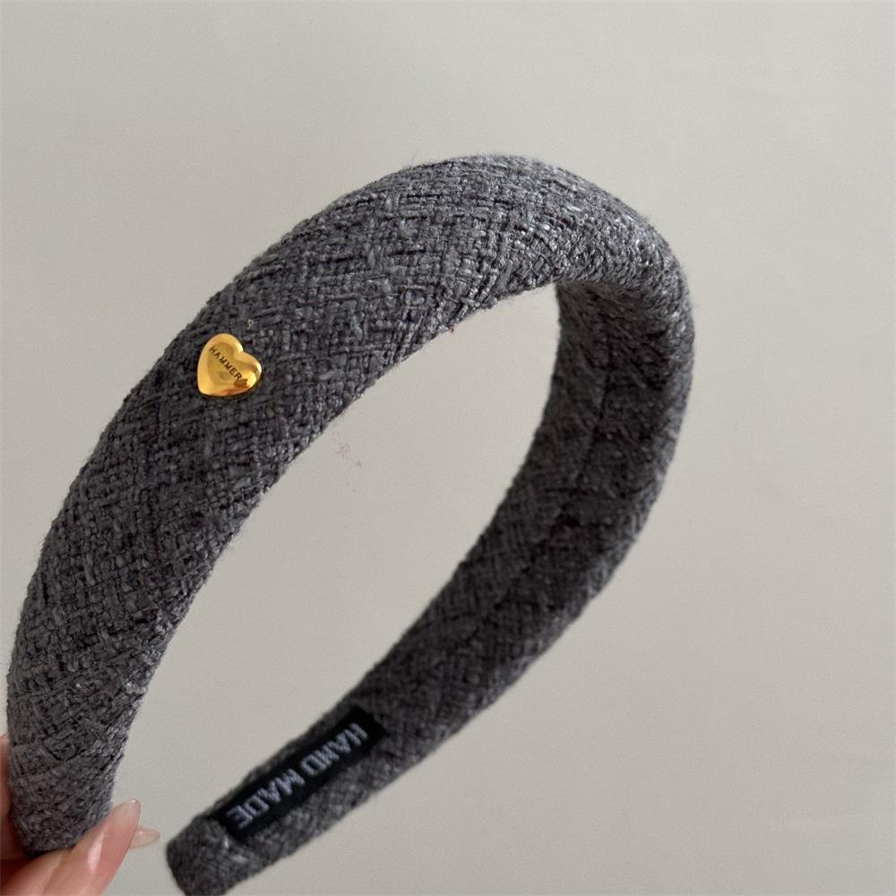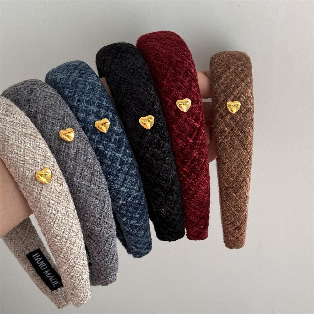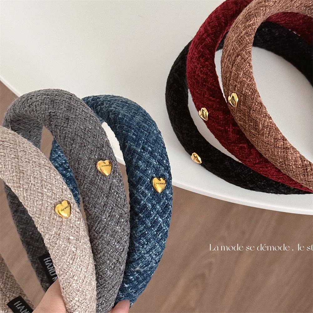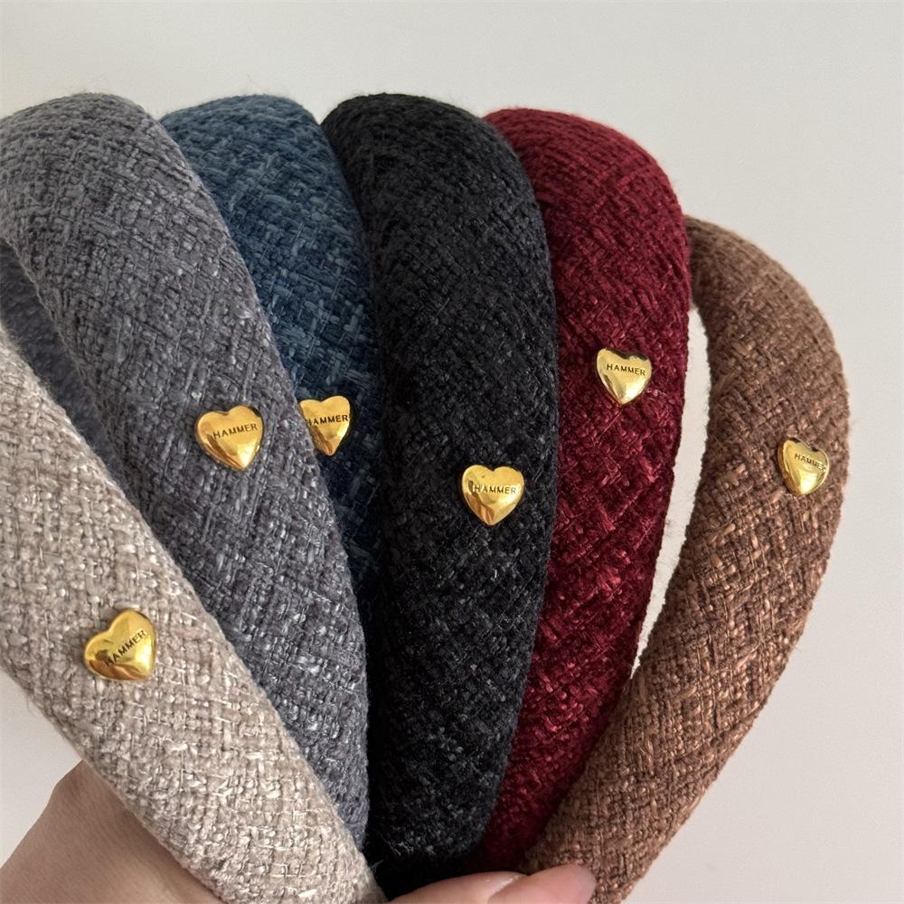 Hebilla dorada amor retro diadema ancha con textura a cuadros otoño e invierno para salir pinza para el cabello parte superior craneal alta nuevos accesorios para el cabello