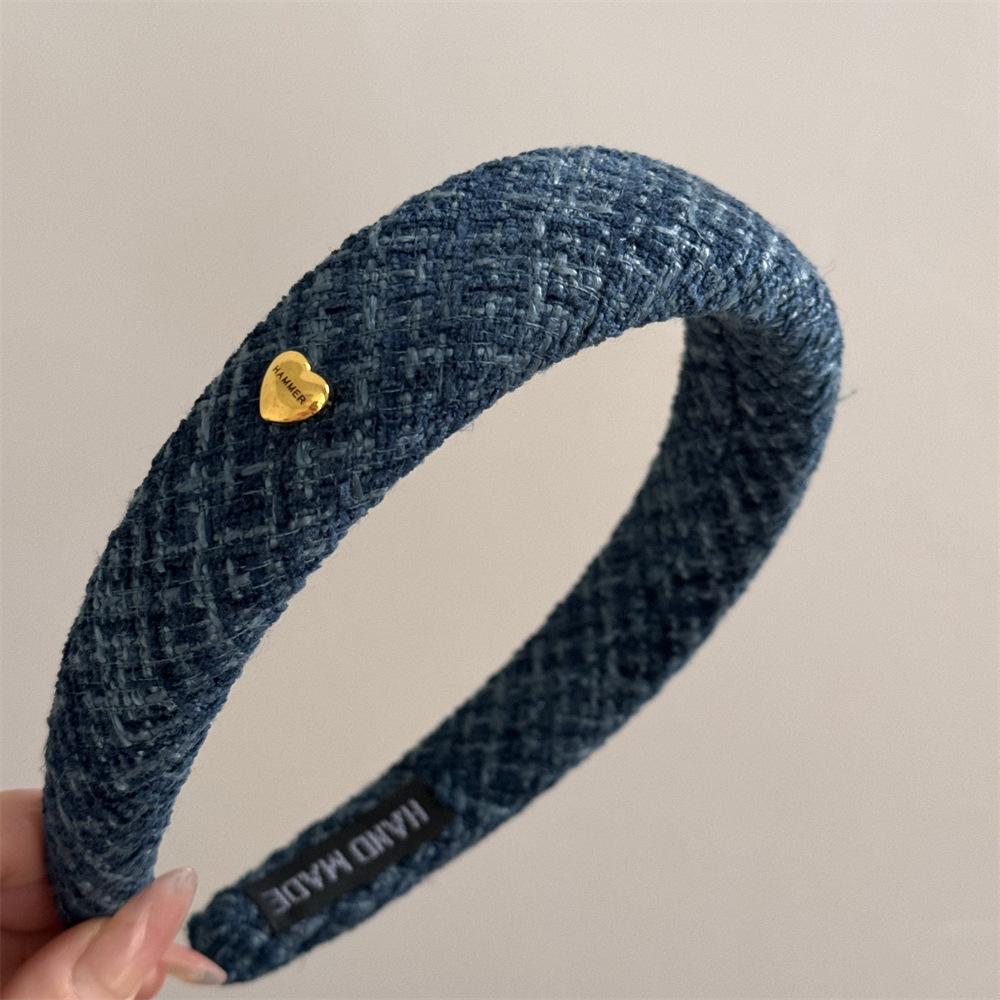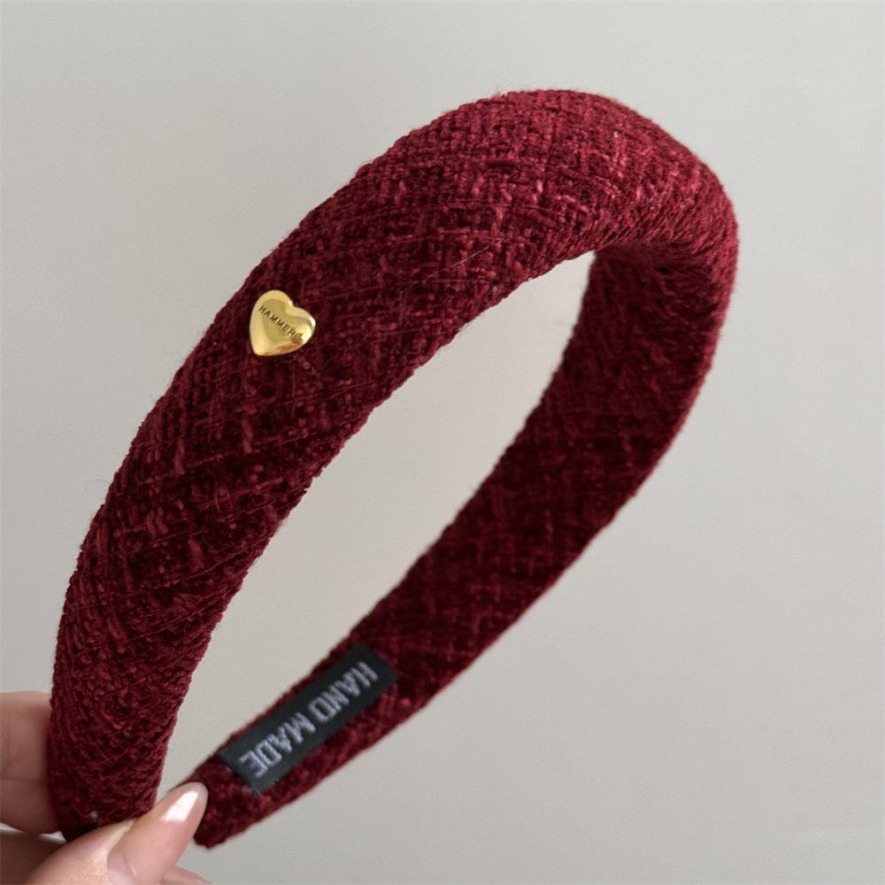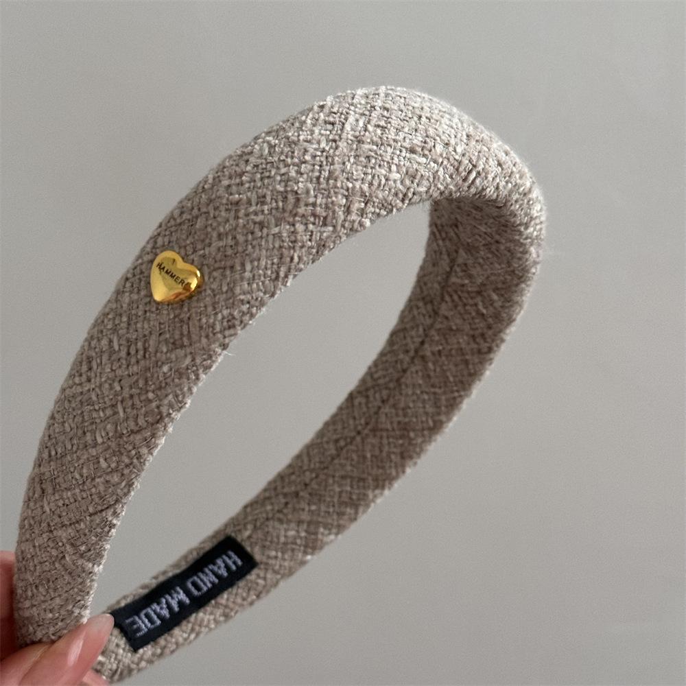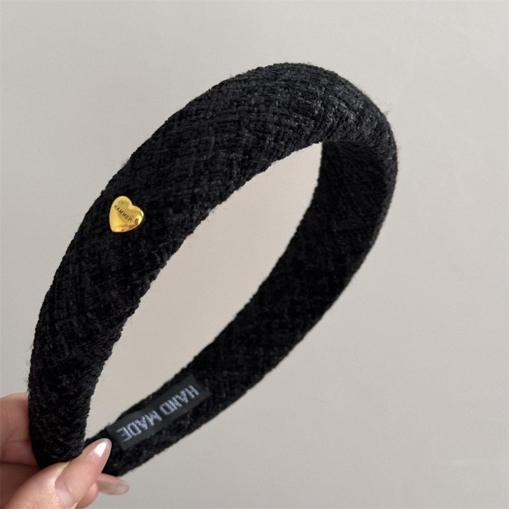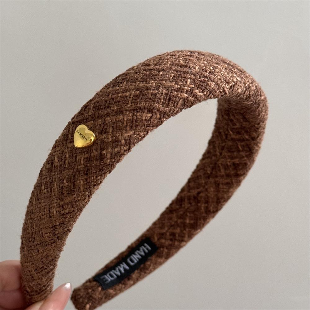 Hebilla dorada amor retro diadema ancha con textura a cuadros otoño e invierno para salir pinza para el cabello parte superior craneal alta nuevos accesorios para el cabello