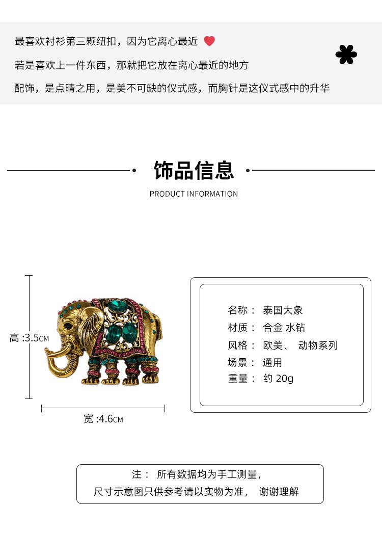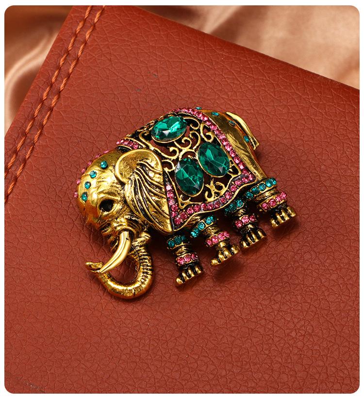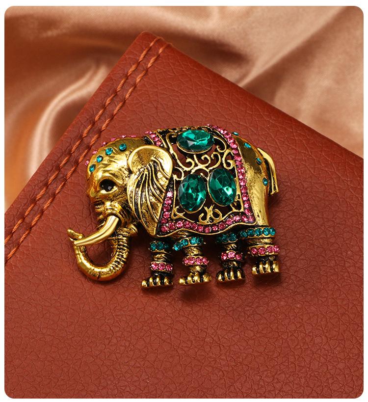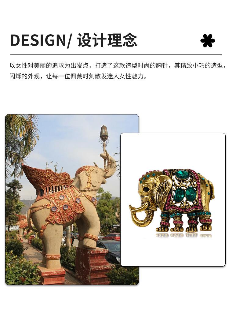 Broche de elefante retro transfronterizo temperamento femenino de alto nivel europeo y americano de gran venta animal auspicioso ramillete joyería accesorios de ropa