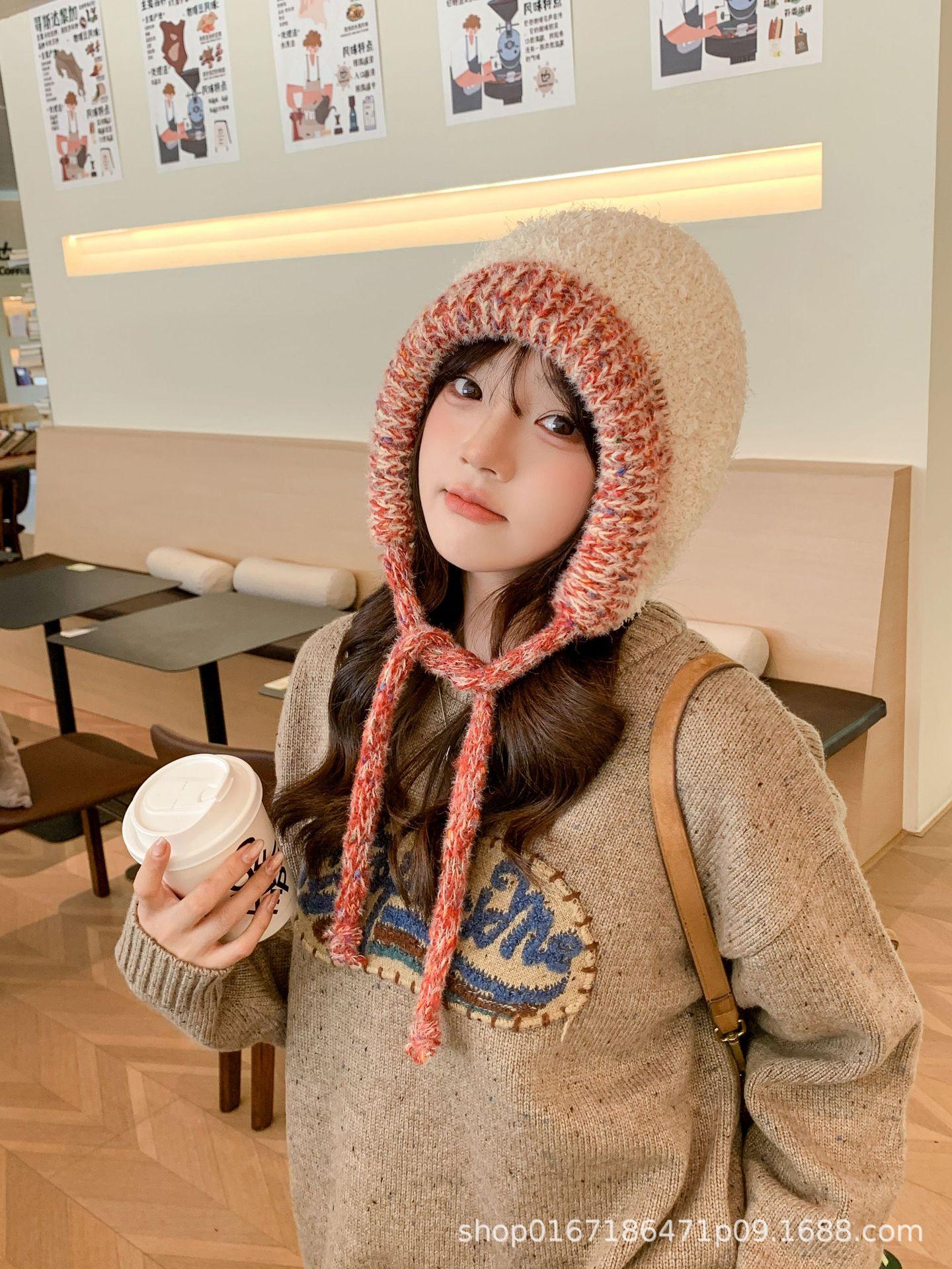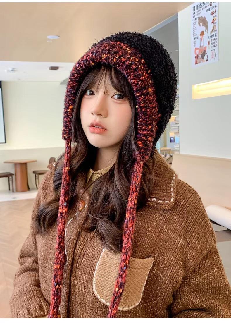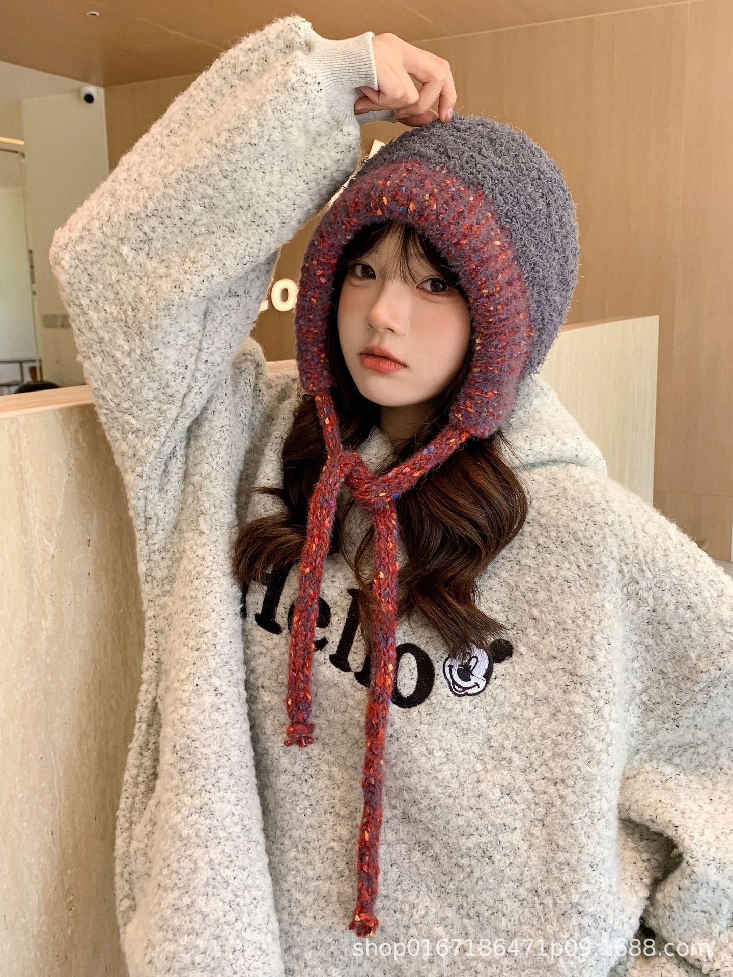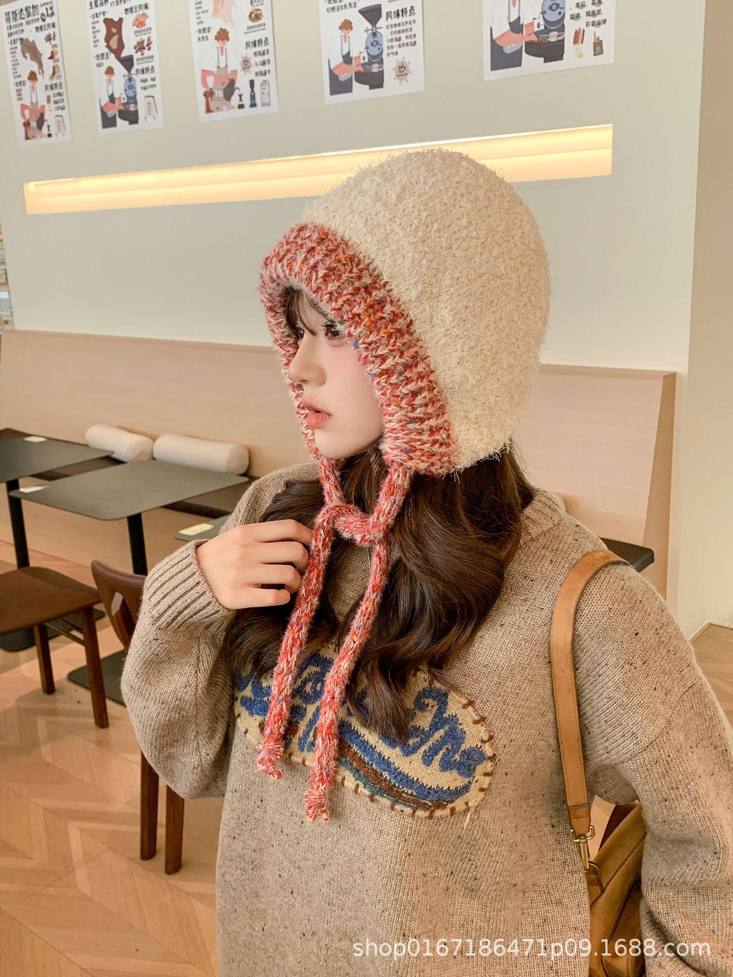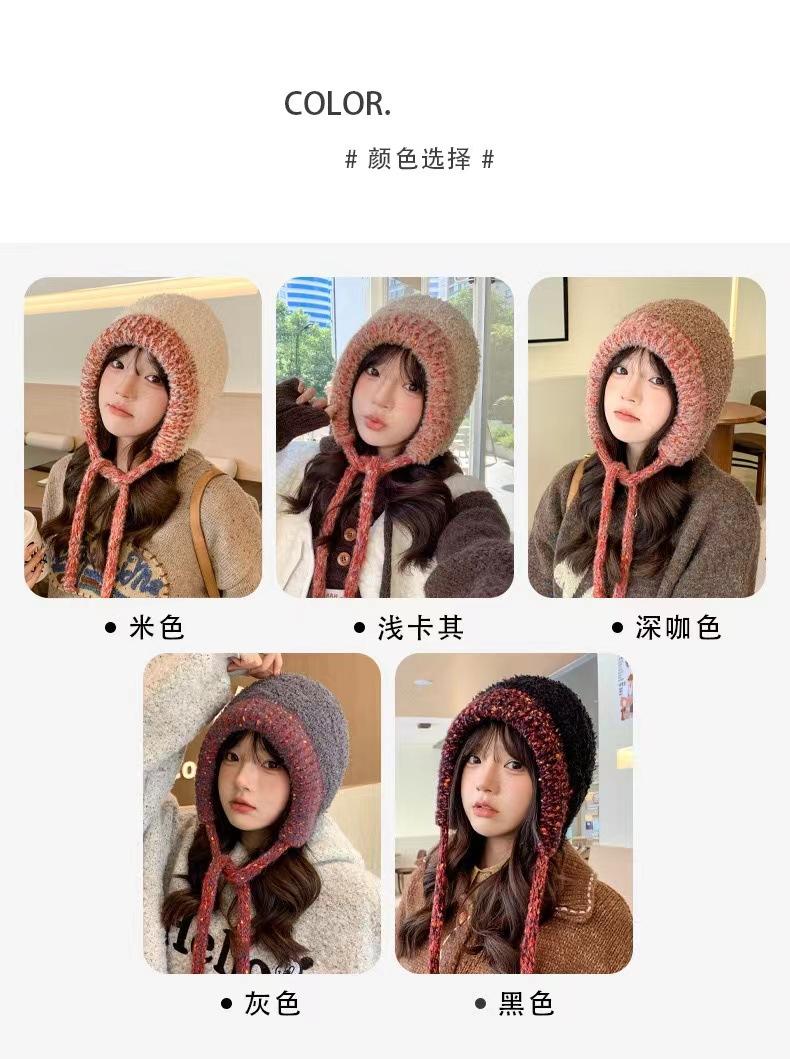 Gorro nuevo de estilo coreano para otoño e invierno, gorro de lana tejido a la moda para mujer, gorro cálido con protección para las orejas para invierno, gorro para estudiante.