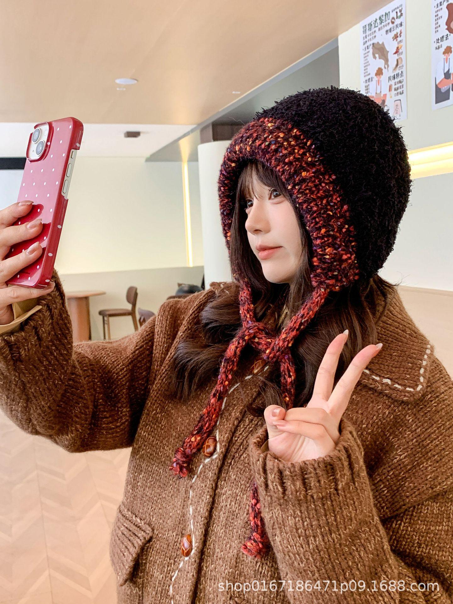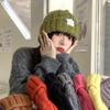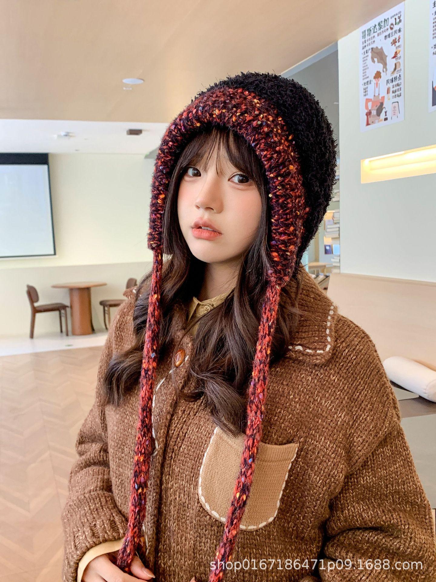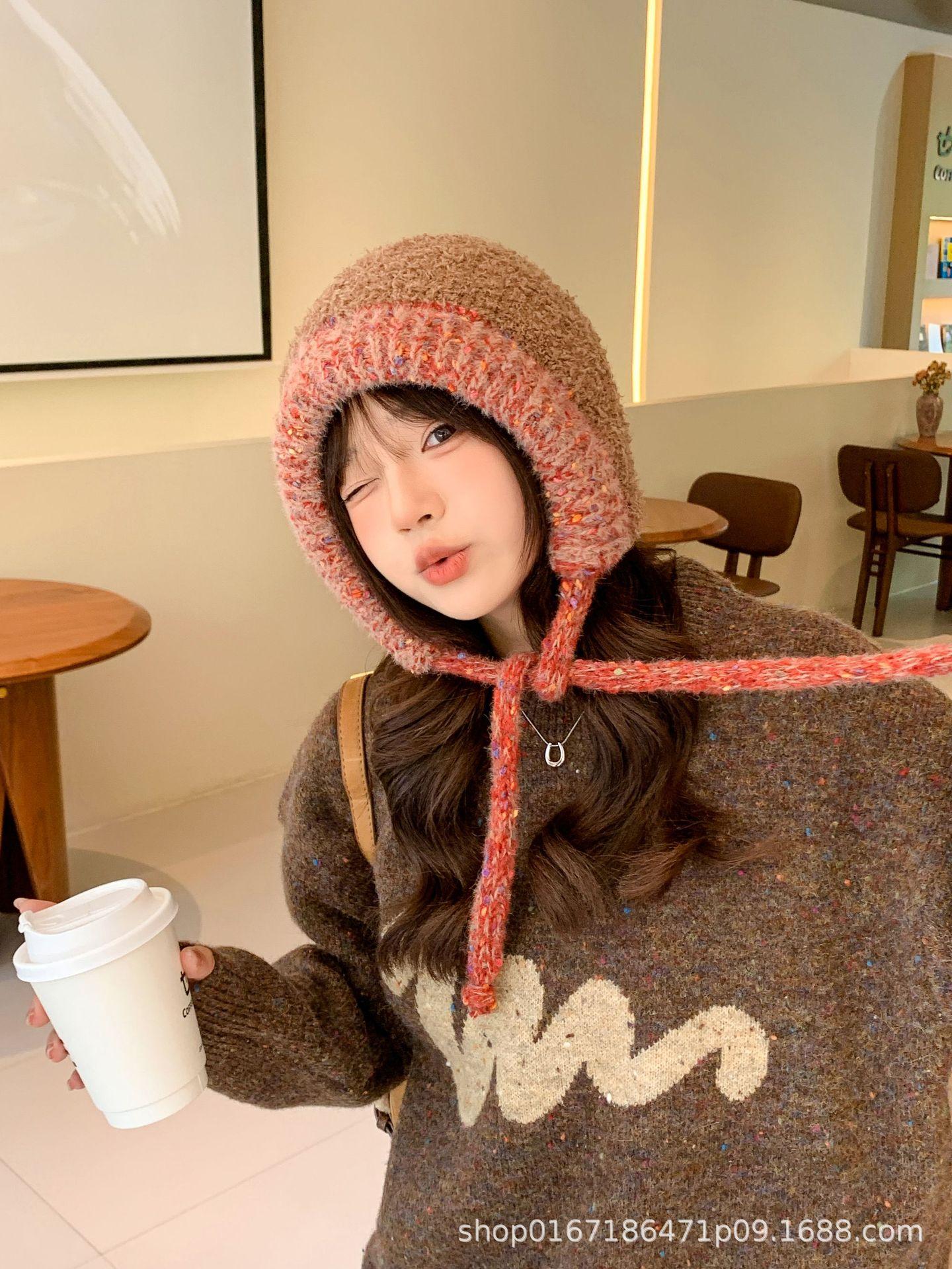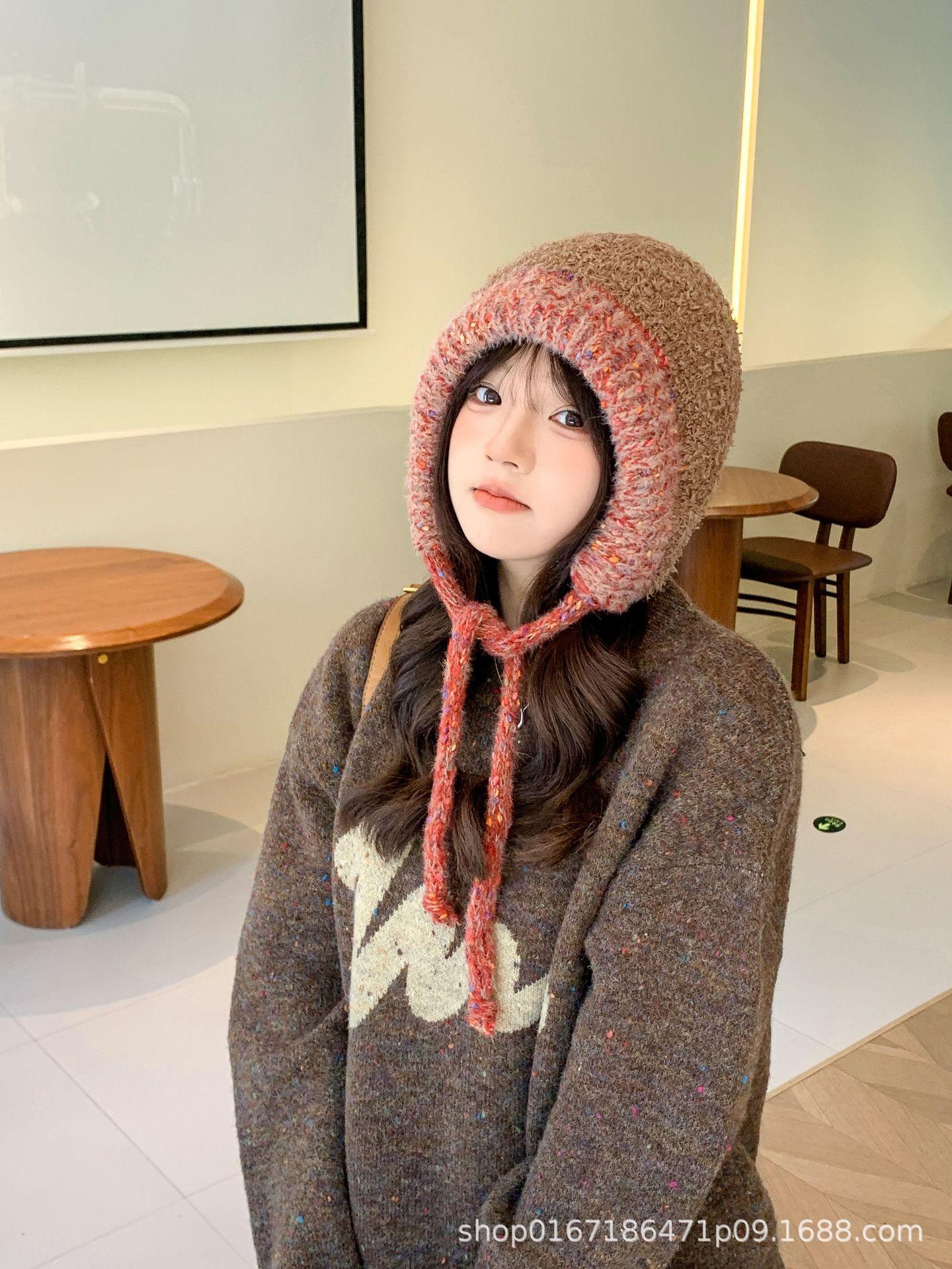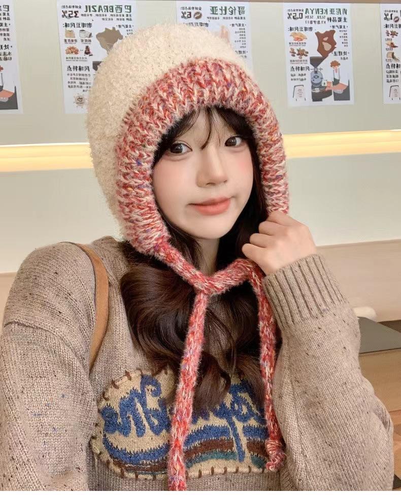 Gorro nuevo de estilo coreano para otoño e invierno, gorro de lana tejido a la moda para mujer, gorro cálido con protección para las orejas para invierno, gorro para estudiante.