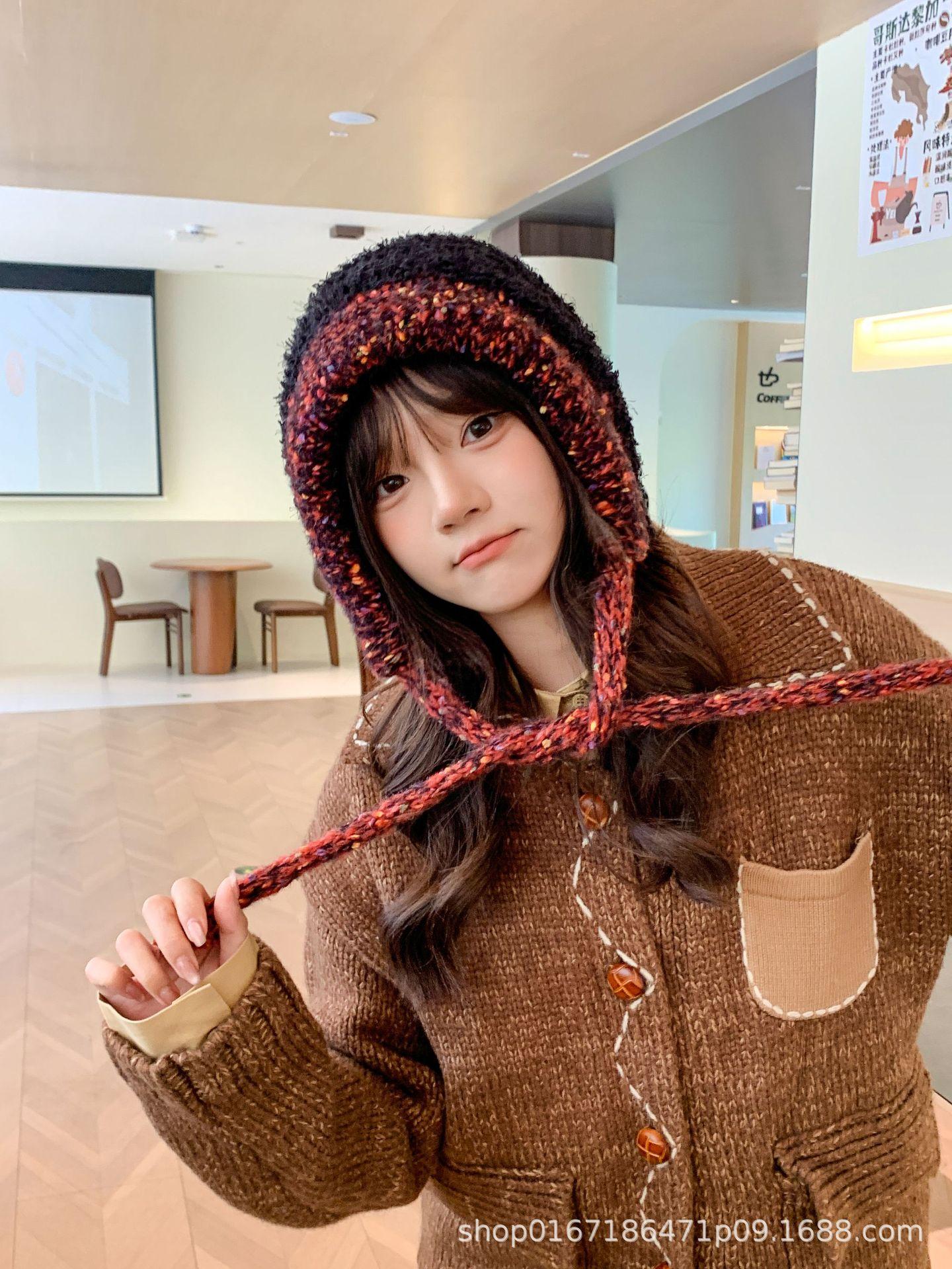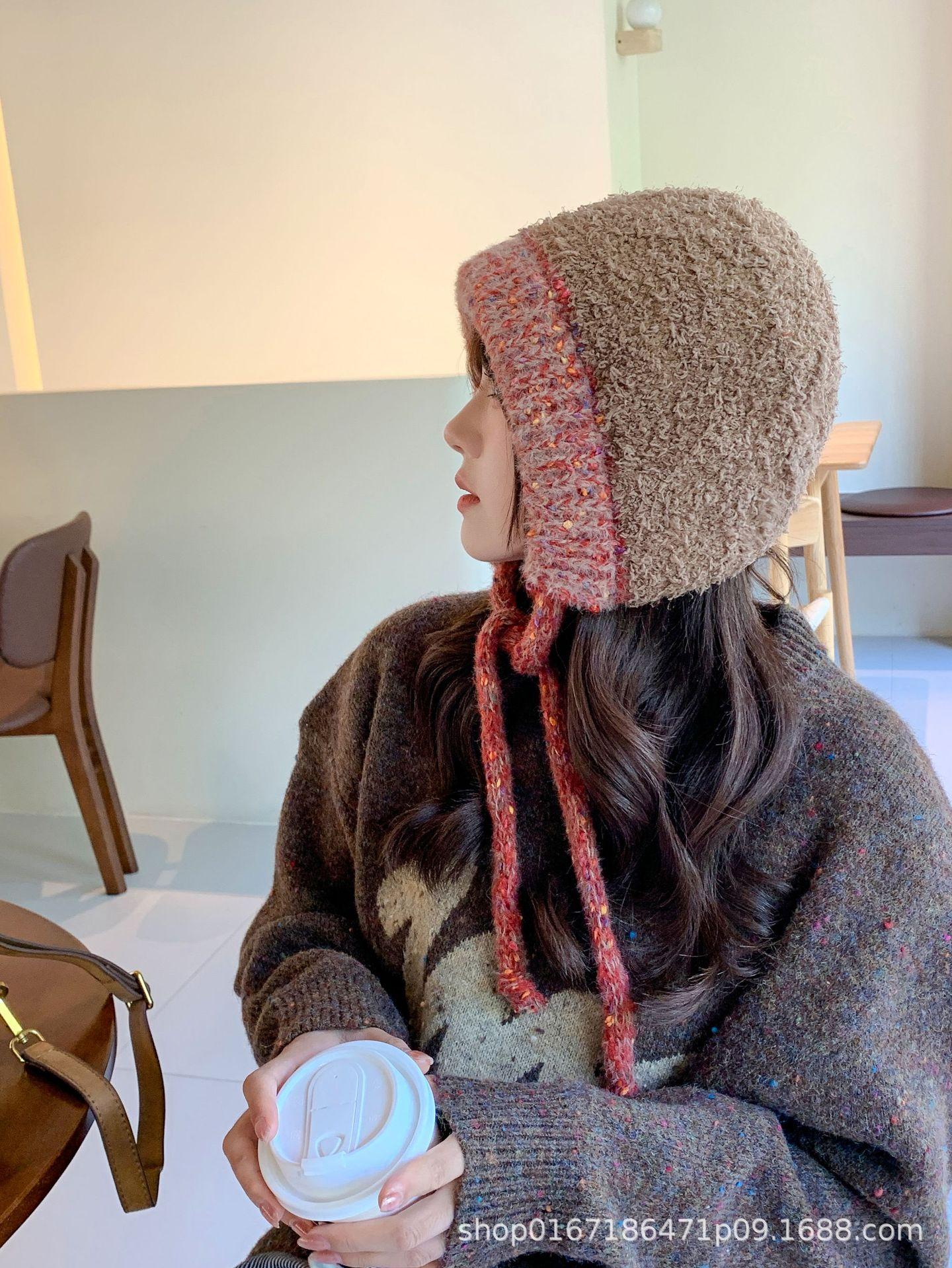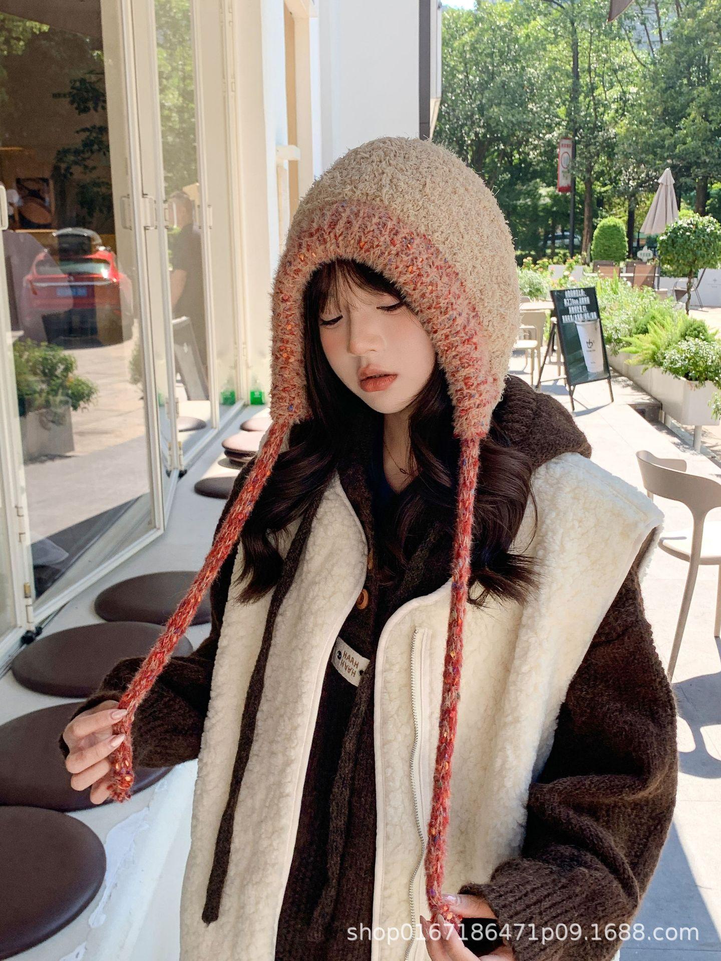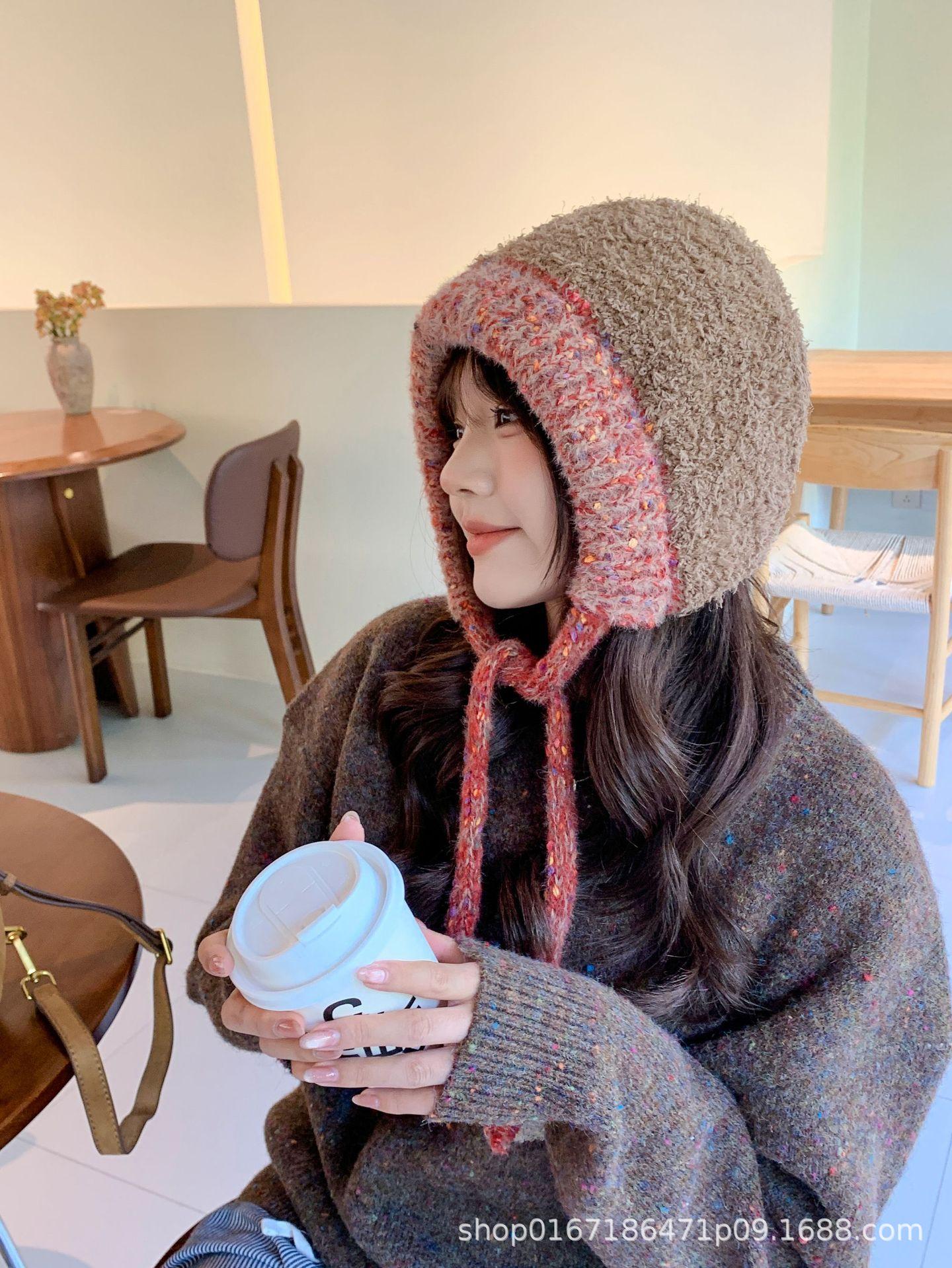Gorro nuevo de estilo coreano para otoño e invierno, gorro de lana tejido a la moda para mujer, gorro cálido con protección para las orejas para invierno, gorro para estudiante.