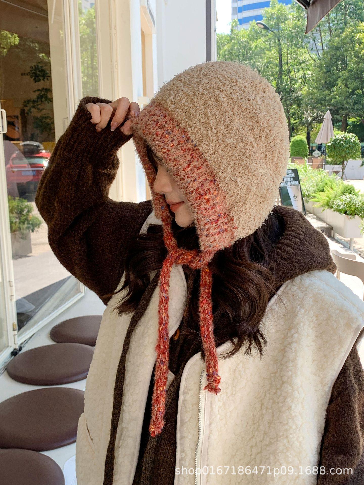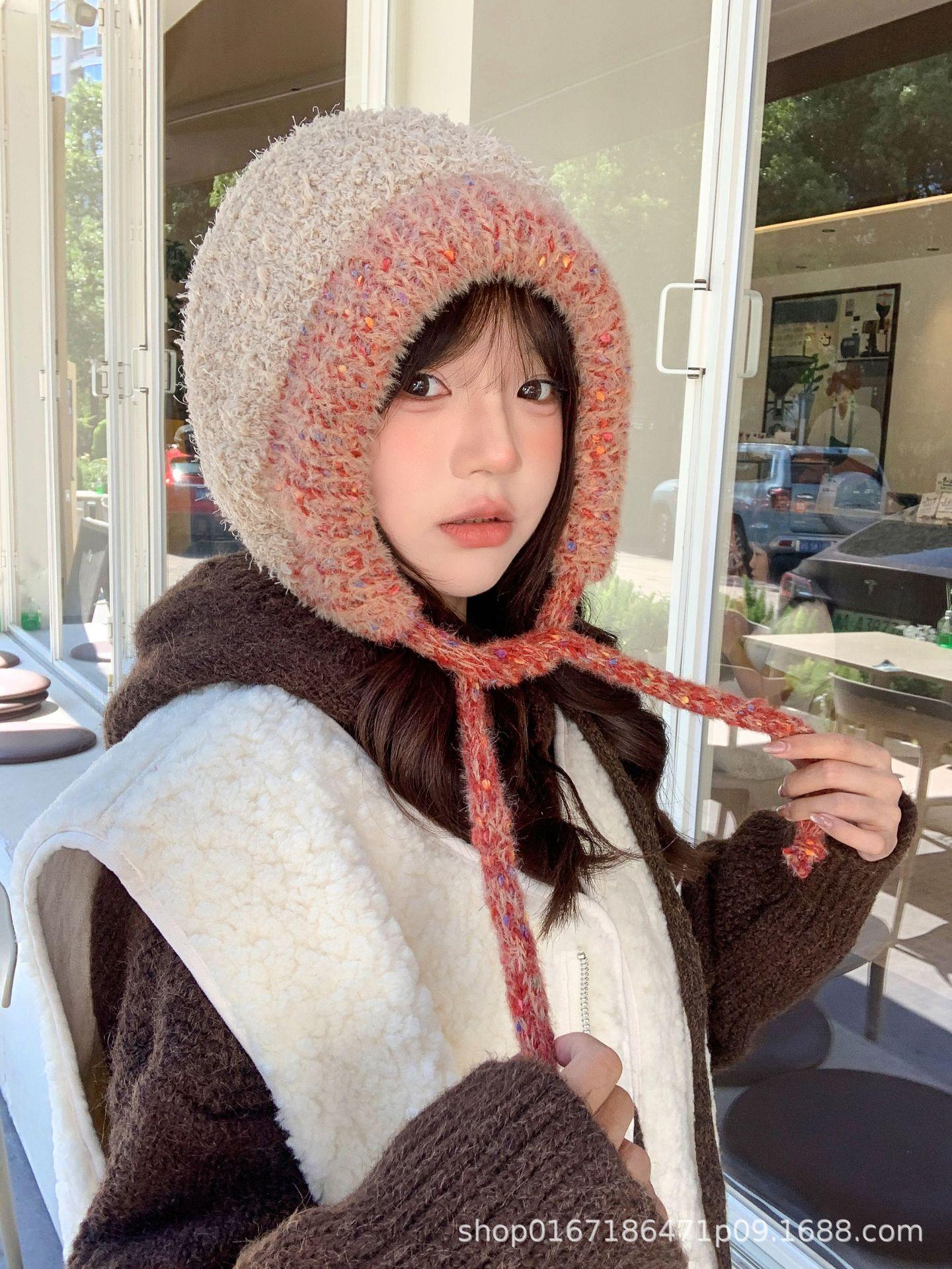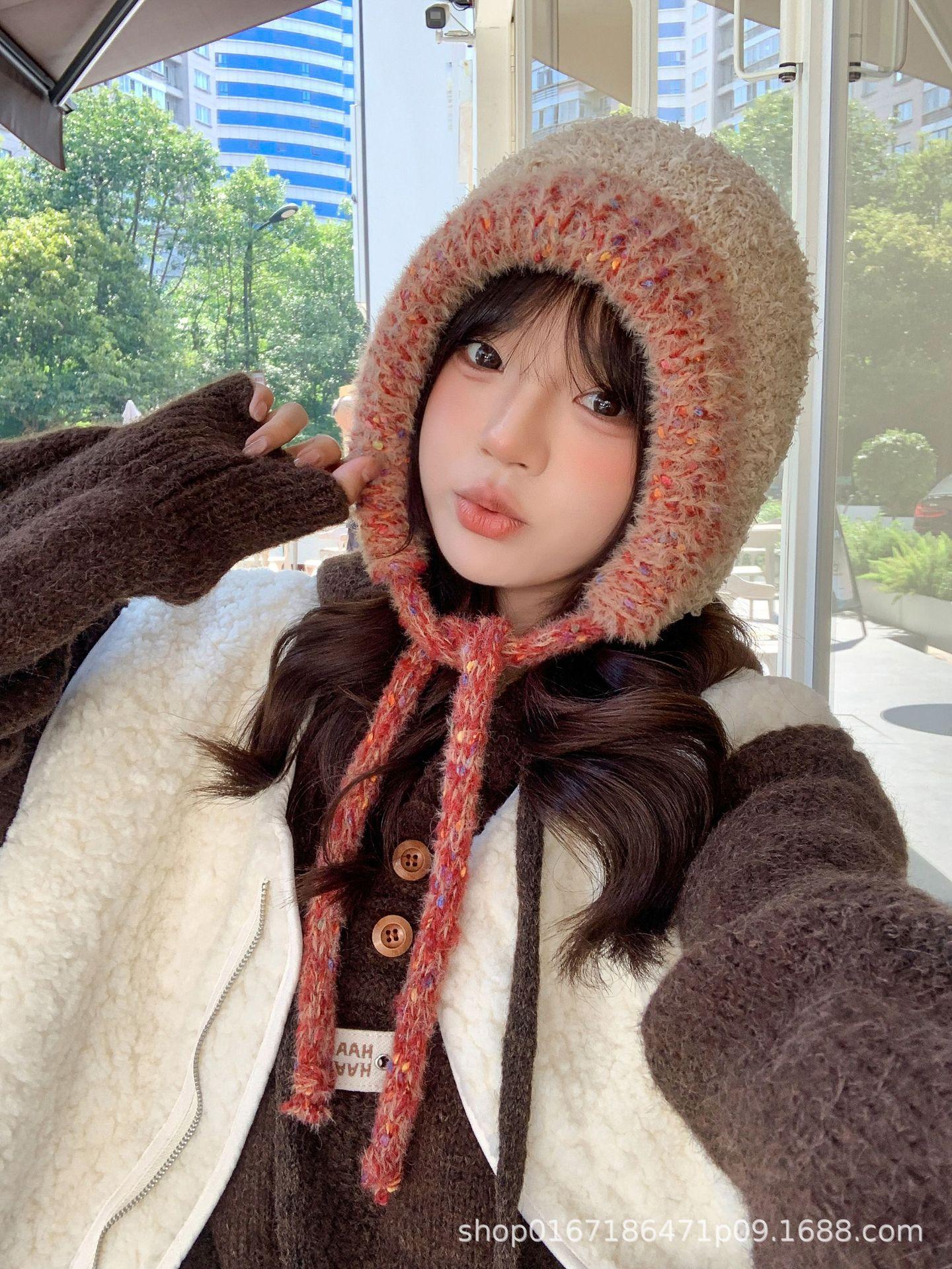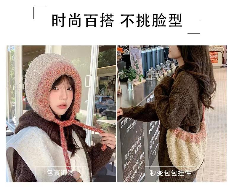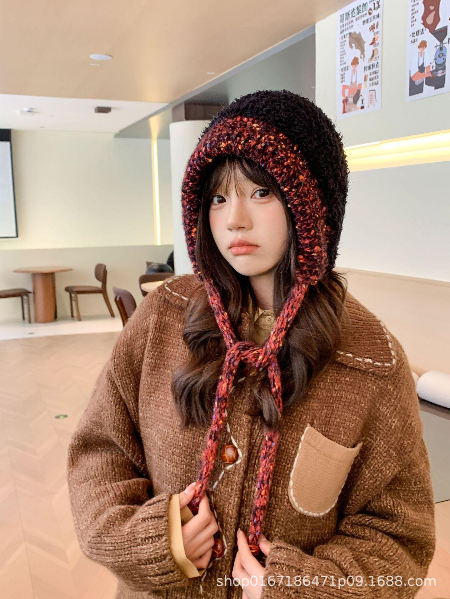 Gorro nuevo de estilo coreano para otoño e invierno, gorro de lana tejido a la moda para mujer, gorro cálido con protección para las orejas para invierno, gorro para estudiante.