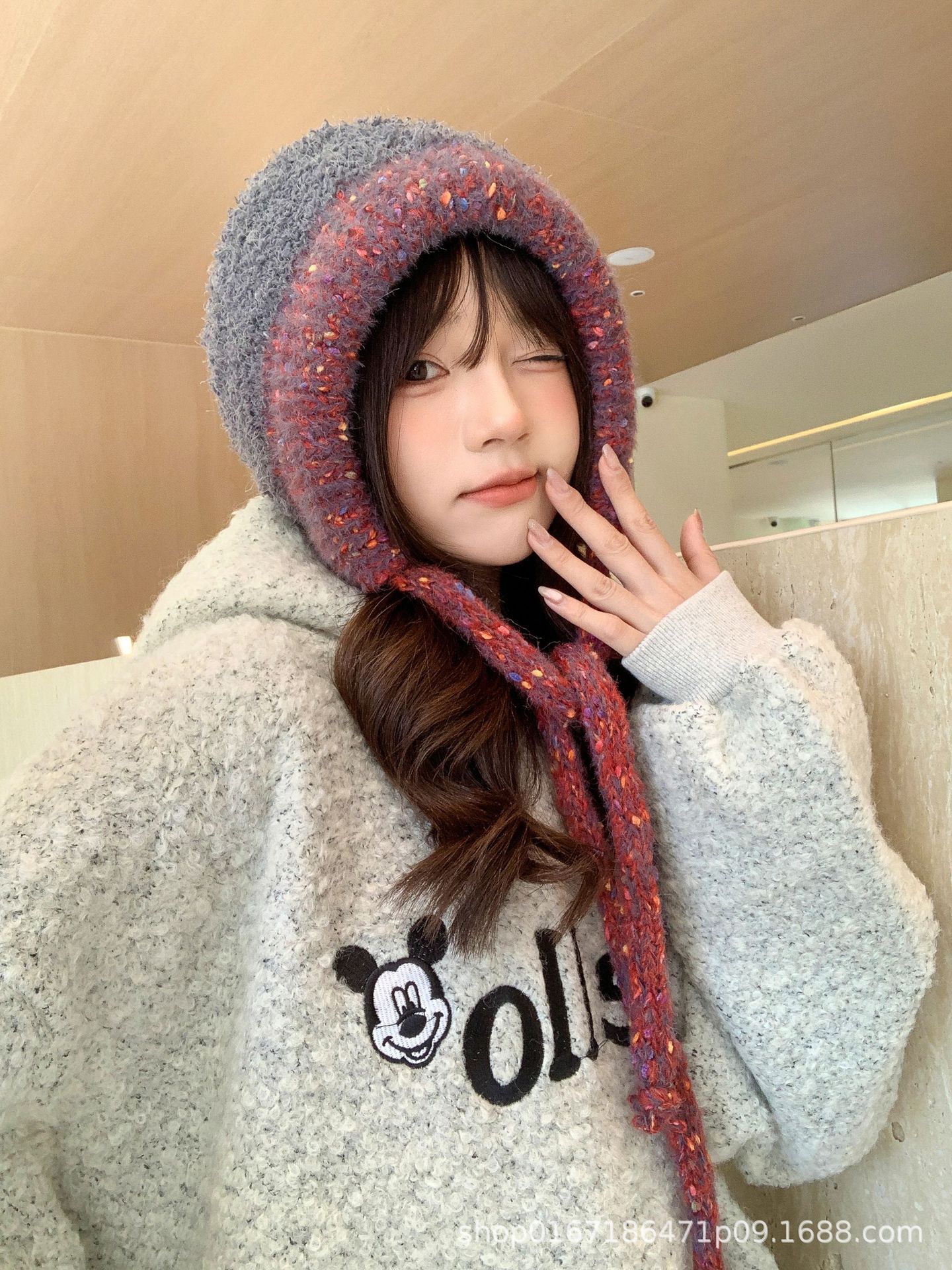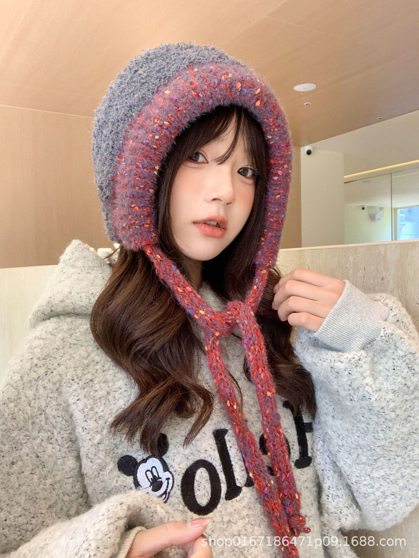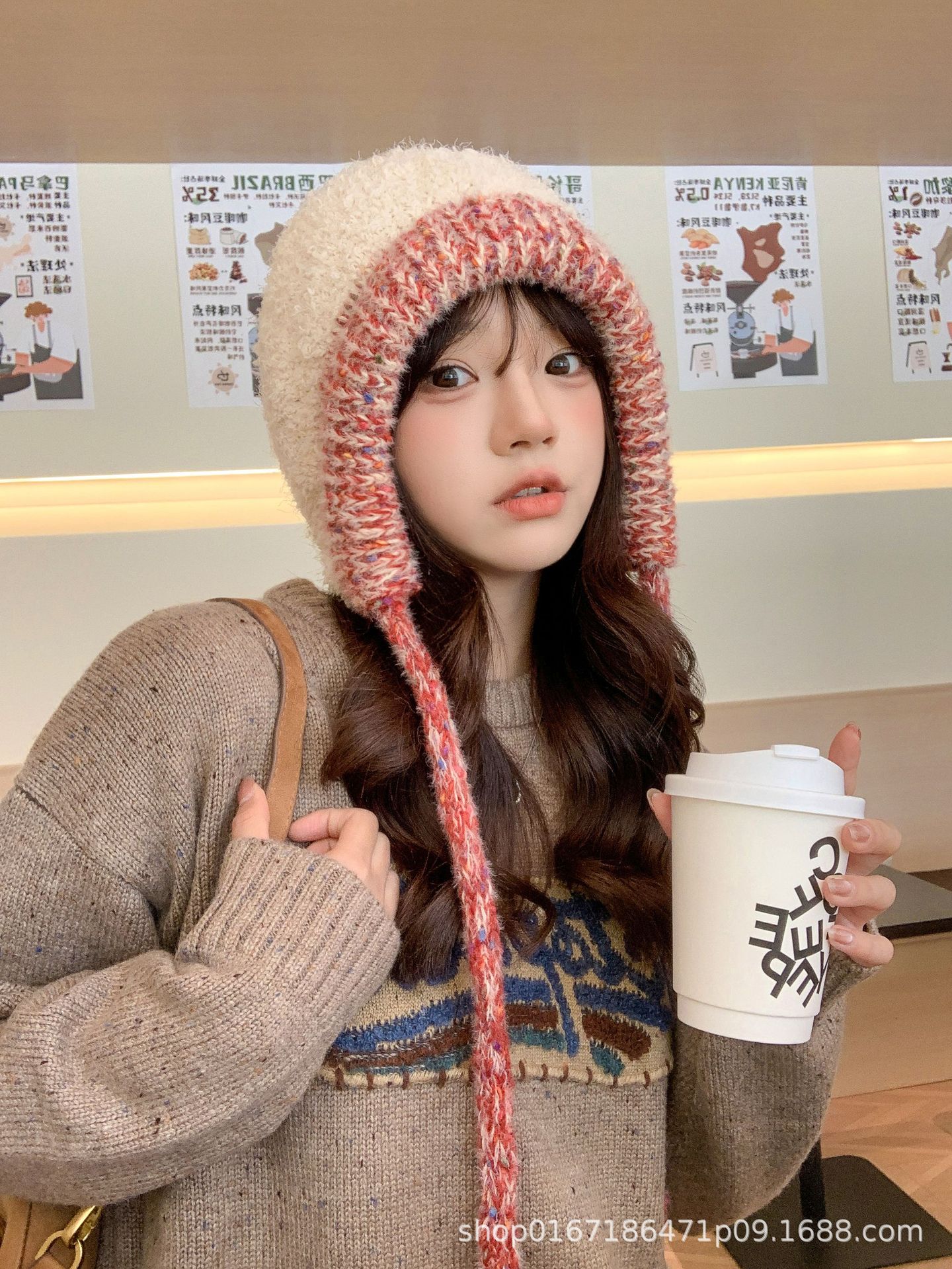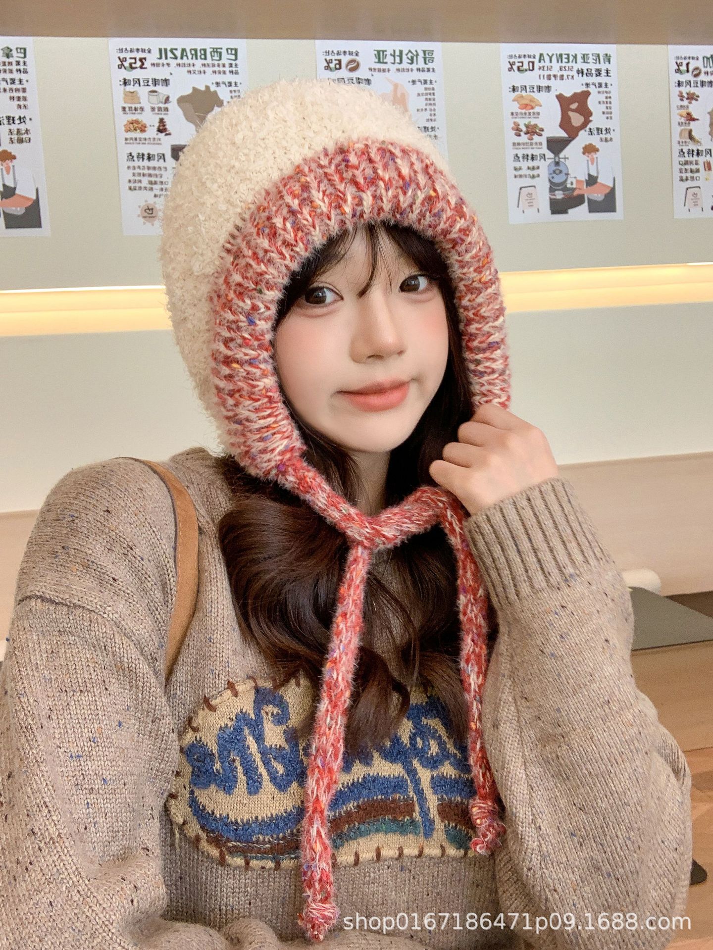 Gorro nuevo de estilo coreano para otoño e invierno, gorro de lana tejido a la moda para mujer, gorro cálido con protección para las orejas para invierno, gorro para estudiante.