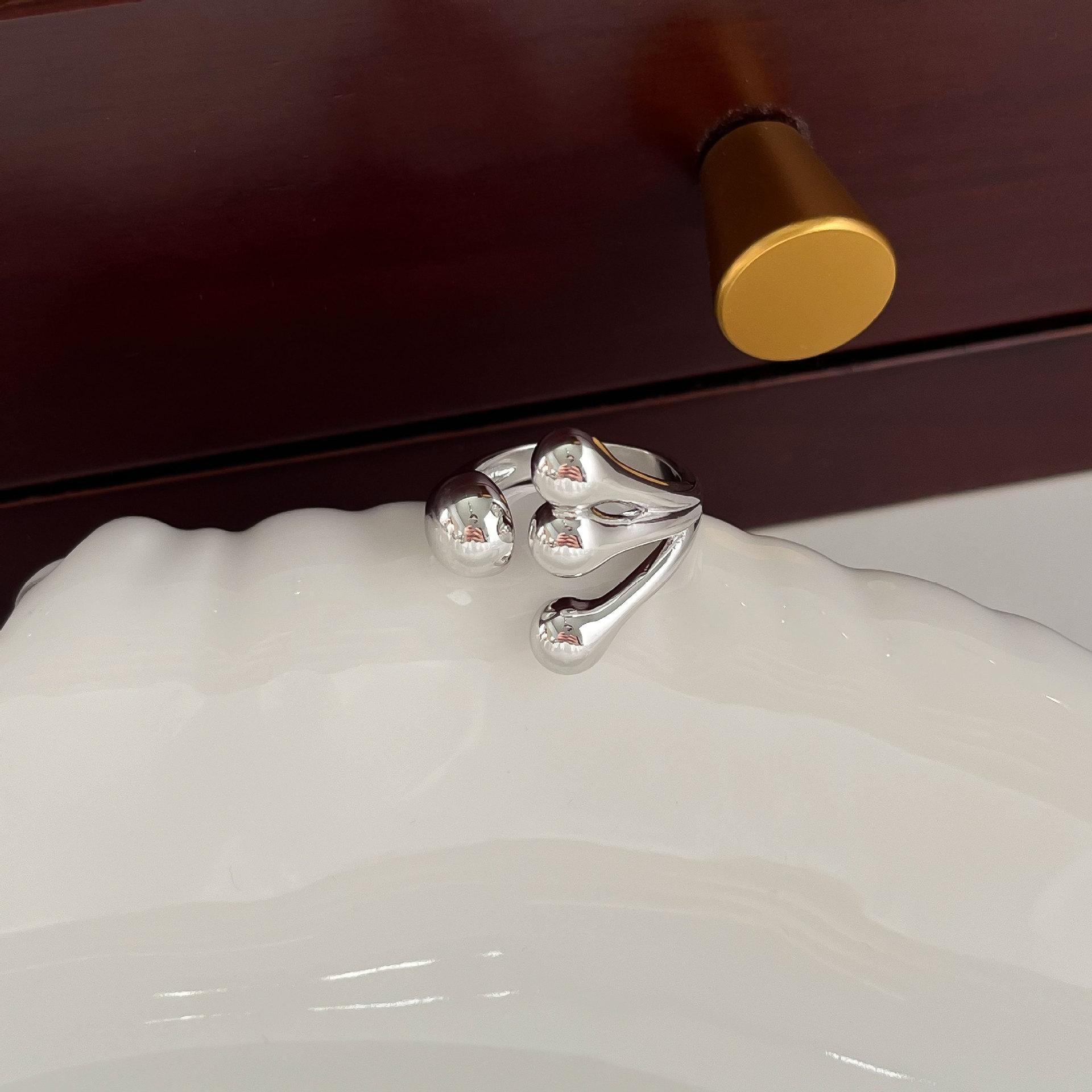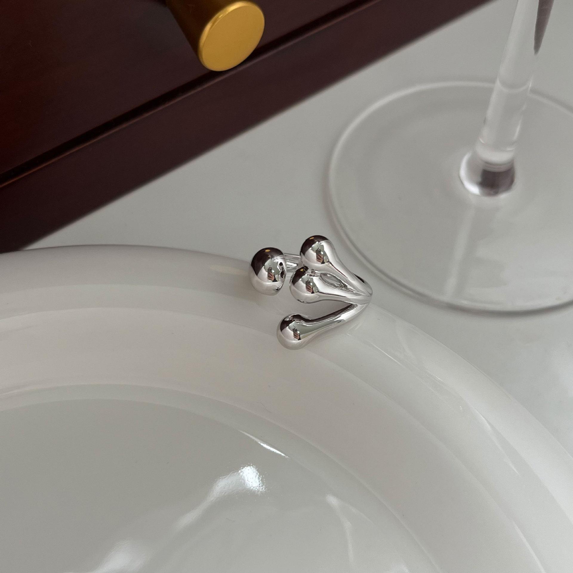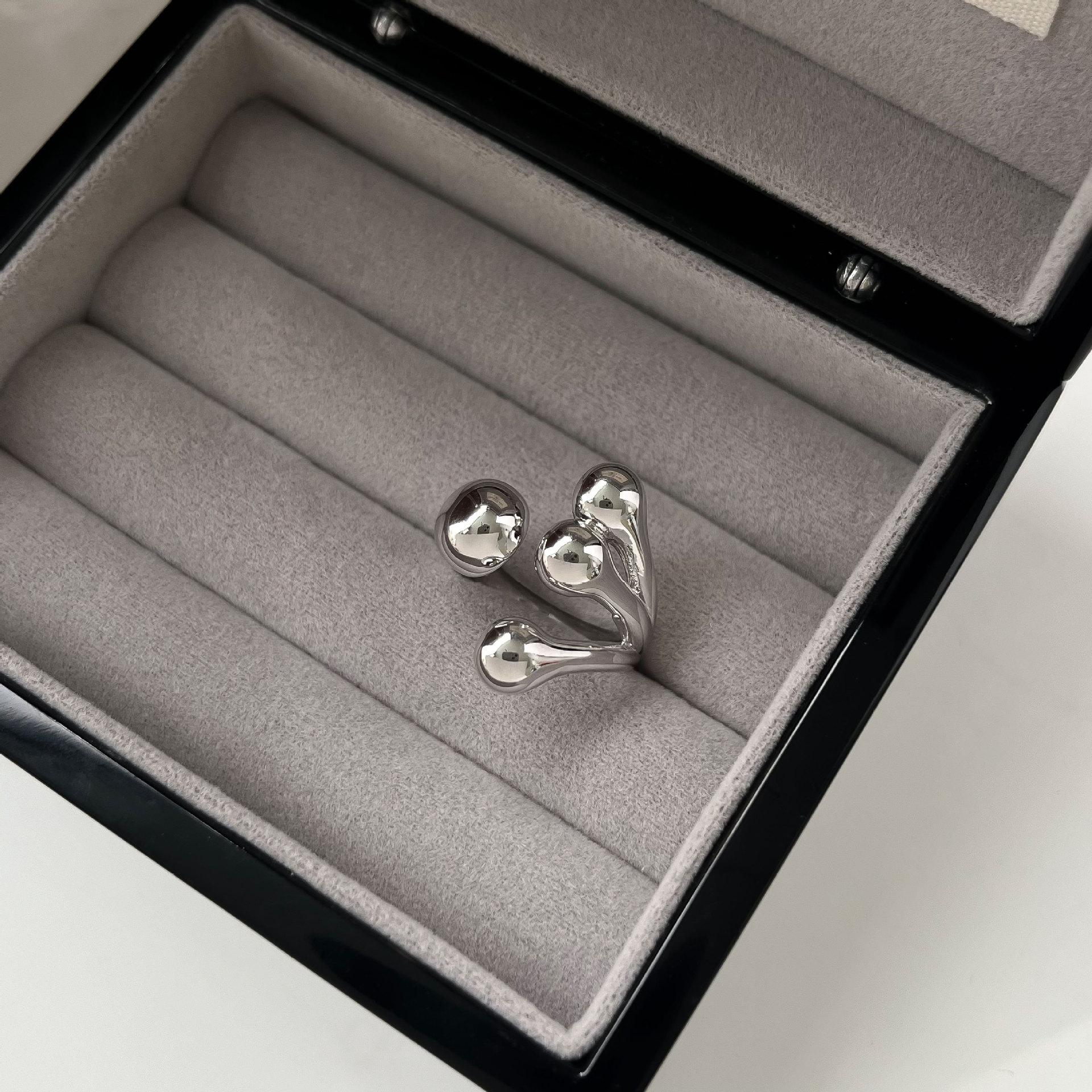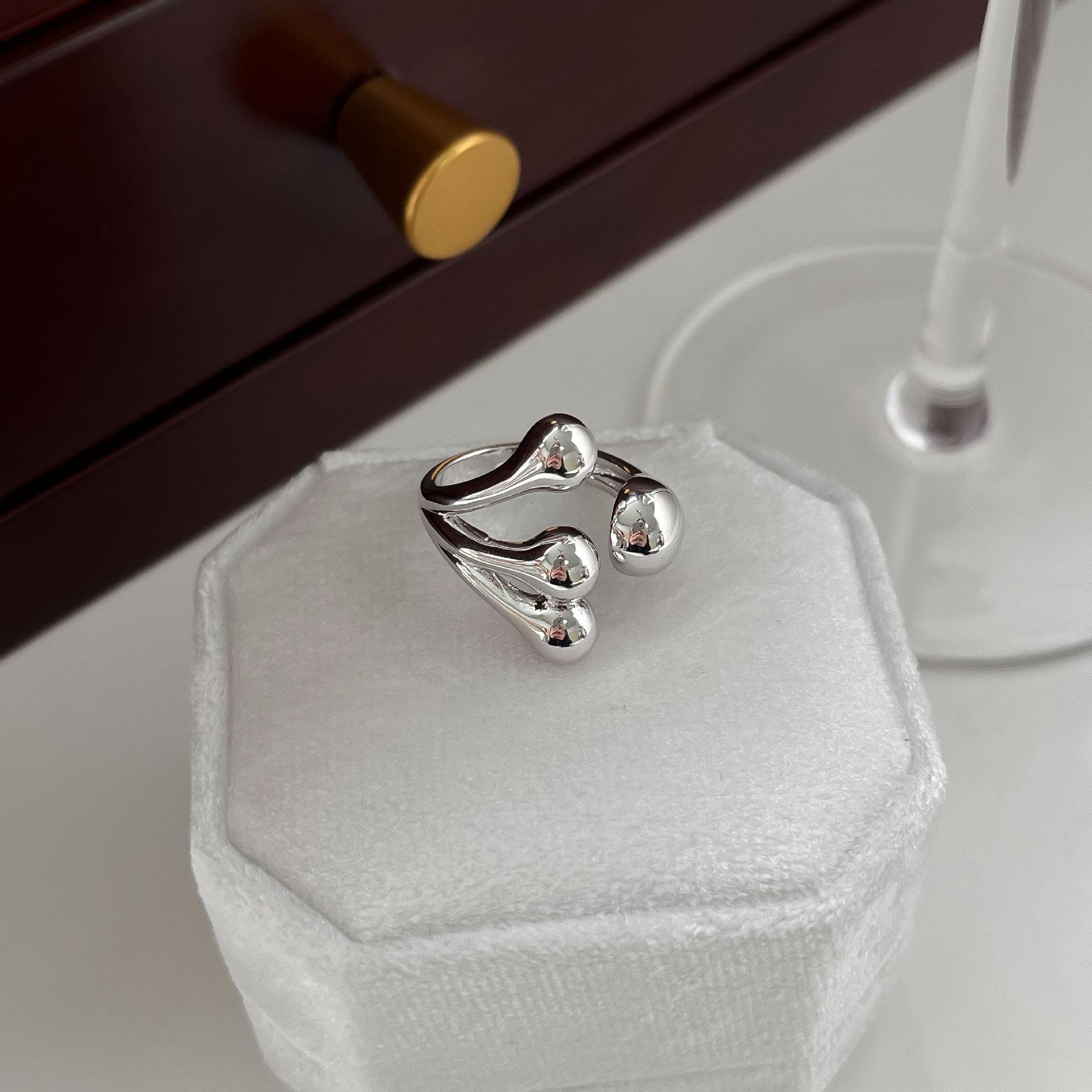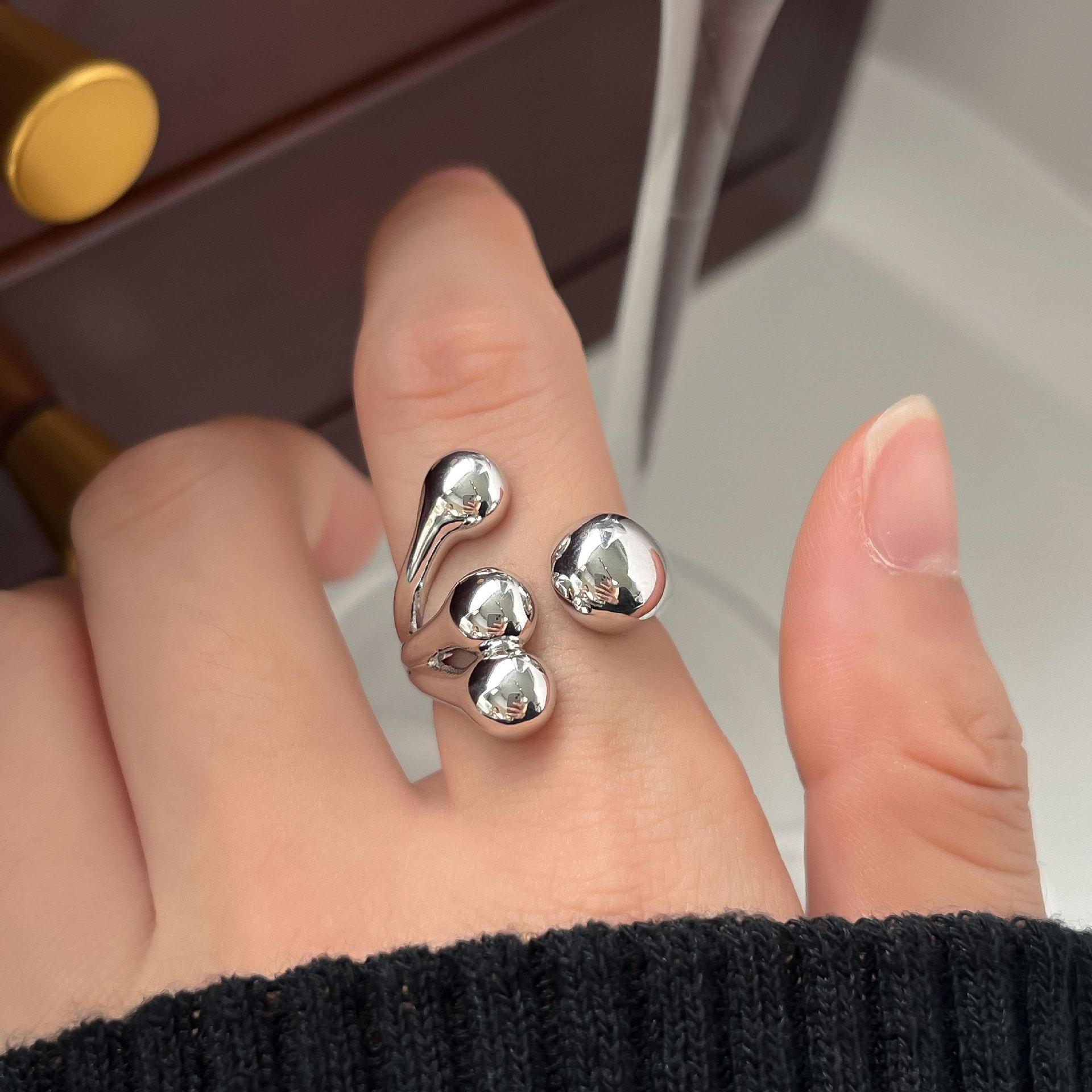 Anillo abierto de estilo frío con 4 bolitas pequeñas, de alta gama, para el dedo índice y con retención de color.