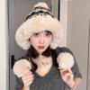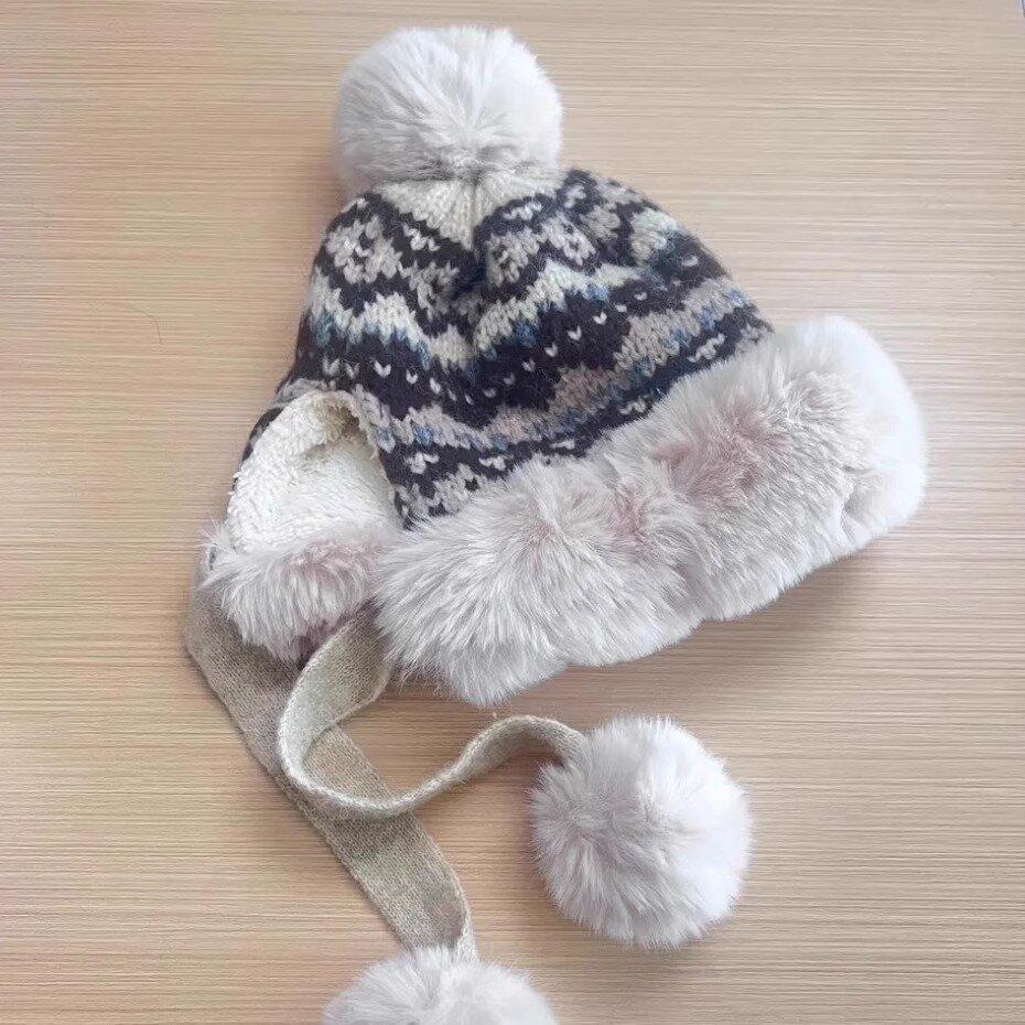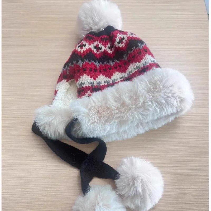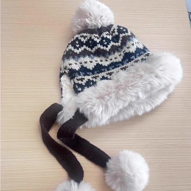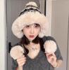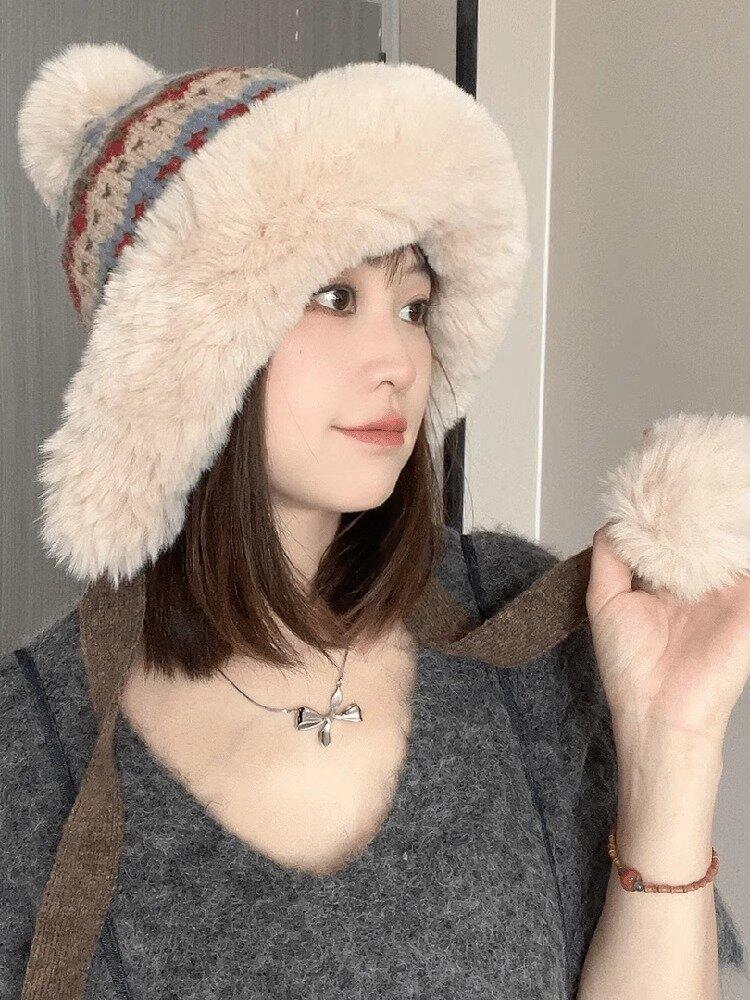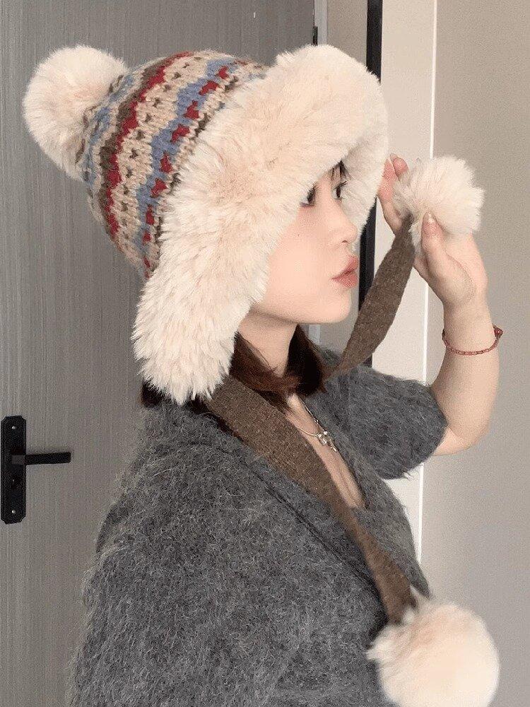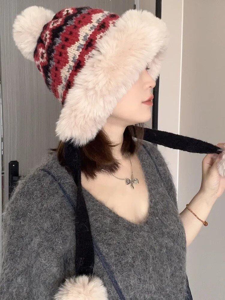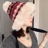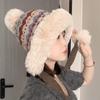 Gorro de peluche Lei Feng para mujer, cálido gorro de invierno con protección para las orejas, tejido de punto, estilo coreano, combinable, bonito, grueso y resistente al frío, de algodón del noreste.