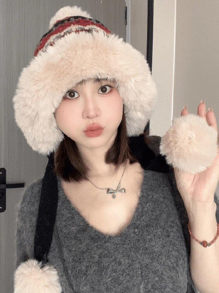 Hair ball thunder cap-red, Hair ball thunder cap-light blue, Hair ball thunder cap-black coffee color, Hair ba...