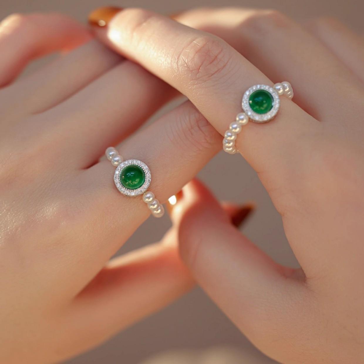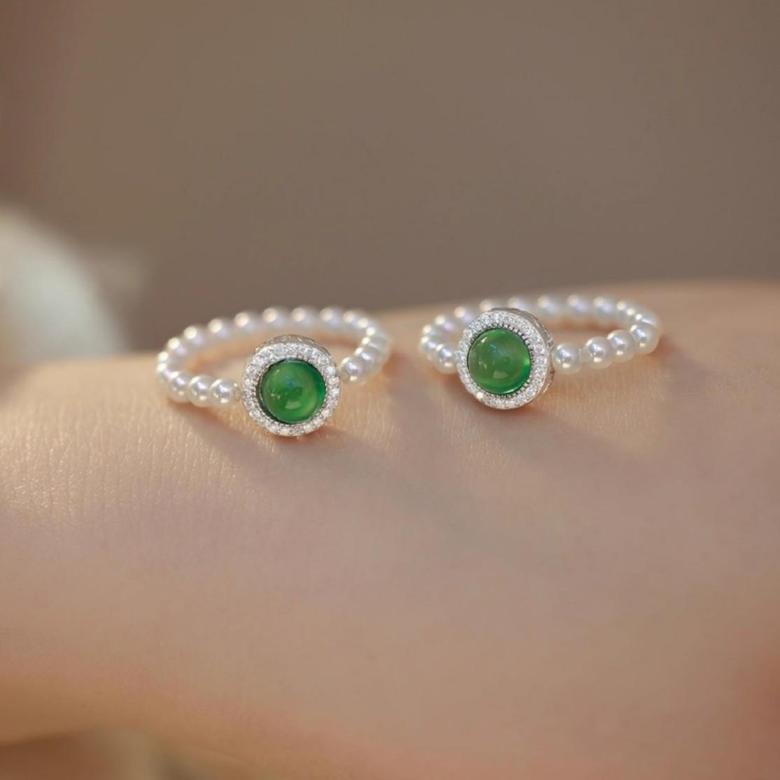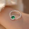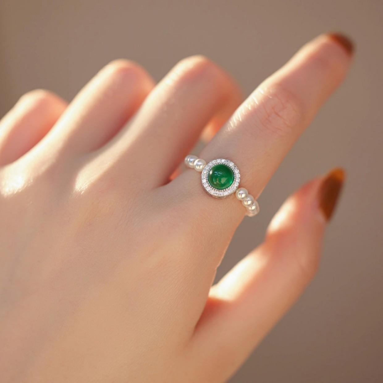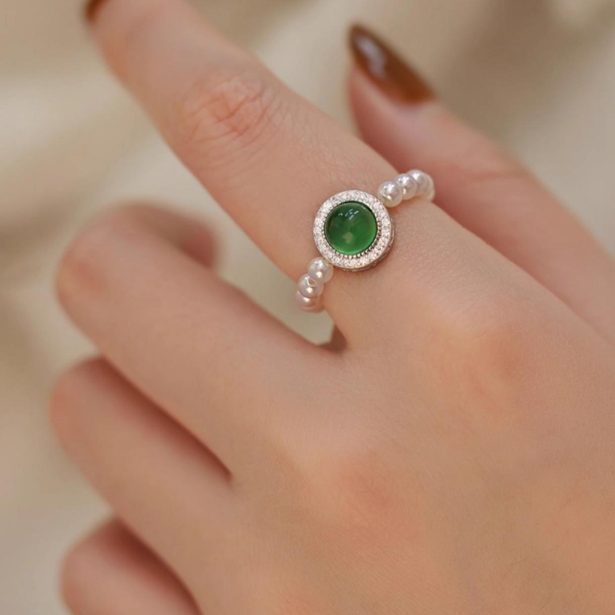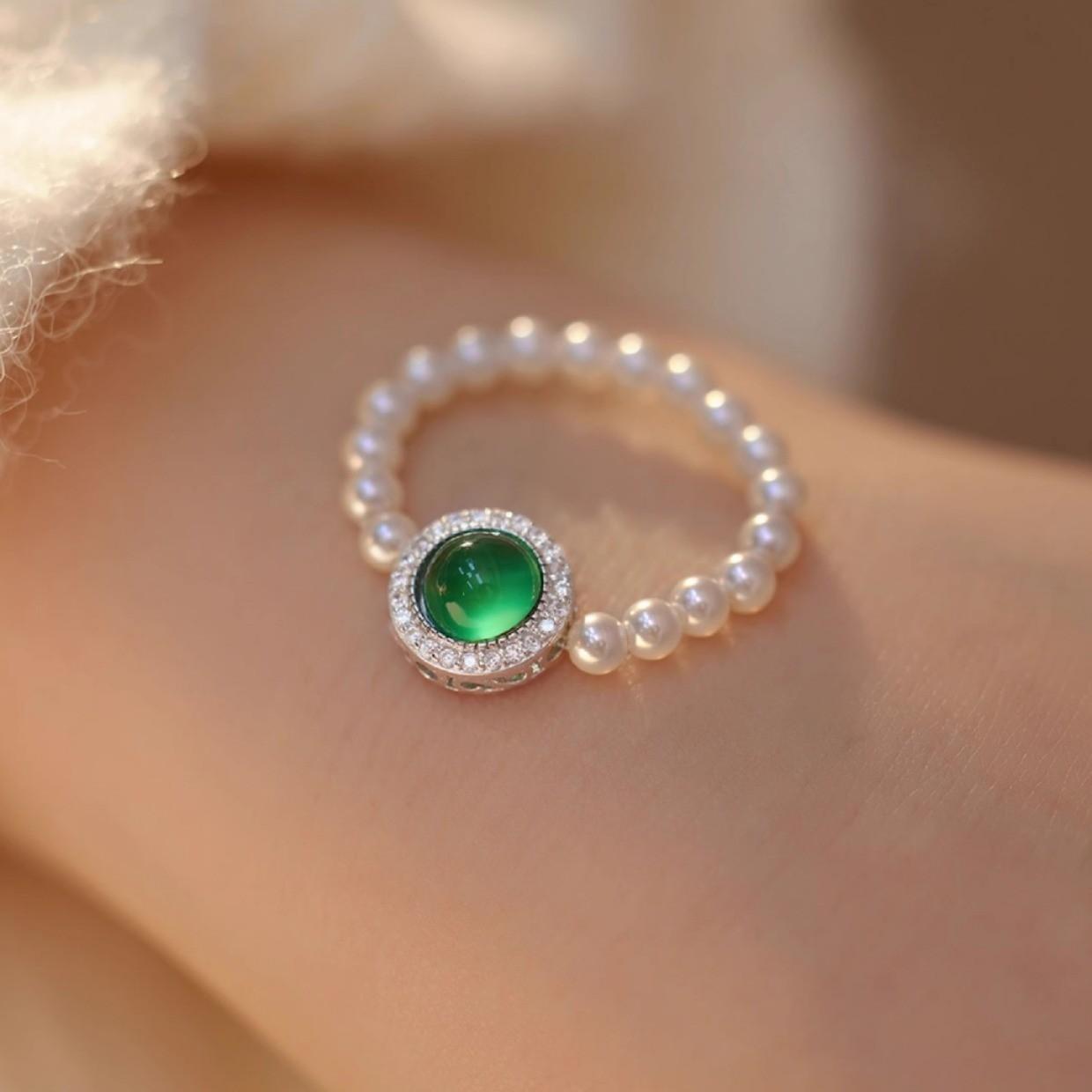 Nuevo anillo de perla esmeralda china, diseño de nicho, moda, personalidad exquisita, combinable, ligero, de lujo, anillo de dedo de alta gama.