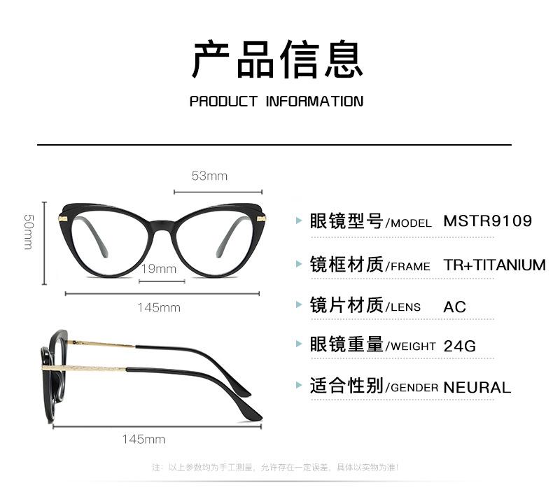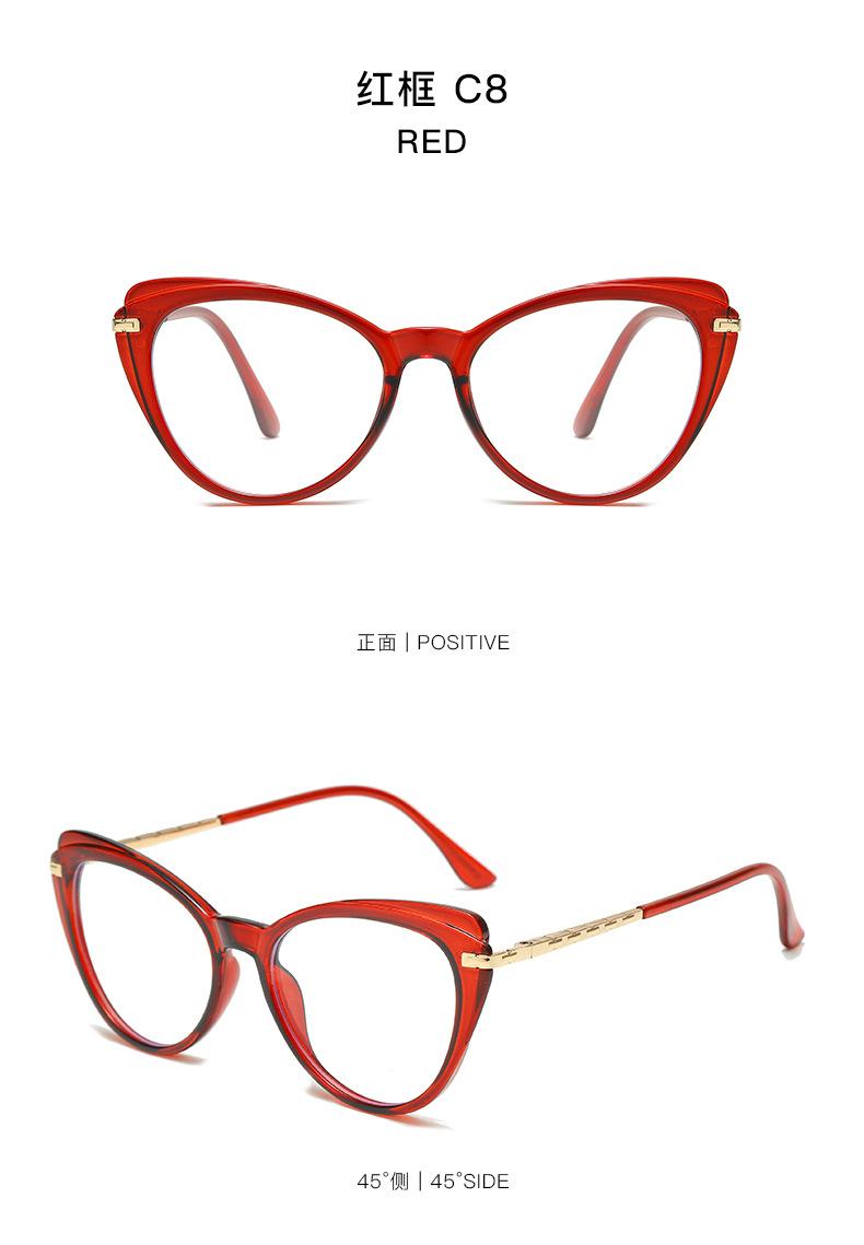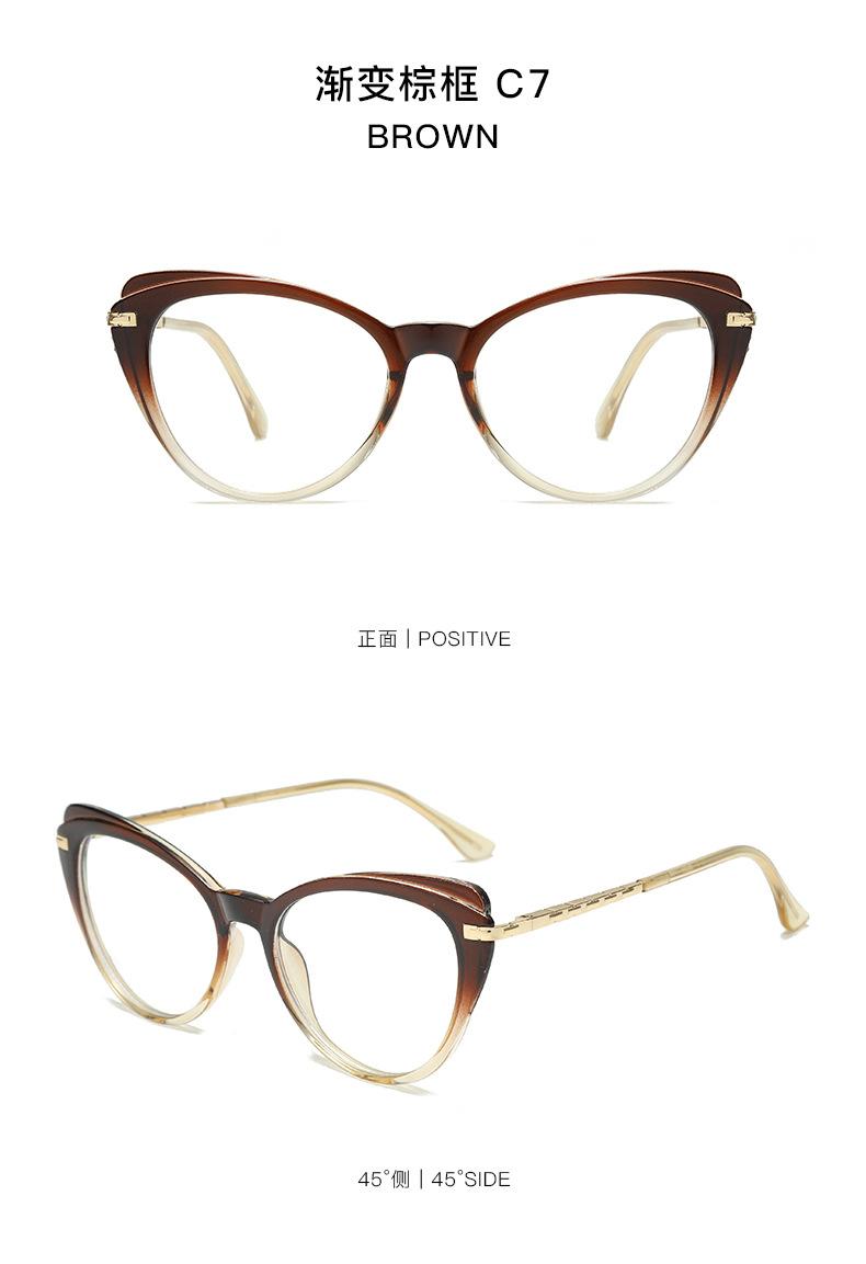 Gafas vintage de ojo de gato color caramelo con montura de metal TR, montura plana antiluz azul, gafas de montura completa con personalidad europea y americana