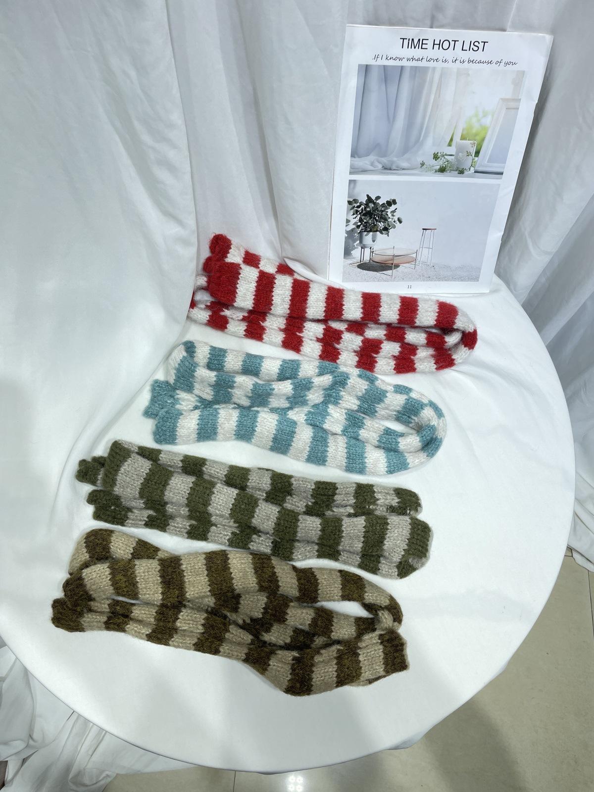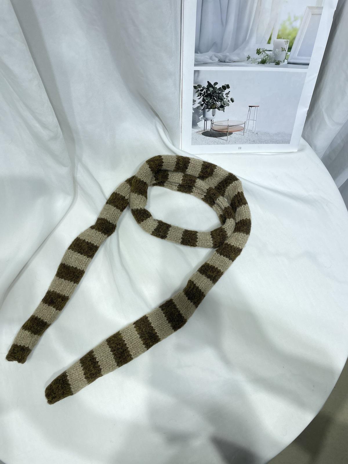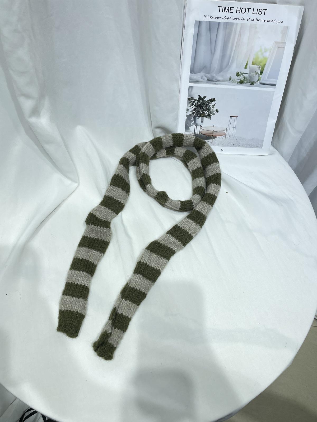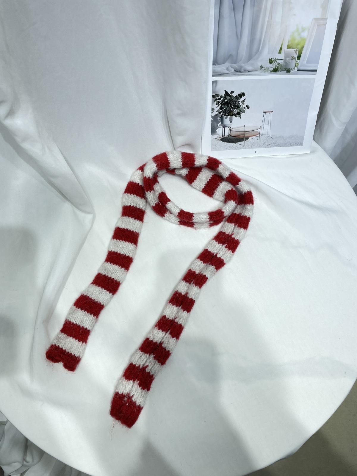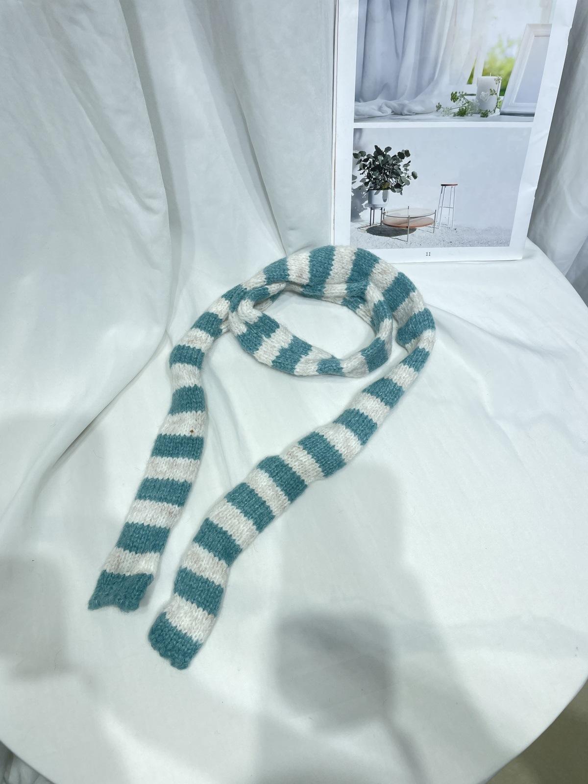 Bufanda de punto de rayas finas y estrechas de moda coreana para mujer, otoño e invierno, cálida, estilo milenio Y2K, bufanda vintage de las Spice Girls con bloques de color.