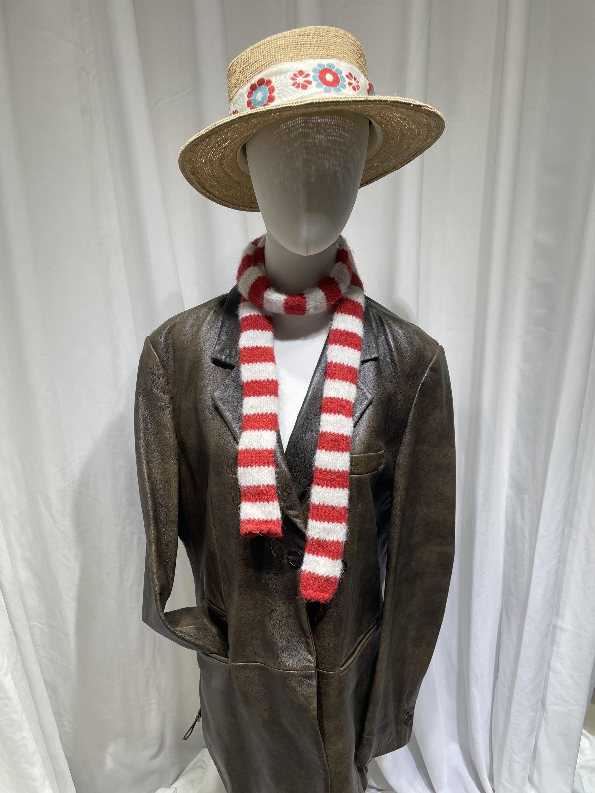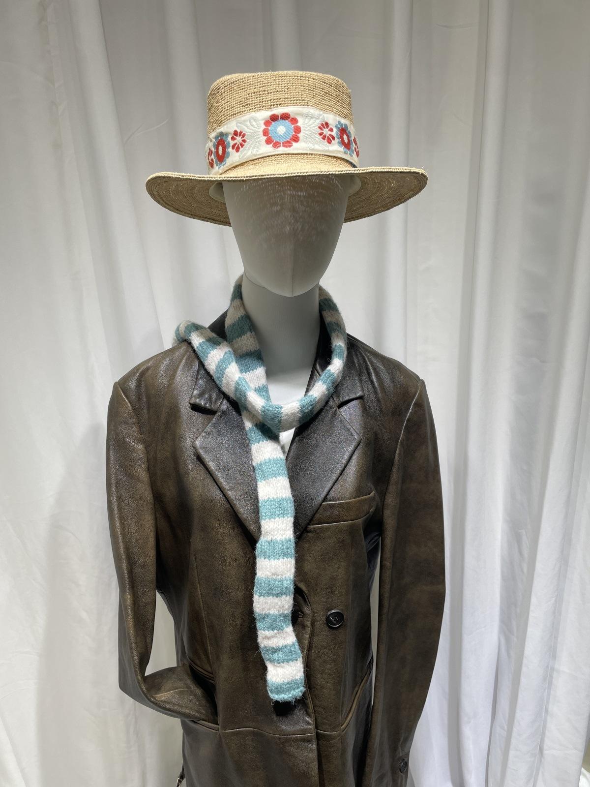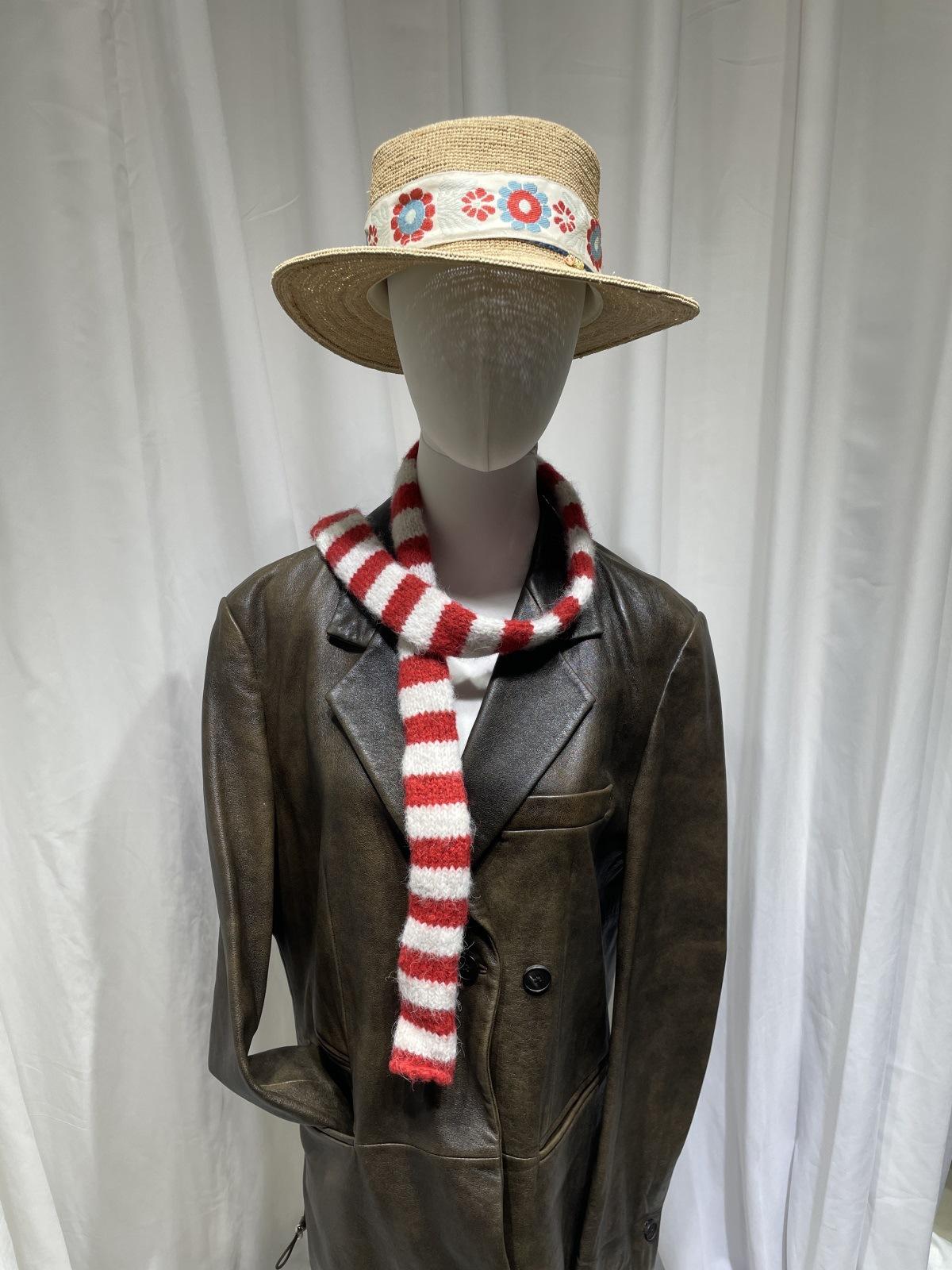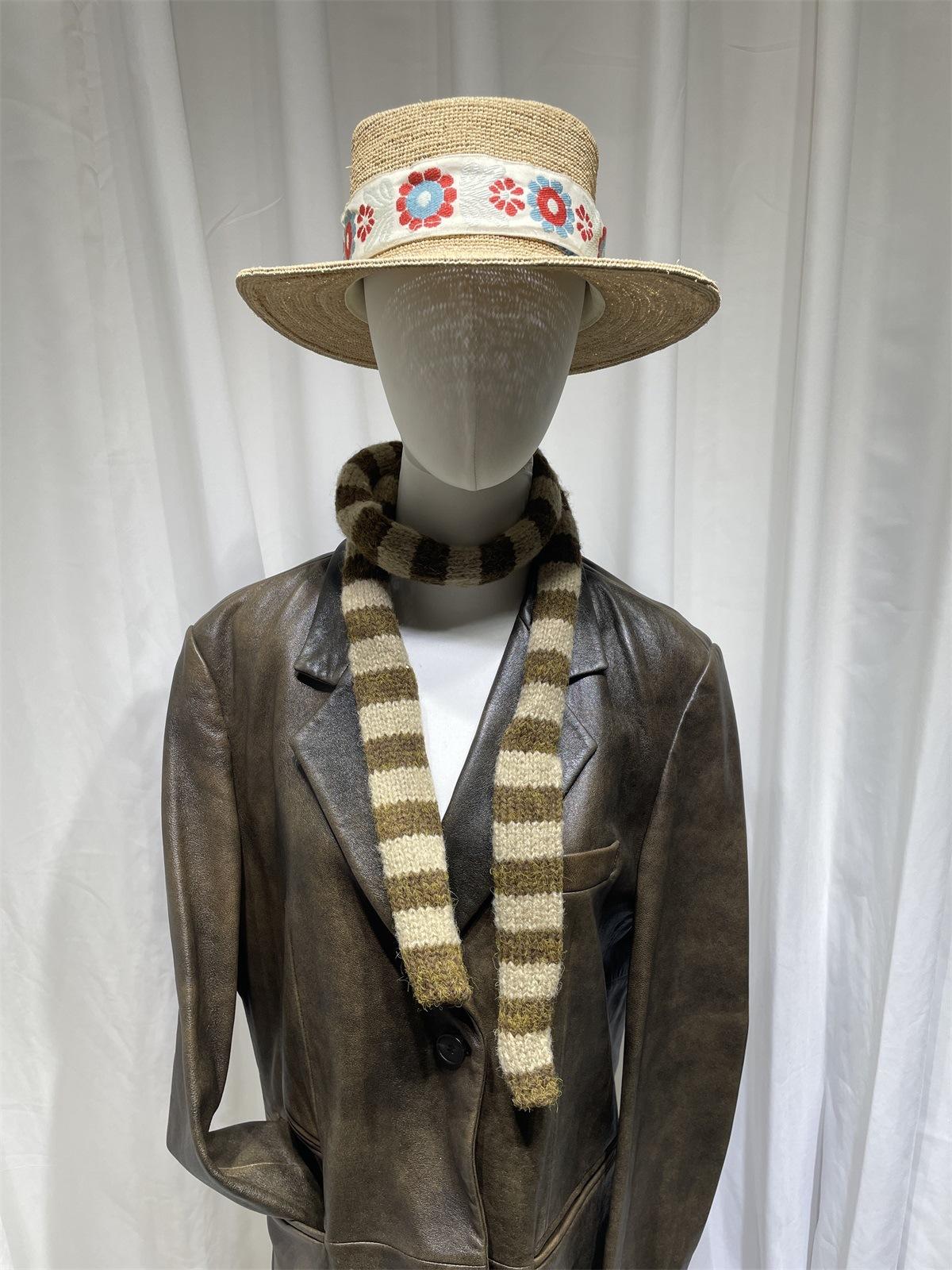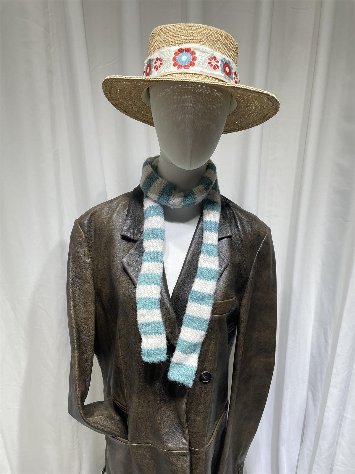 Bufanda de punto de rayas finas y estrechas de moda coreana para mujer, otoño e invierno, cálida, estilo milenio Y2K, bufanda vintage de las Spice Girls con bloques de color.