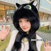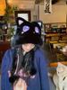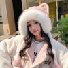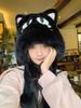 Lindo Gorro de Invierno para Mujer con Orejas de Gato de Felpa Grueso Protección para las Orejas Ciclismo Cálido a Prueba de Frío Negro Cara Nuevo