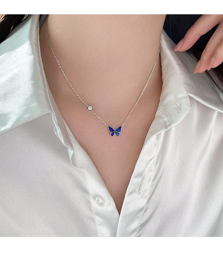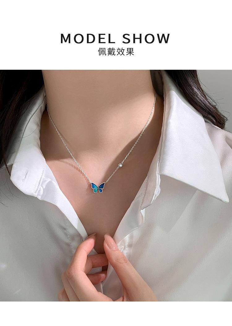Collar de Mariposa que Cambia de Color Sensible al Calor de Nuevo Estilo para Mujer, Diseño de Nicho, Colgante de Mariposa con Sentido, Elegante Lujo Ligero, Cadena de Clavícula Femenina Versátil