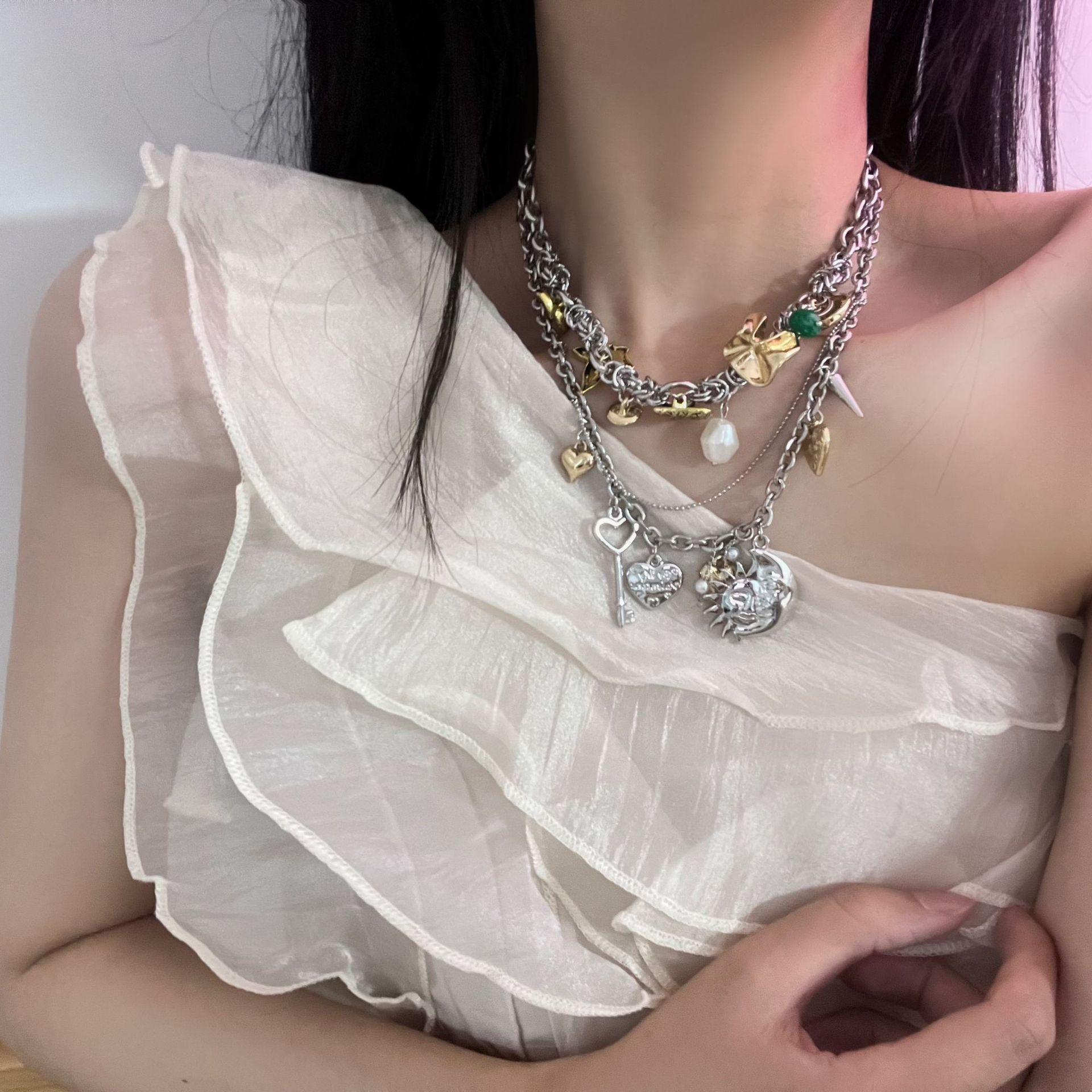 Collar de Corazón de Perla de Amor Multielemento Popular Nuevo 2023 Temperamento Retro Collar Chino Nuevo para Mujer