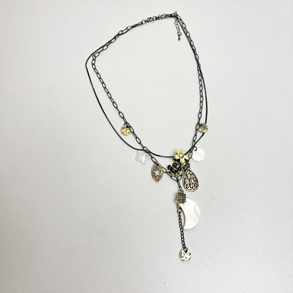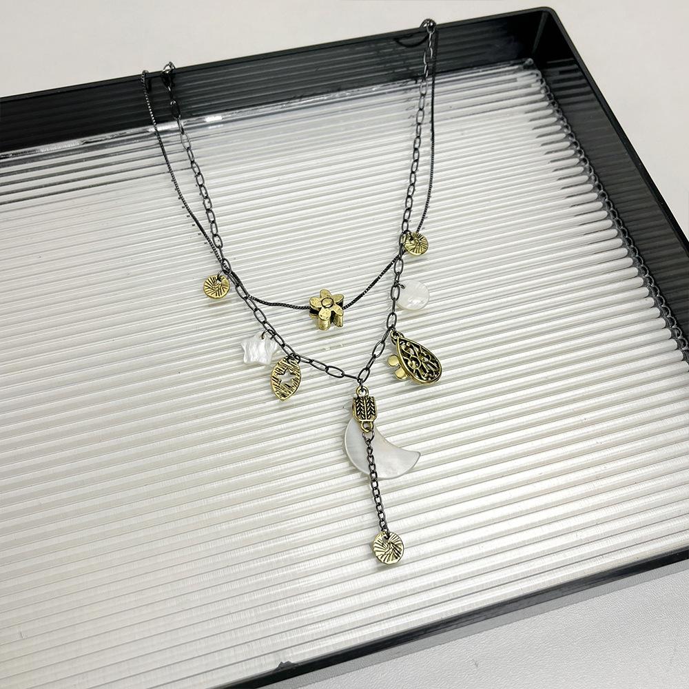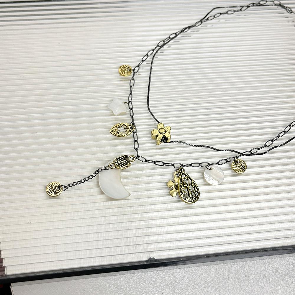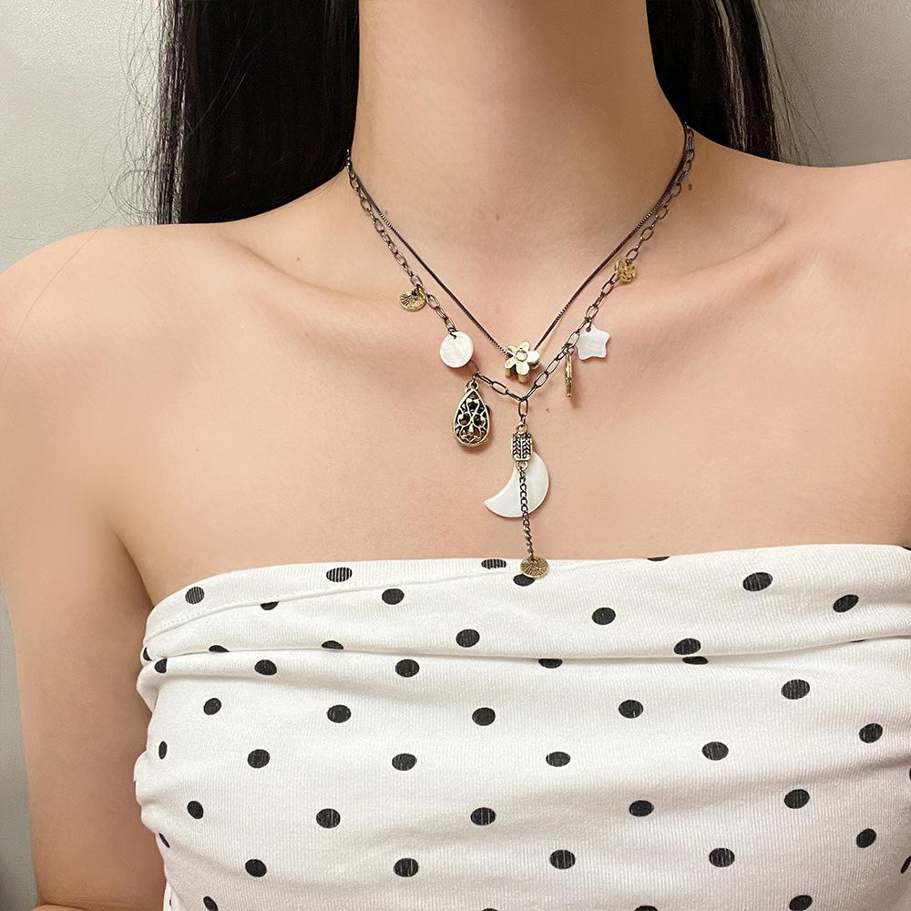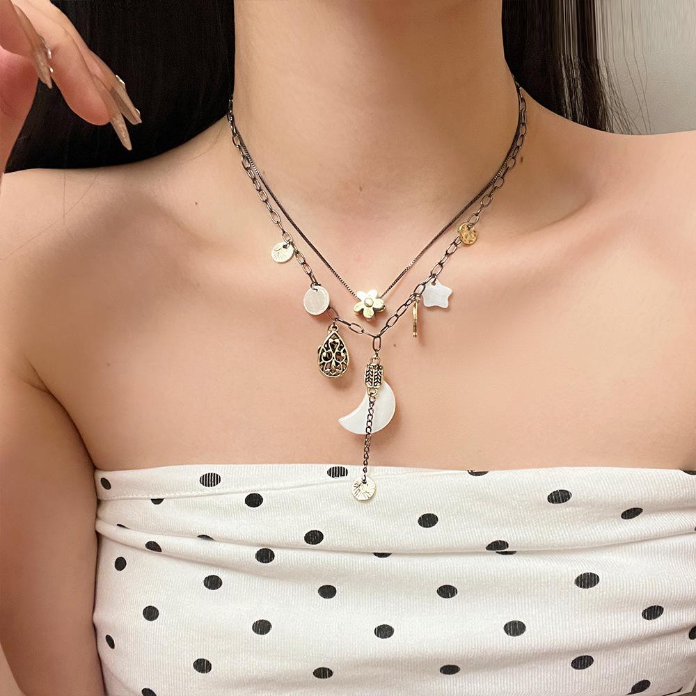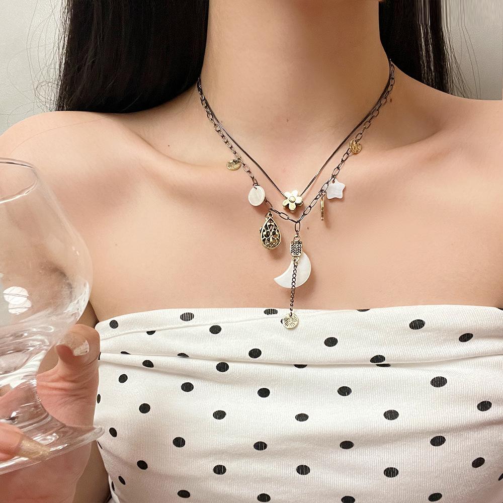 Collar de estrella y flores de alta gama para chica sexy, diseño de nicho femenino, cadena de clavícula lunar, collar retro de doble capa apilado