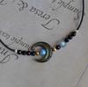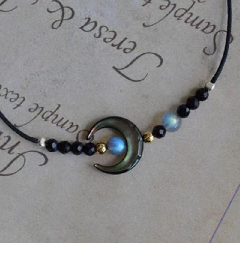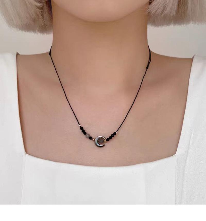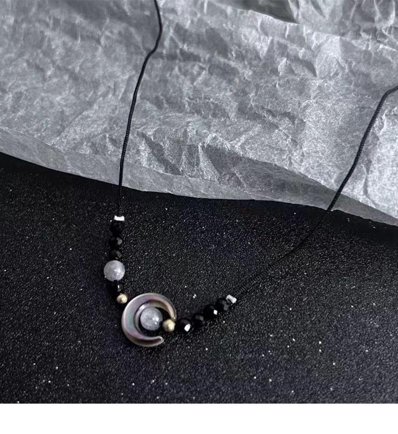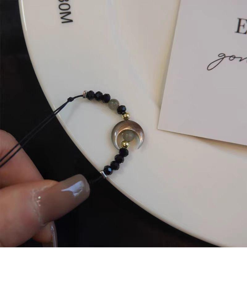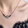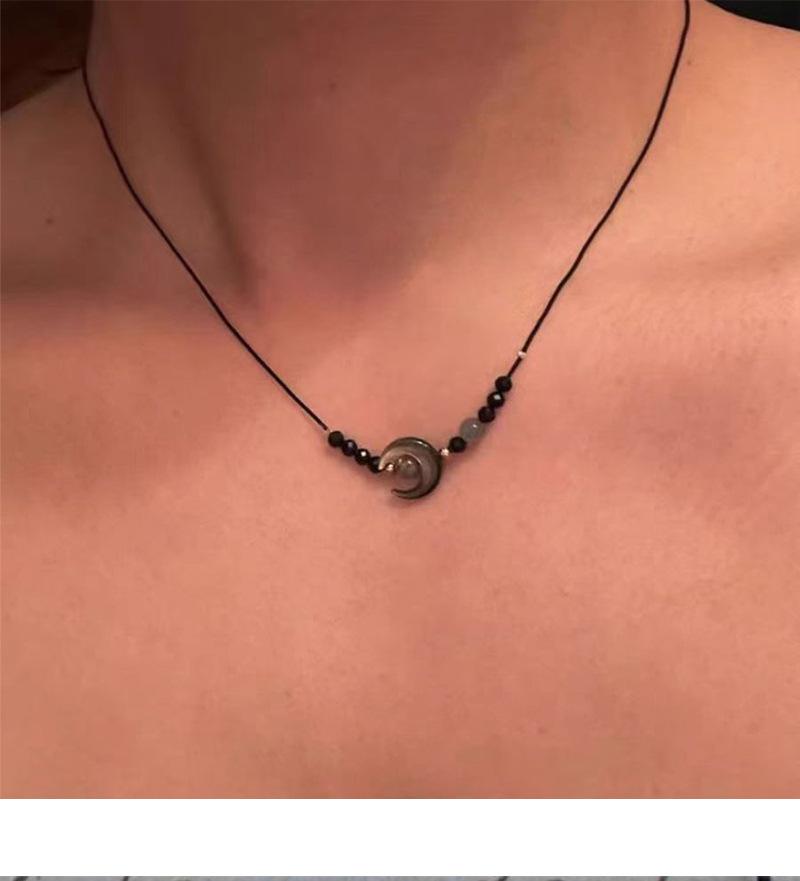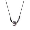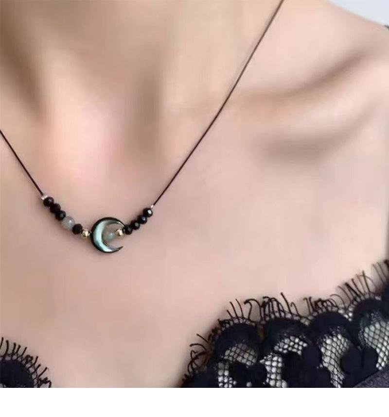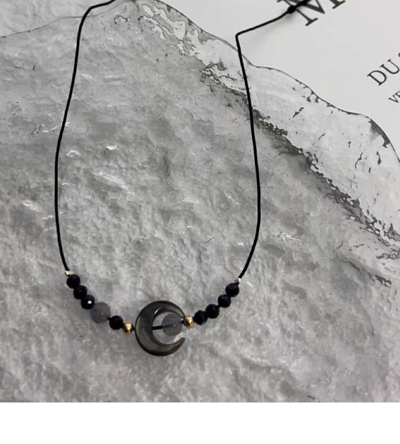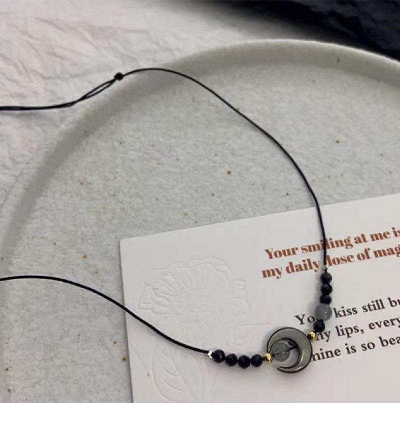 Collar con colgante de cuentas en forma de media luna con cuerda trenzada negra de estilo frío, cadena para clavícula, nuevo estilo chinoiserie, elegante piedra de ojo de gato de alta gama.