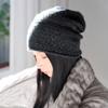 Gorro de Cachemira para Mujer 100% Cachemira Pura Invierno Nuevo Color Mezclado Gorro de Pila Cálido a la Moda Gorro Tejido de Doble Hebra
