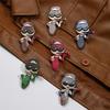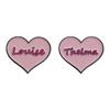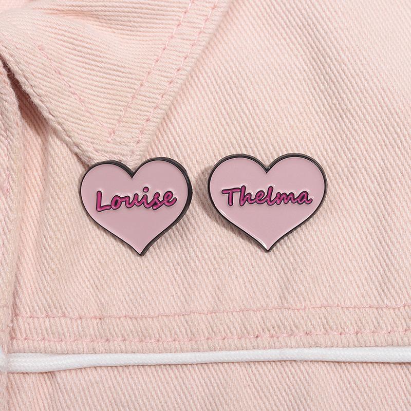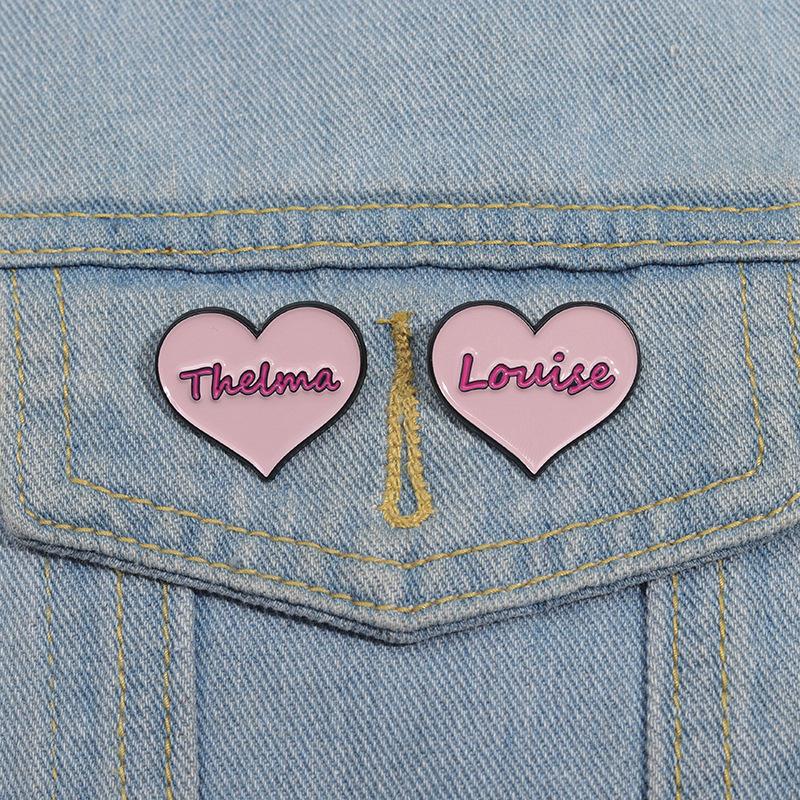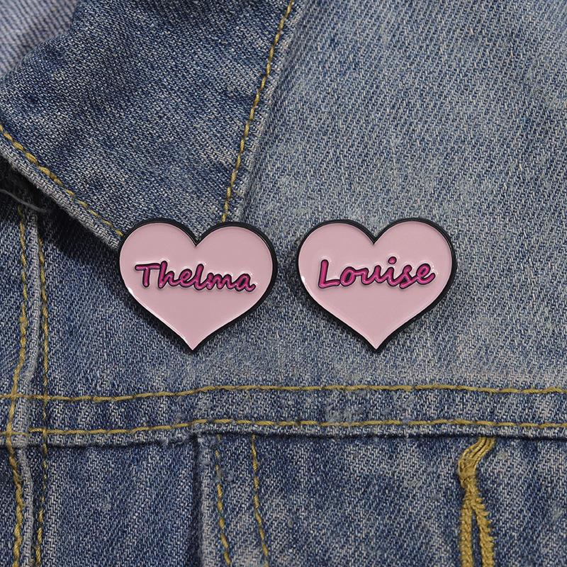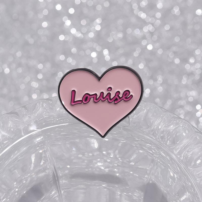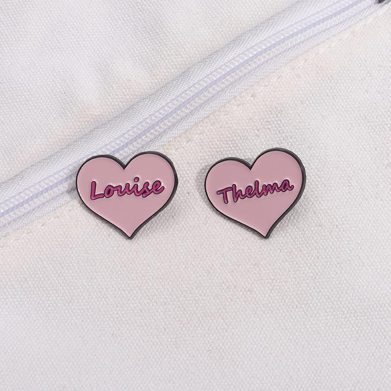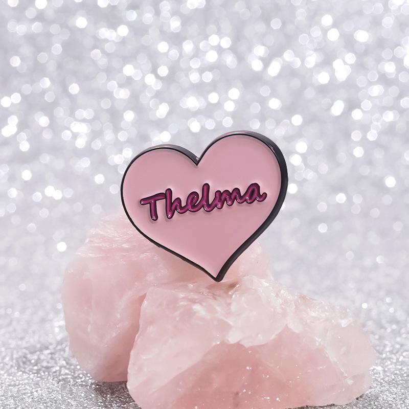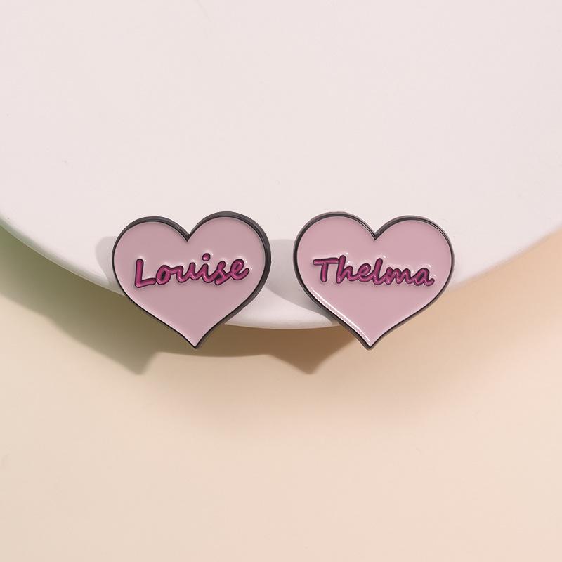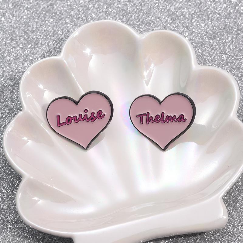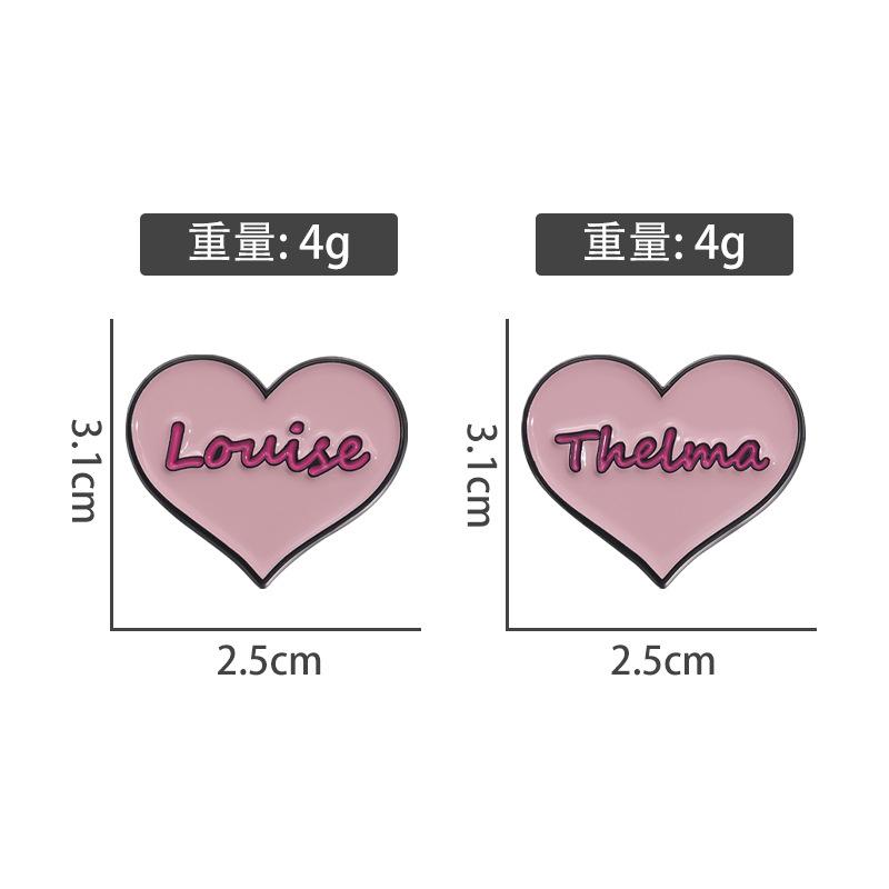 Broche de metal con forma de corazón rosa transfronterizo, insignia con letras inglesas, joyería de nicho con dibujos animados europeos y americanos.