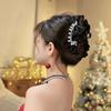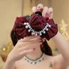 Pinza para el cabello de lazo de perlas con incrustaciones de diamantes elegantes para rostro AB, pieza para la cabeza estilo Hepburn retro, pinza para el cabello elegante de alta calidad