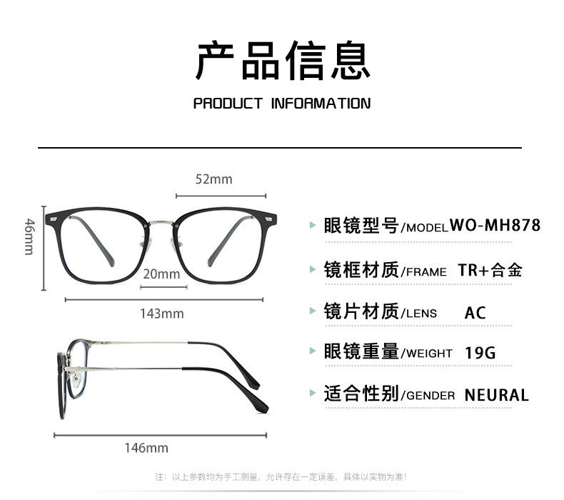 black silver frame, black gold frame, gray silver frame, Transparent gold frame, tea gold frame