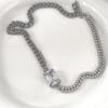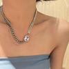 Collar de cadena de metal estilo europeo y americano con gemas brillantes y diamantes cuadrados geométricos, personalidad simple, estilo punk.