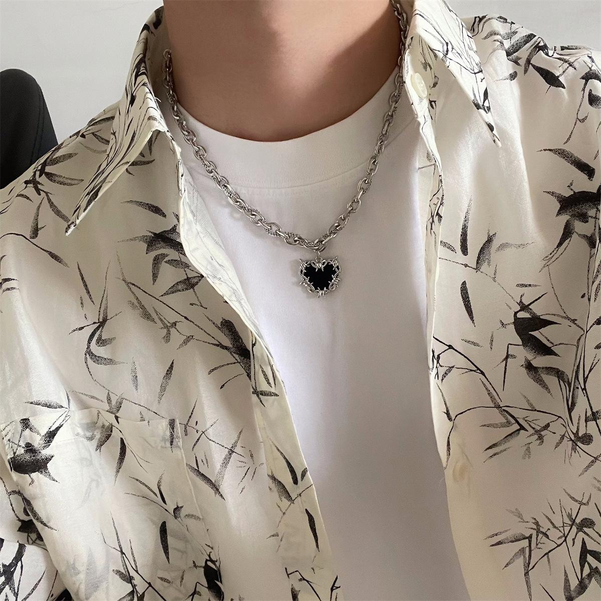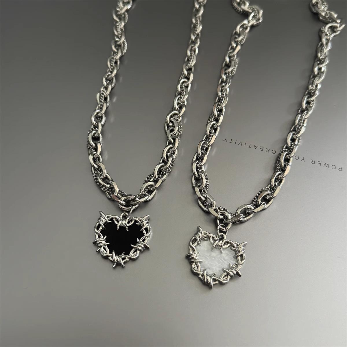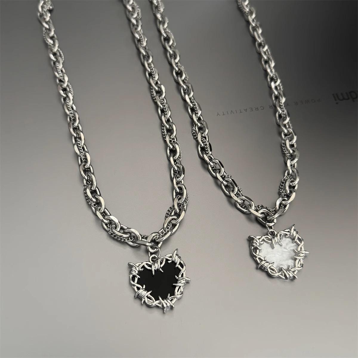 Double chain black spiked love necklace, Double chain white thorn love necklace