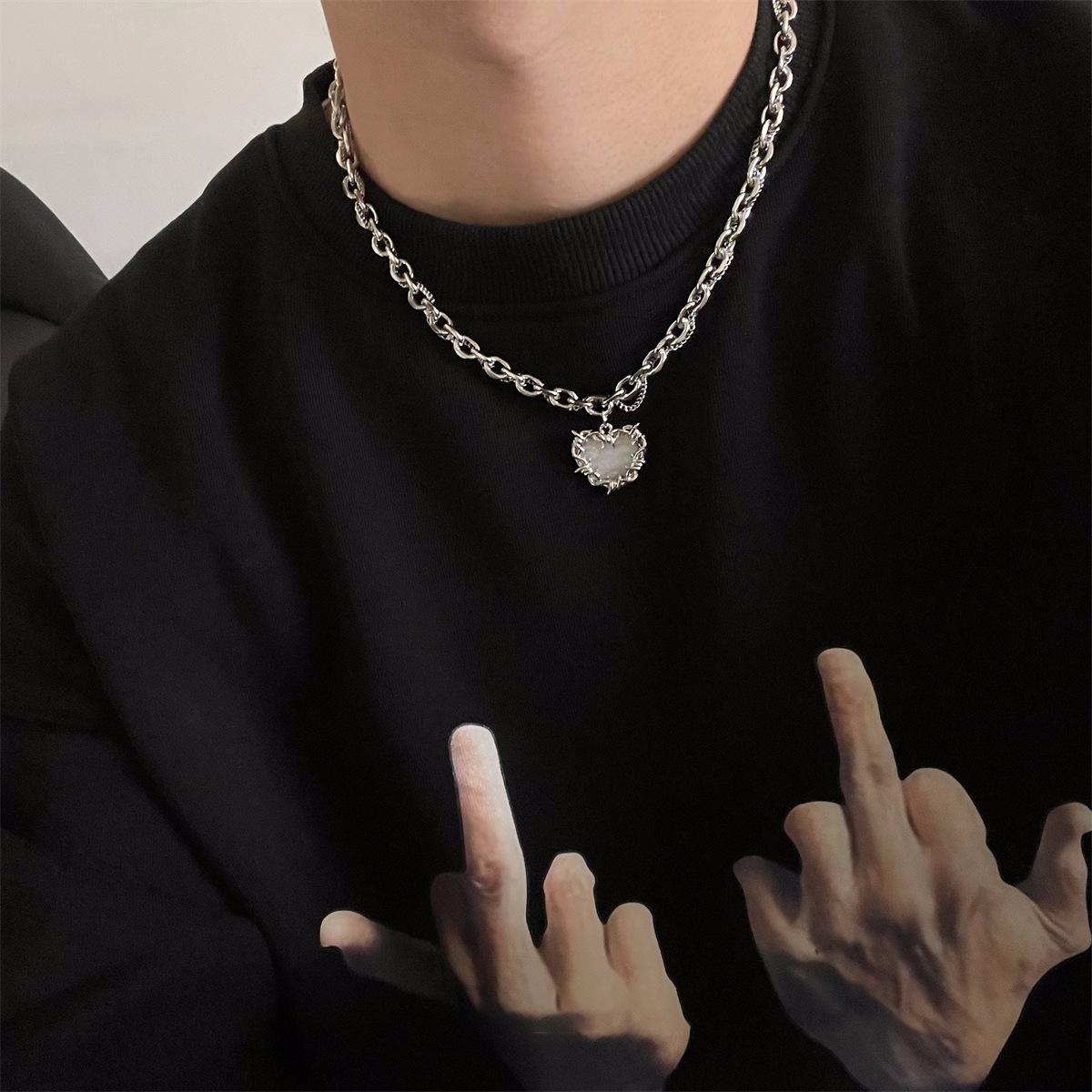 Collar de Cadena Enrollada Doble Capa de Amor para Hombre Estilo Hip-hop Acero de Titanio Simple Diseño Nicho Sentido Joyería de Cadena de Lana para Mujer