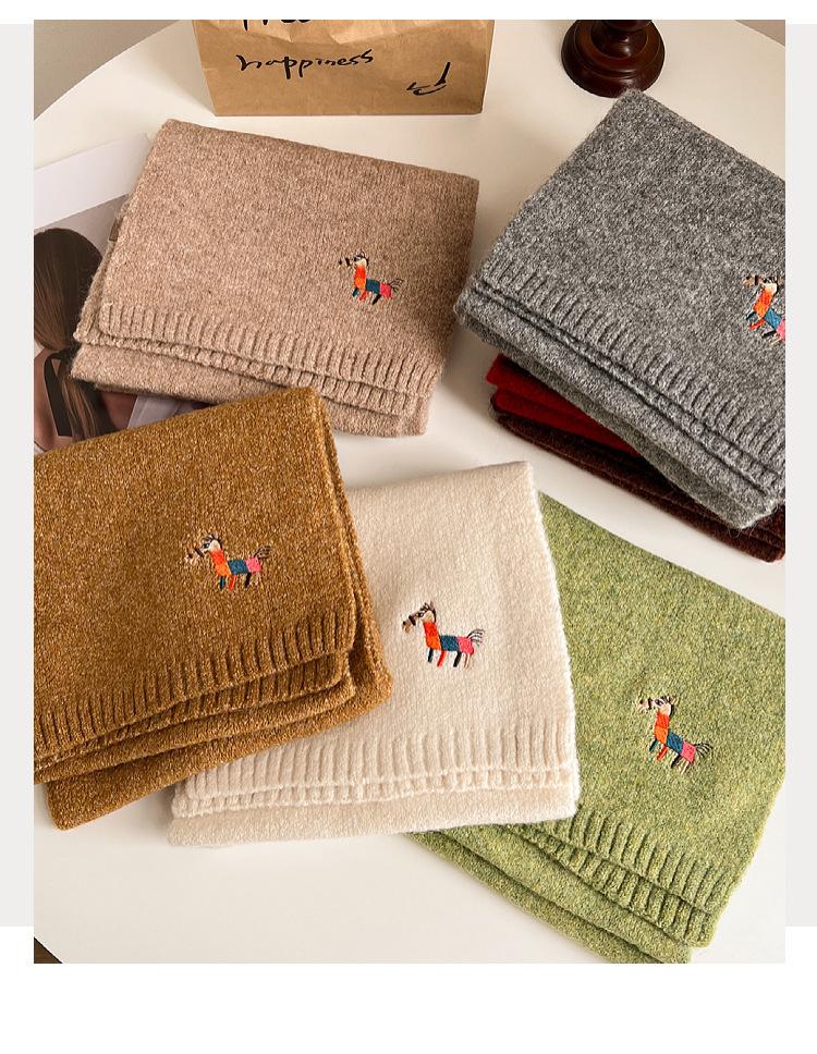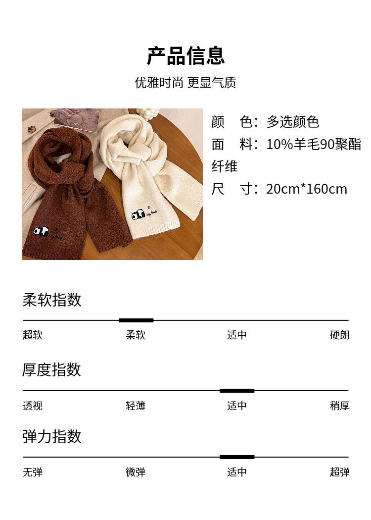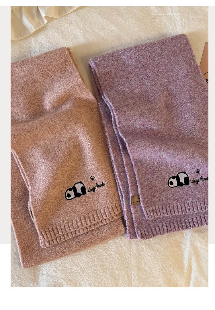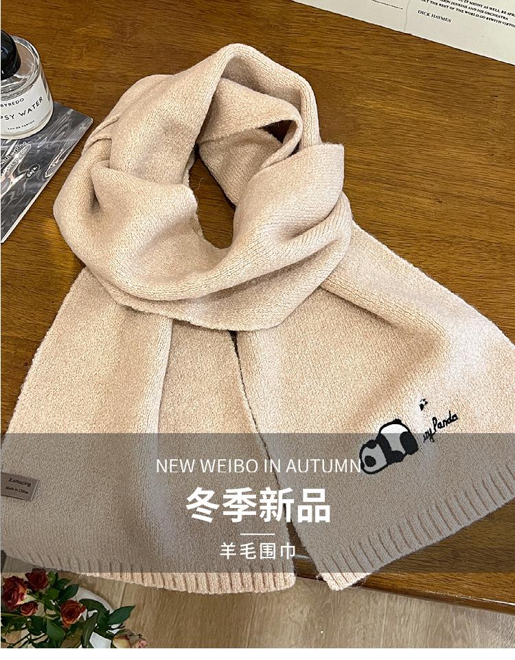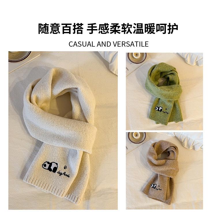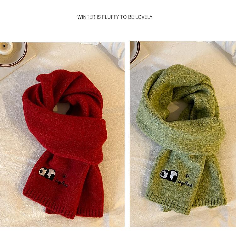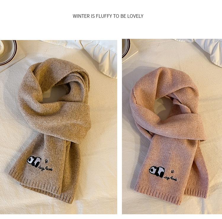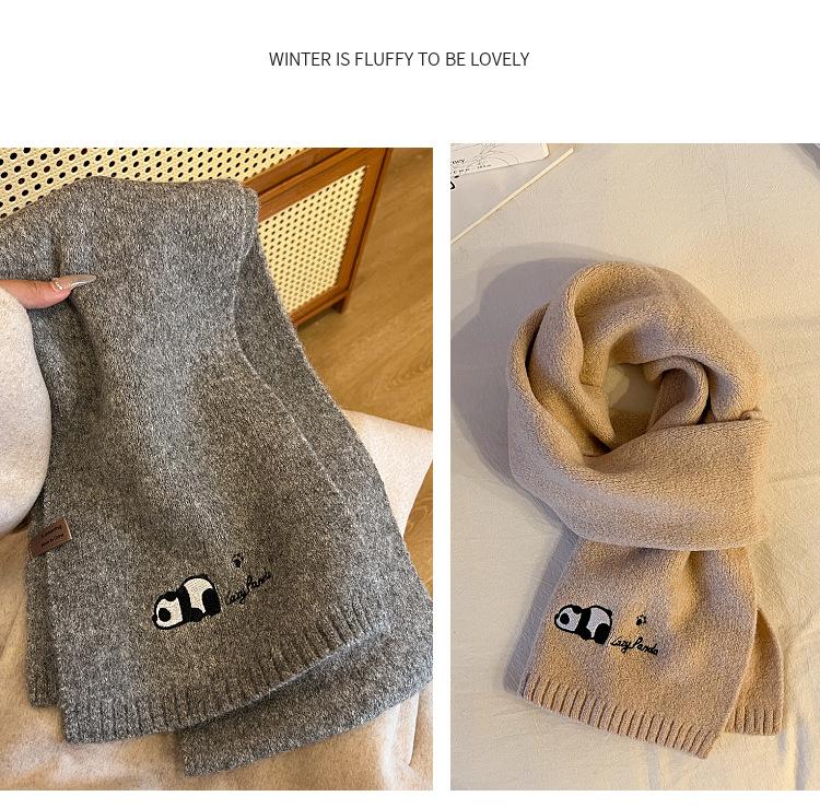 Otoño e Invierno Nuevo con Patrón de Panda de Lana Bufanda de Lana para Estudiante Coreana Tejida Bordada para Exterior Cálida Cortavientos para Mujer