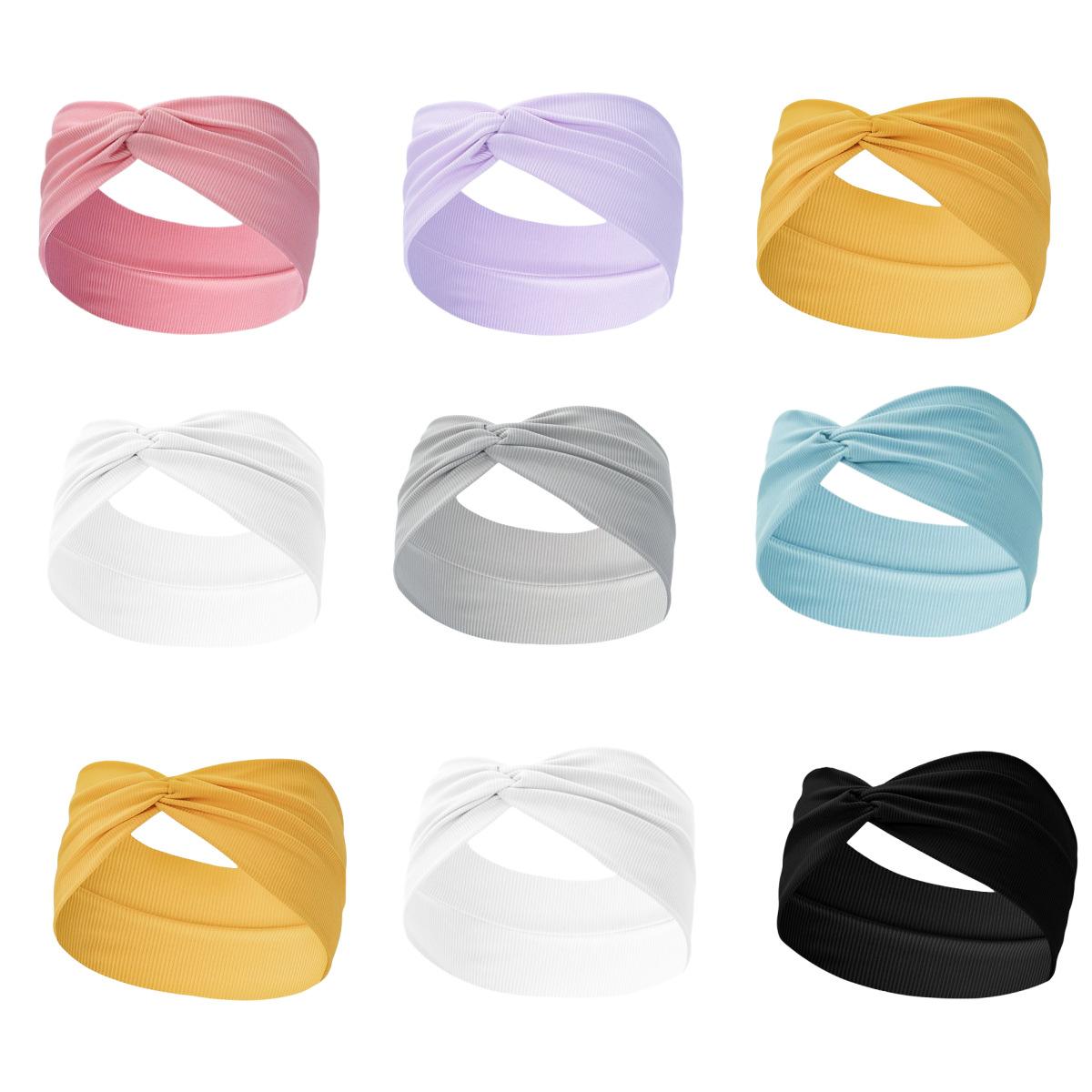Banda para el cabello de yoga de seda helada con ala ancha, popular entre Europa y América, de Amazon, de color sólido, muy elástica, transpirable y absorbente del sudor.