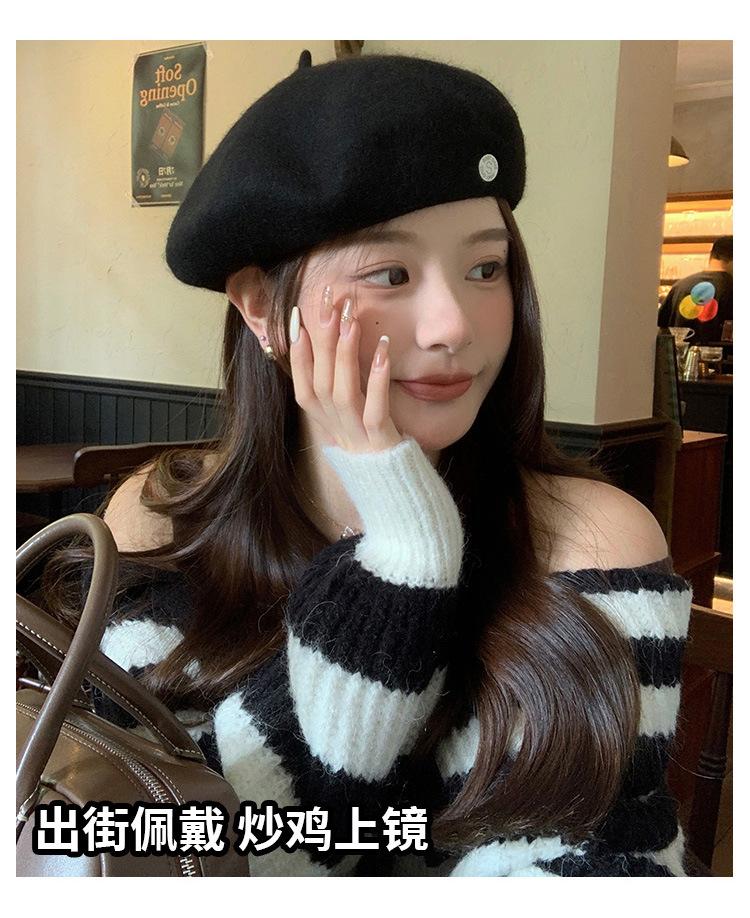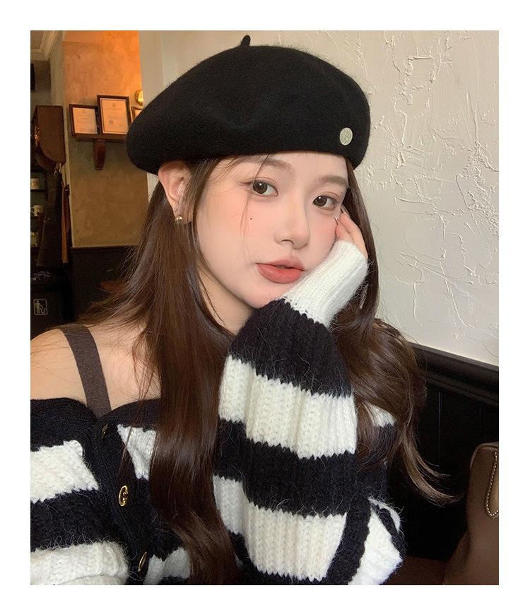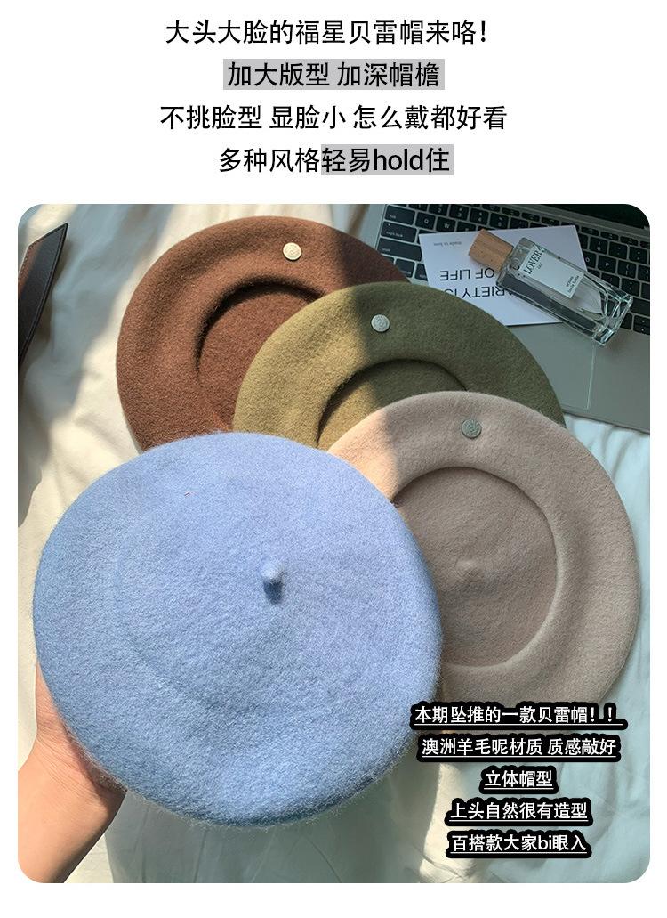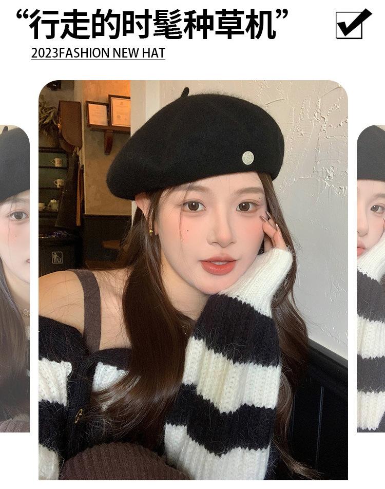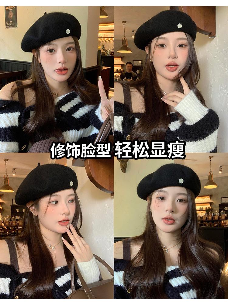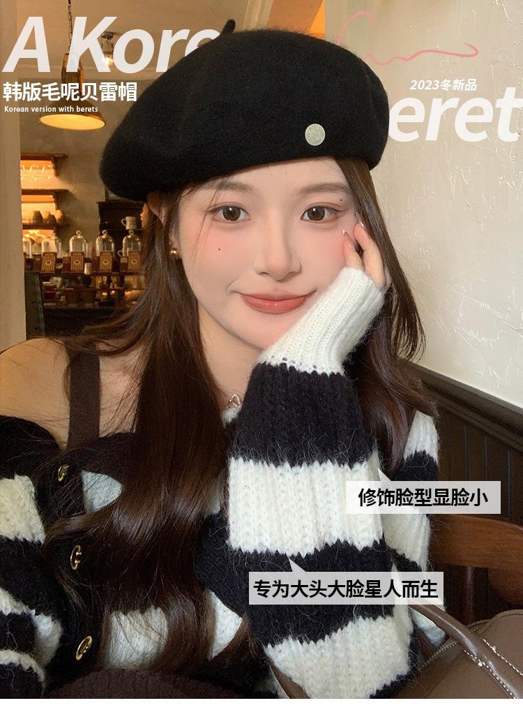 Boina de lana de celebridades de Internet para mujer, otoño e invierno 2023, nueva, con gran circunferencia de cabeza, cara pequeña, elegante, sombrero pintado a juego.