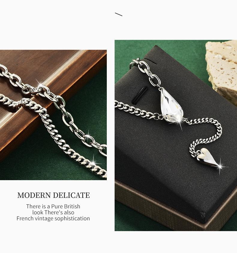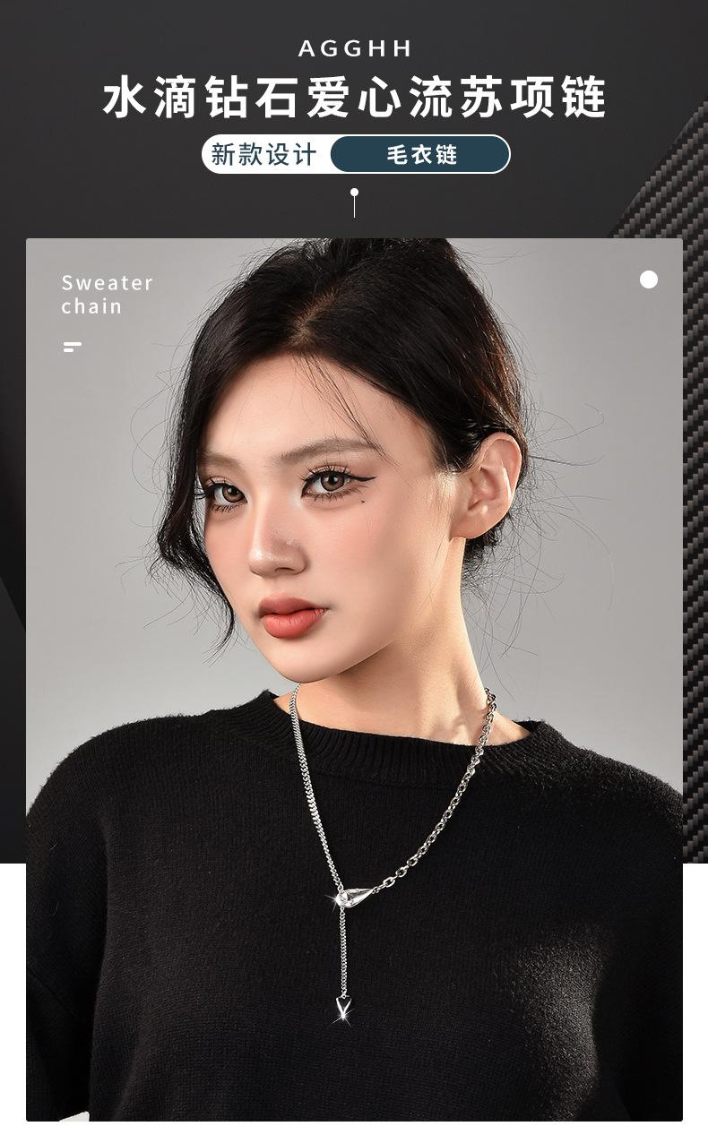 Collar de cristal con gota de agua para mujer, moda, lujo, borla, cadena para clavícula, cadena de punto, personalidad, cadena para suéter, accesorios al por mayor, genial