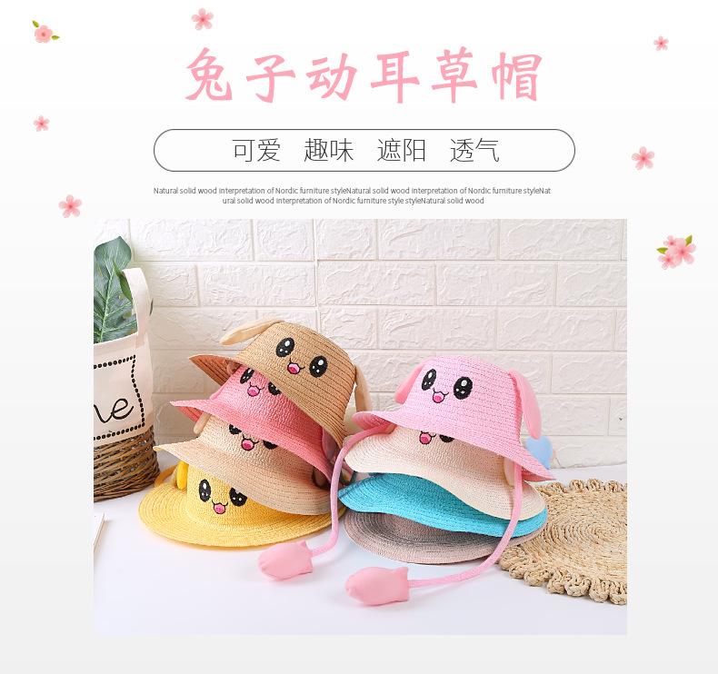 Nuevo sombrero de sol para niños, sombrero de verano con orejas móviles, airbag, sombrero de conejo, protector solar, sombrero de paja, atracciones turísticas, venta al por mayor