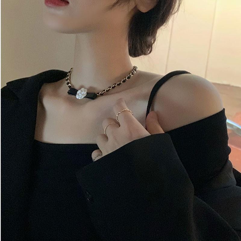 Nuevo Collar Retro Camelia para Mujer Estilo Dulce Frío Texturizado Sencillo Cadena Clavícula Moda Accesorios Combinables