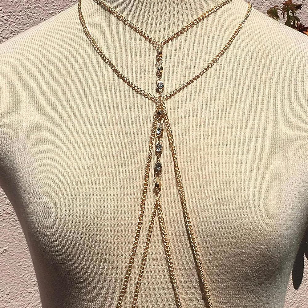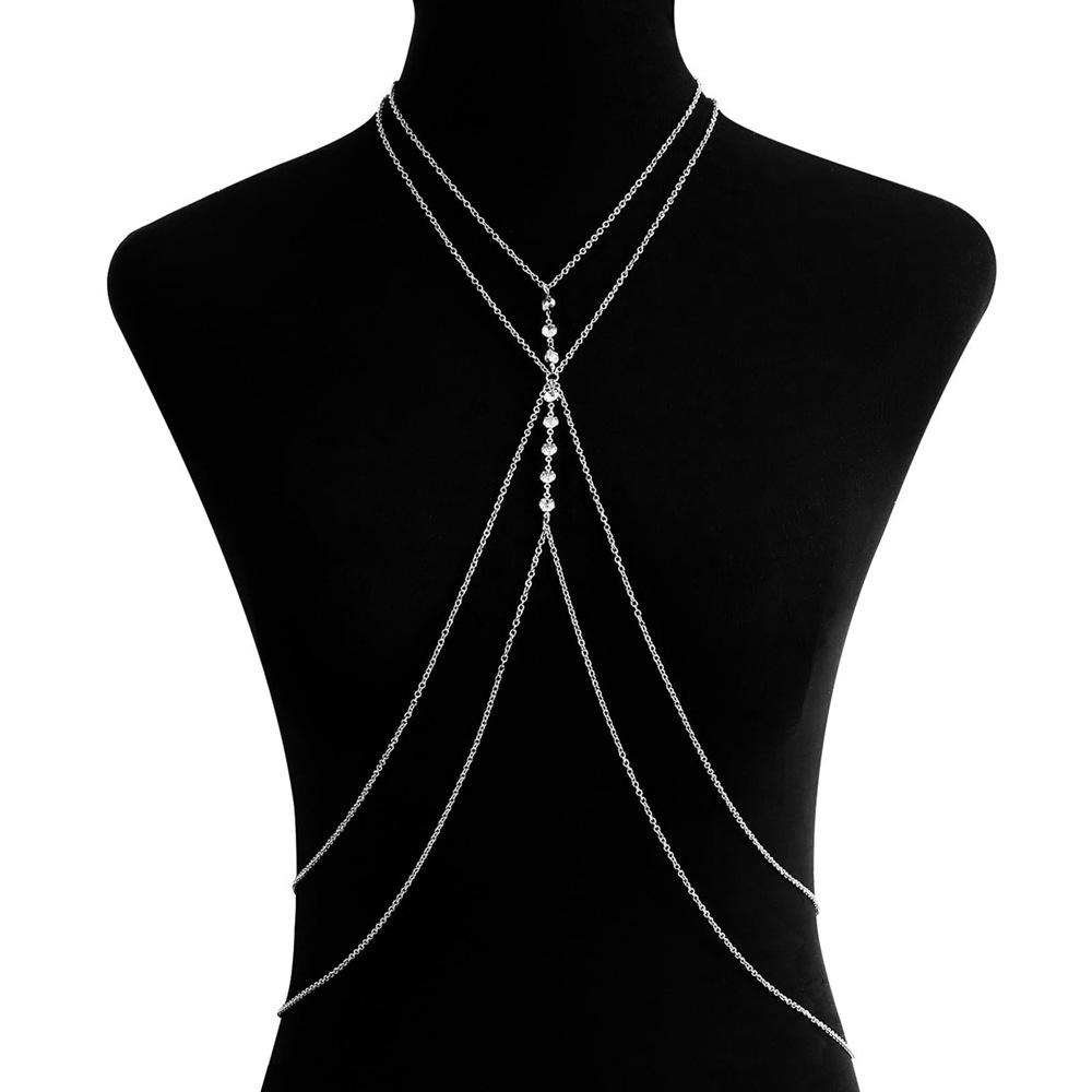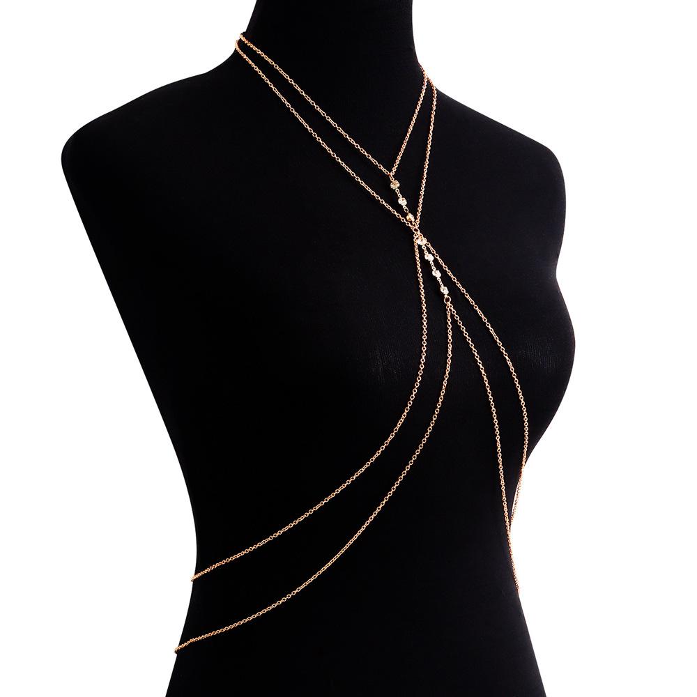 Europa y Estados Unidos estilo chica hot transfronterizo doble cadena metálica diamante bikini cadena corporal para mujer sexy calle cristal cadena para el pecho