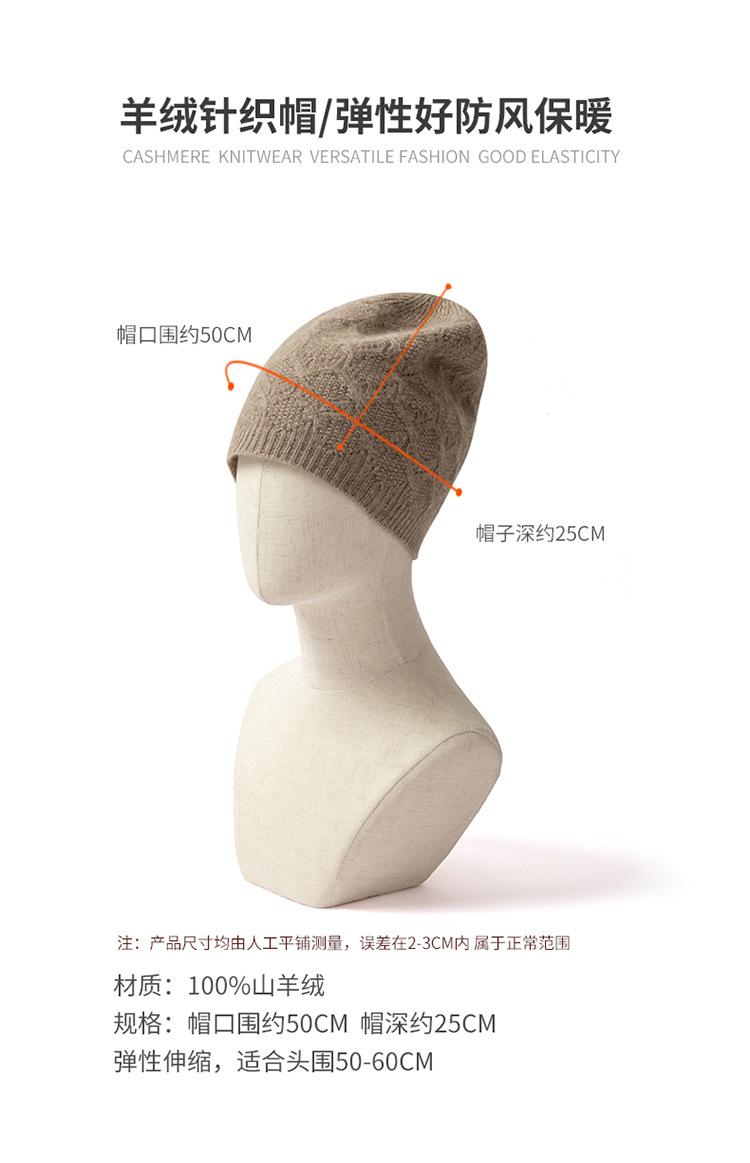 Gorro de Cachemira Mujer 100% Cachemira Pura Otoño e Invierno Nuevo Jacquard Calado Moda Personalidad Gorro Tejido Cálido